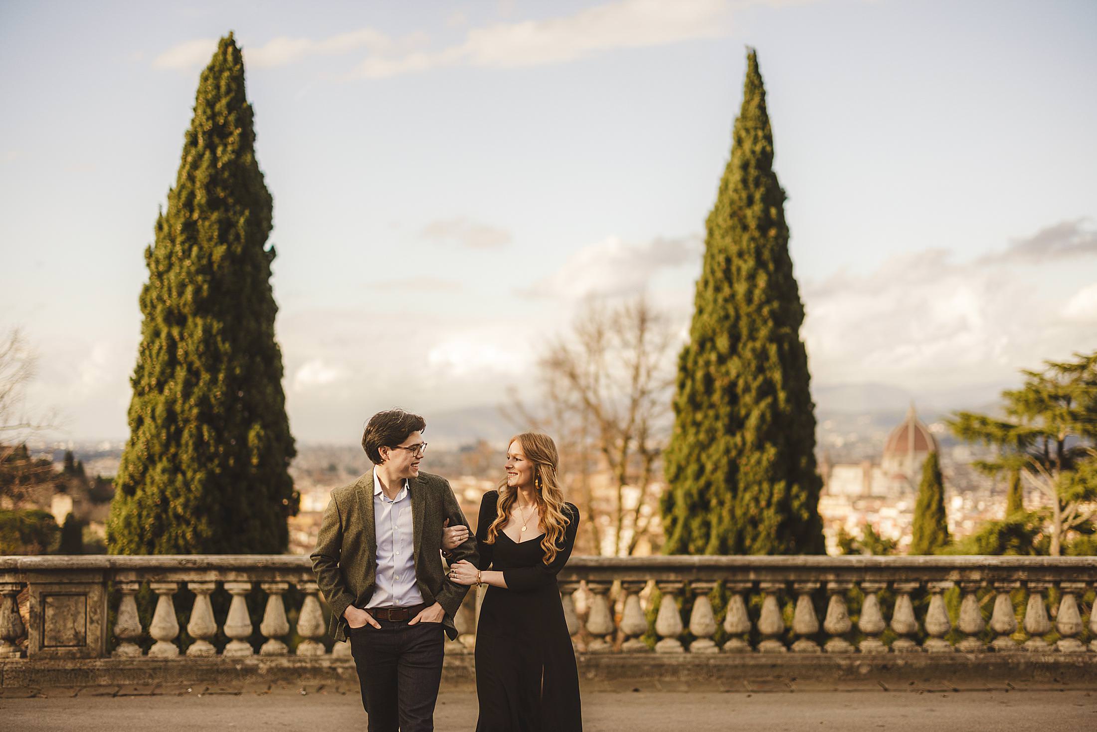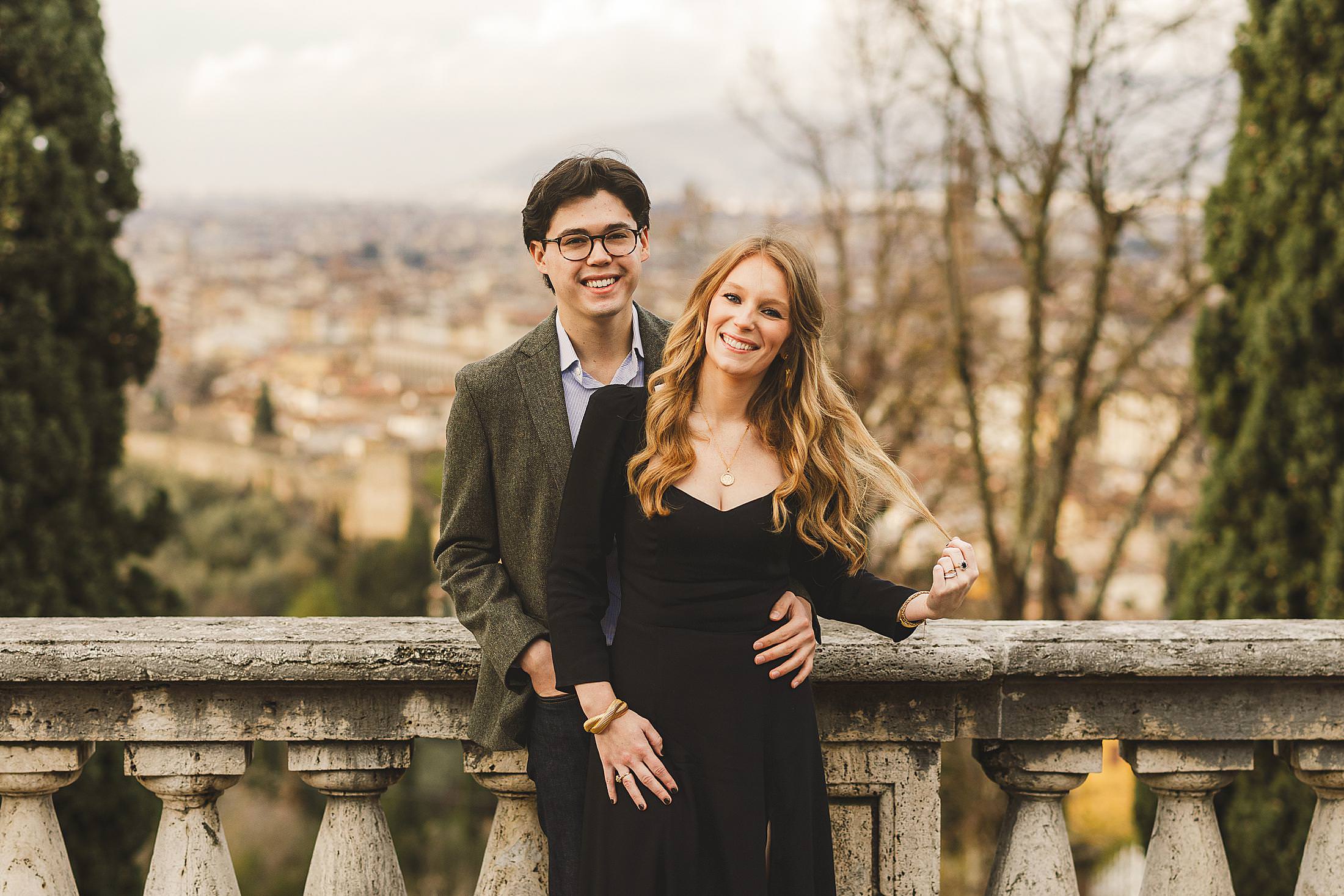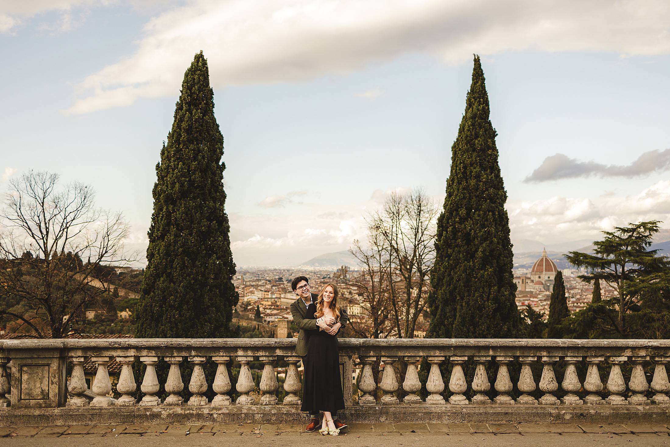 Winter Florence photo shoot in the most beautiful panoramic location of the city. Photo by the Italian creative and modern engagement photographer in Tuscany based Florence Gabriele Fani