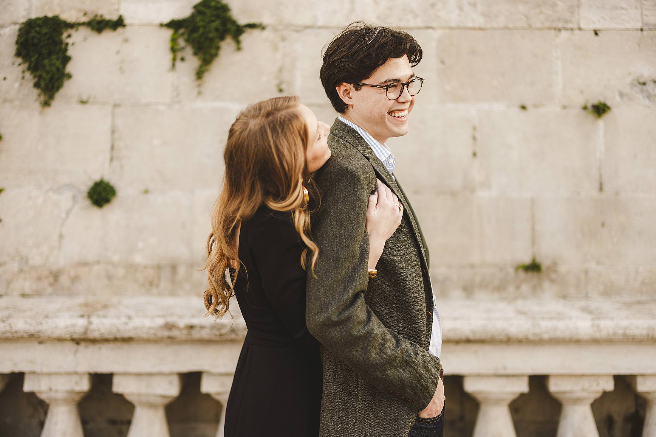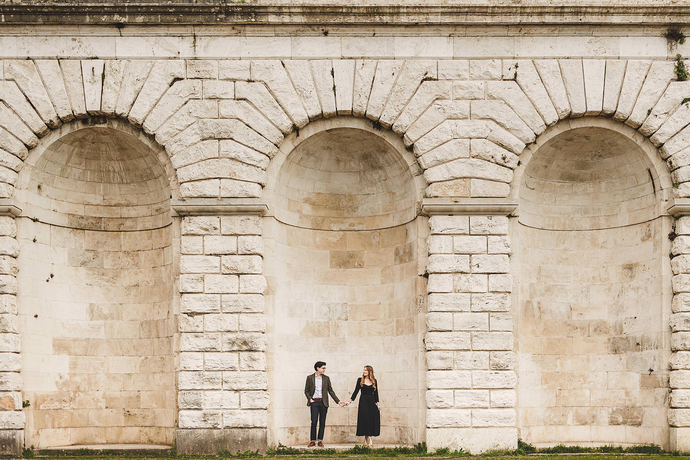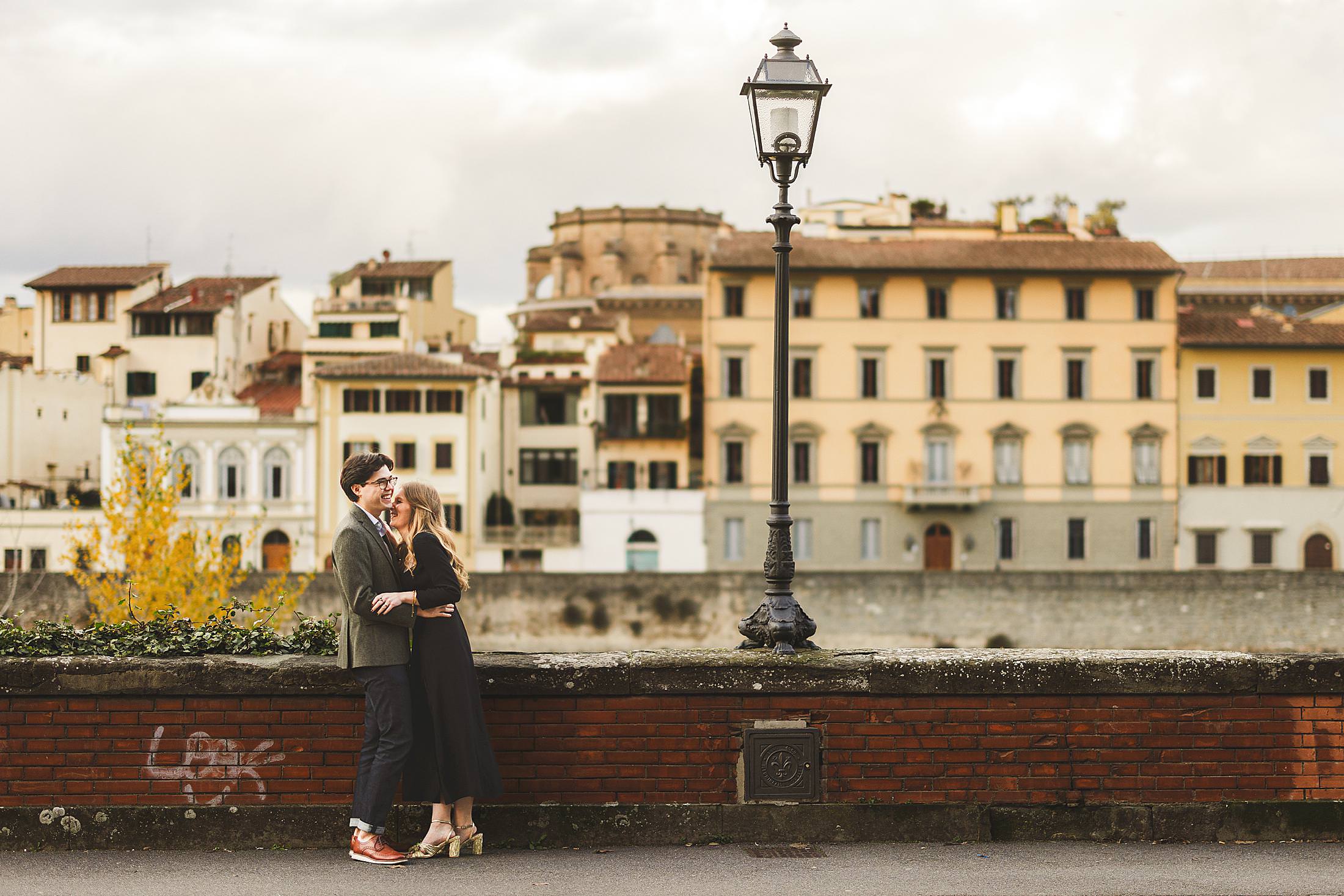 Candid and creative pre-wedding photo session in Florence Lungarno river street. Photo by the Italian creative and modern engagement photographer in Tuscany based Florence Gabriele Fani