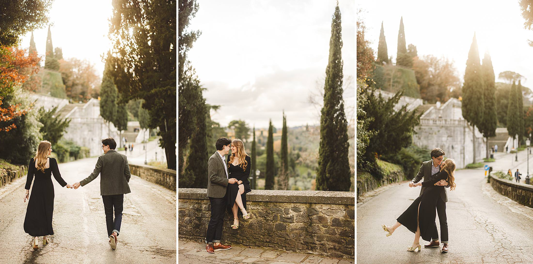 Having previously embarked on a sunrise photo session in the heart of the city, this time we chose a different narrative – one that would be painted against the panoramic canvas of San Miniato al Monte.
