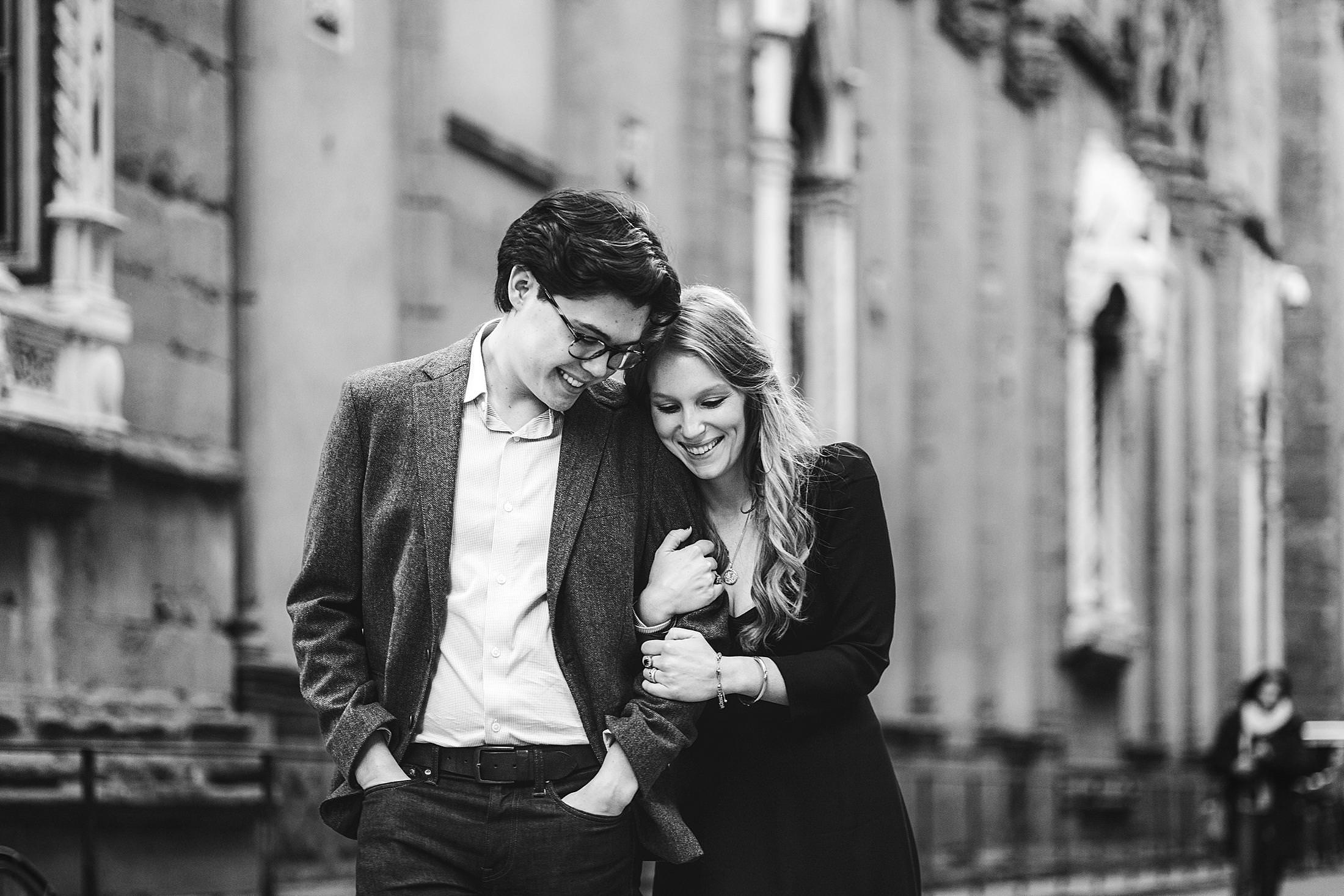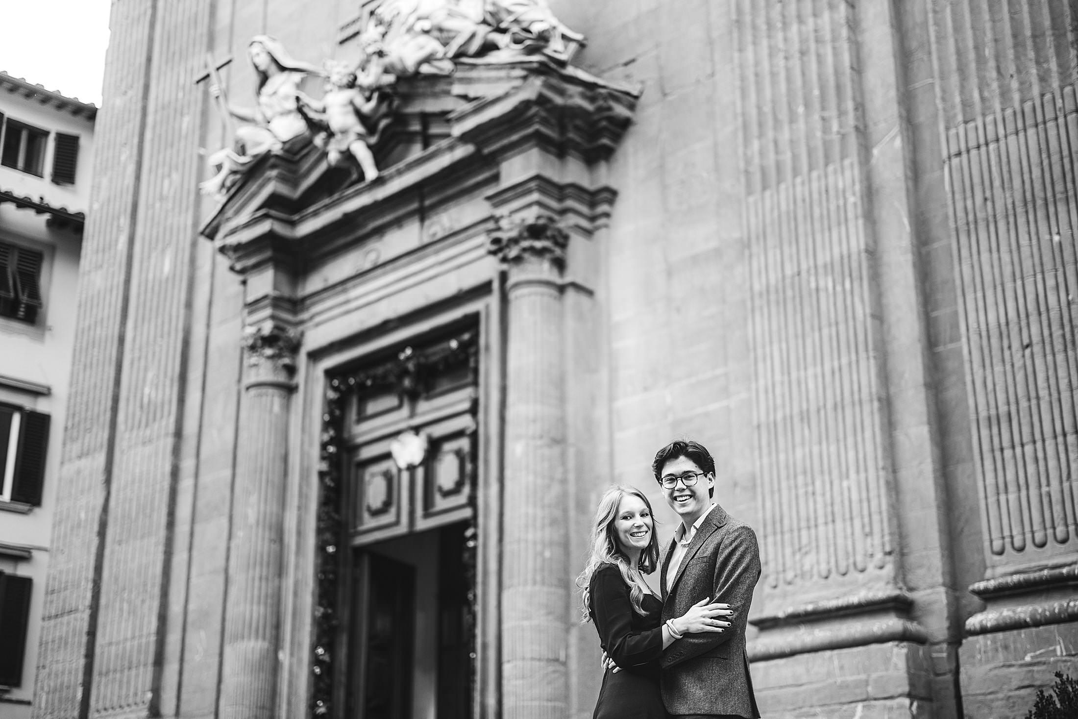 Elegant Kate and Cameron’s winter pre-wedding photoshoot in Florence historic center. Photo by the Italian creative and modern engagement photographer in Tuscany based Florence Gabriele Fani