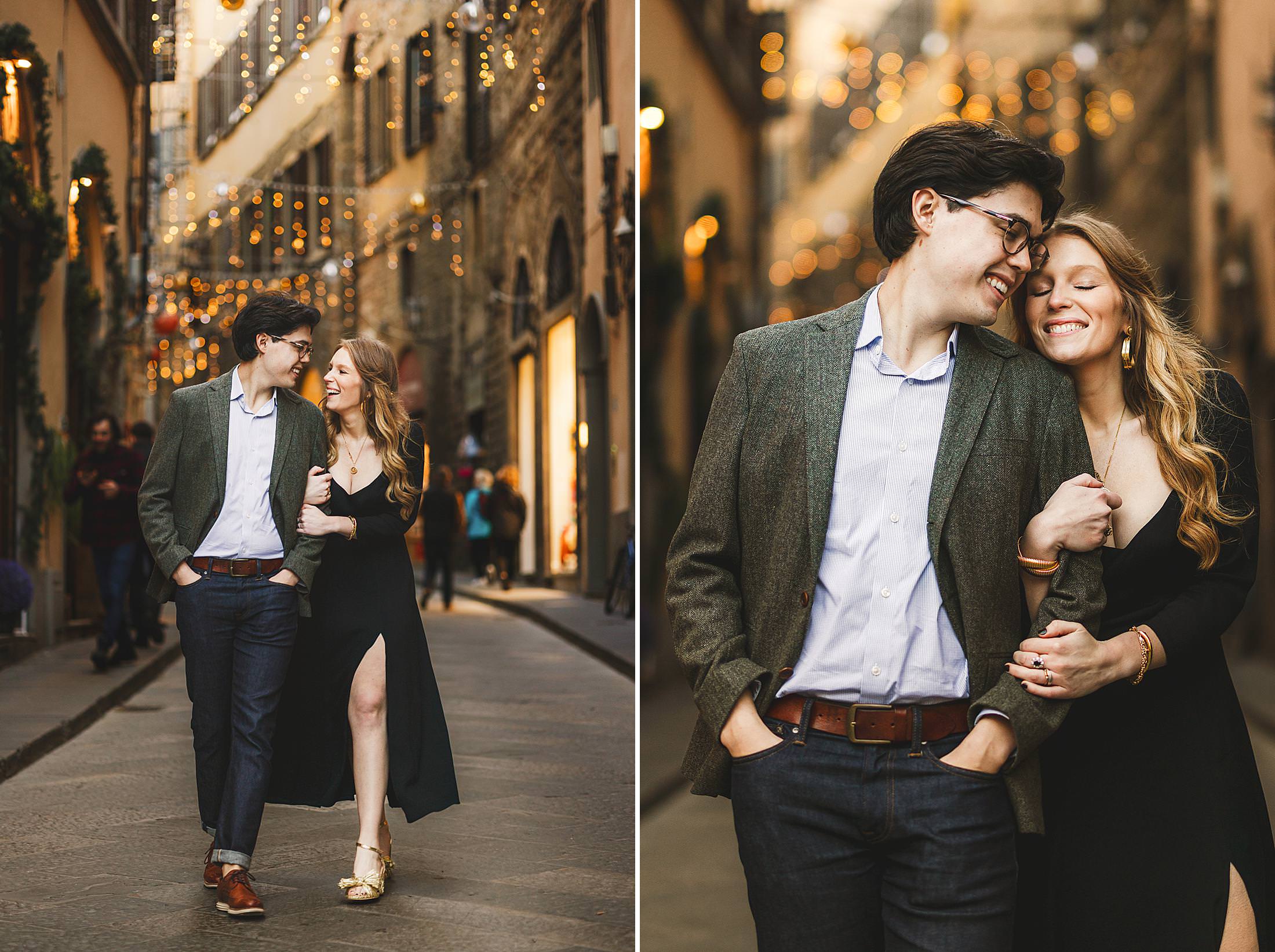 As the sun descended, casting its final golden hues over the city, Kate and Cameron’s couple pictures became a visual symphony to celebrate both personal connection and the magic of Christmas in Florence.