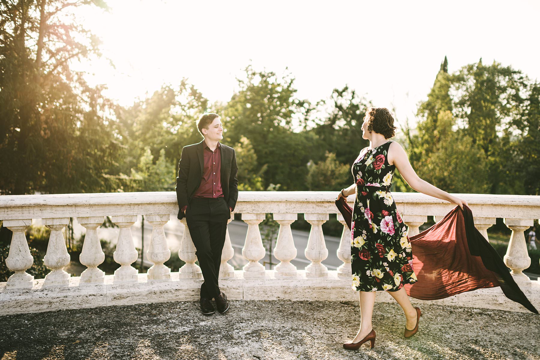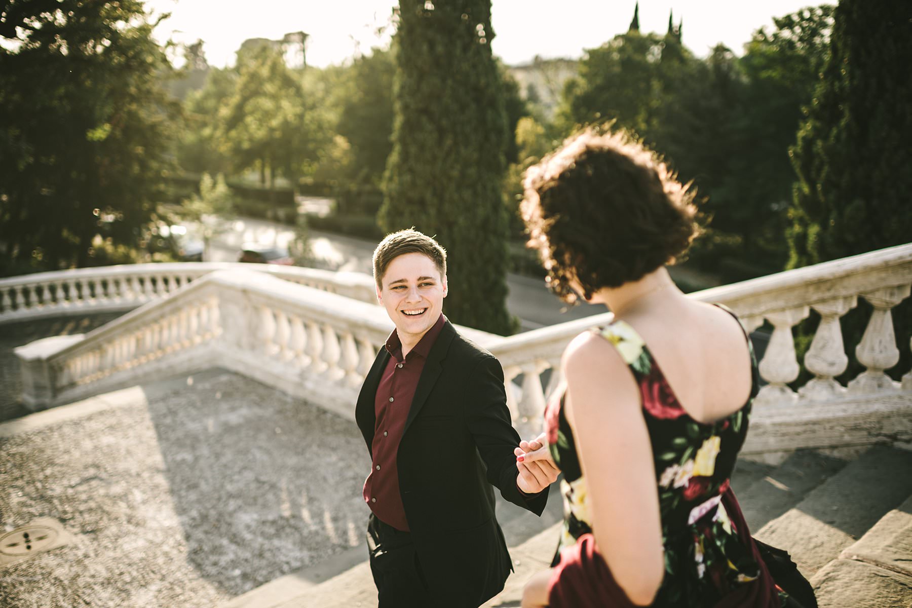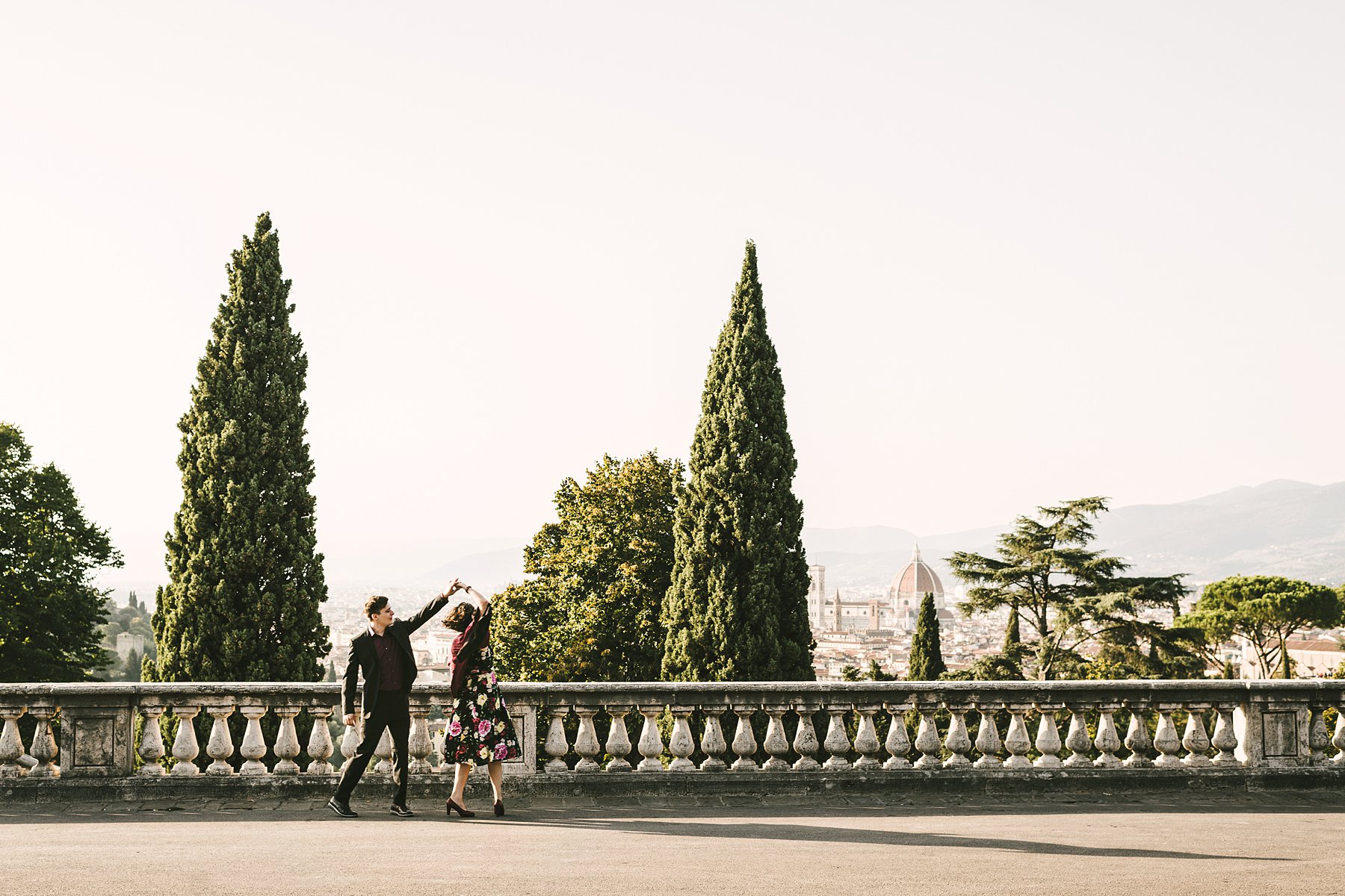 Engagement pictures are usually romantic, but they do their best work when they turn out to be also fun and creative. Take those photos at sunset in a charming city like Florence and you will reach perfection.