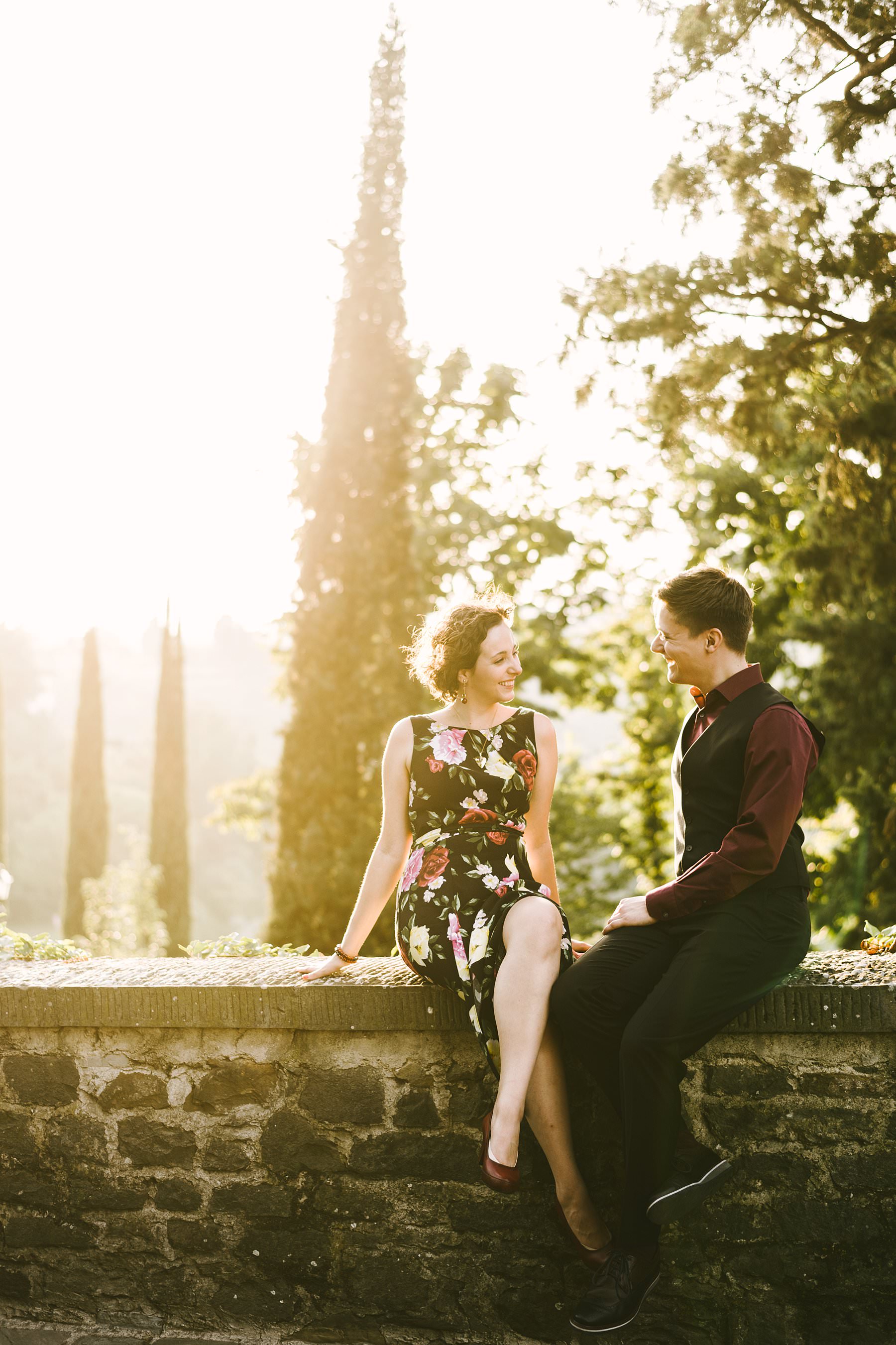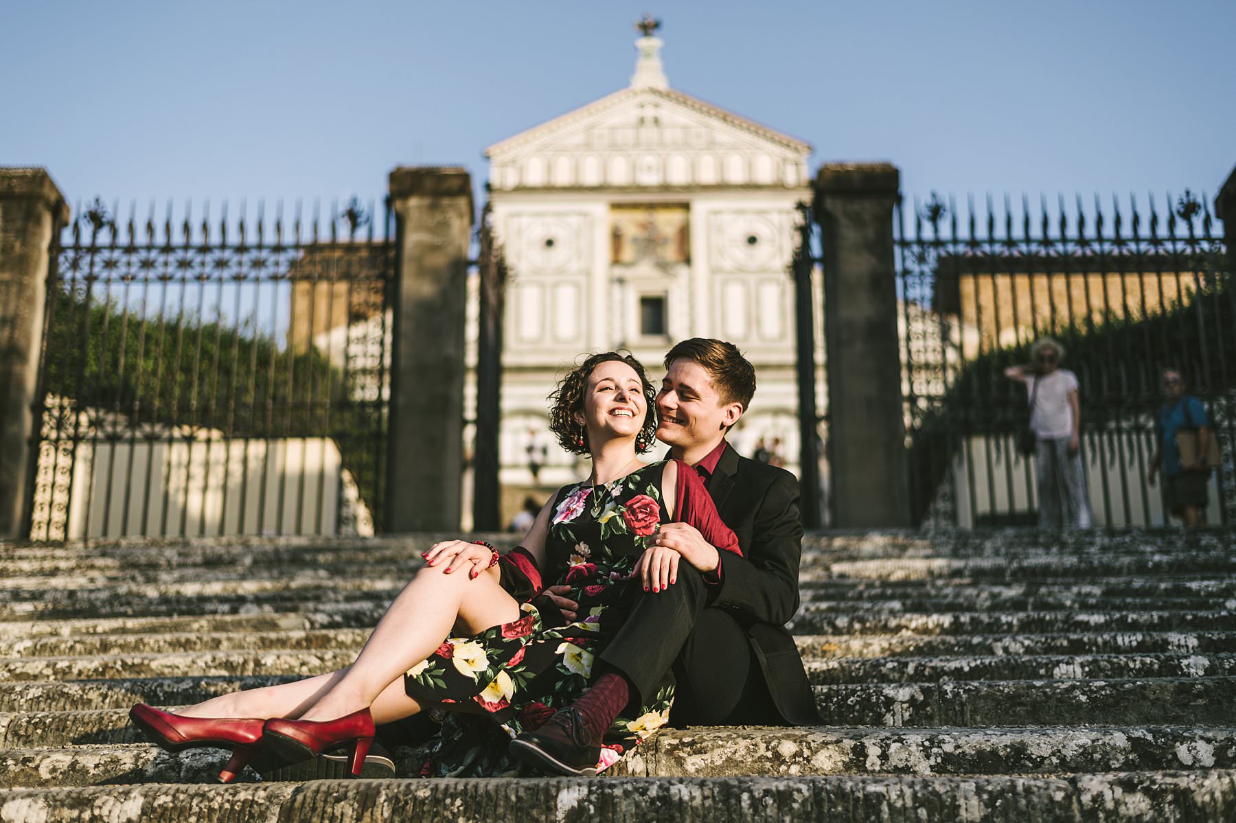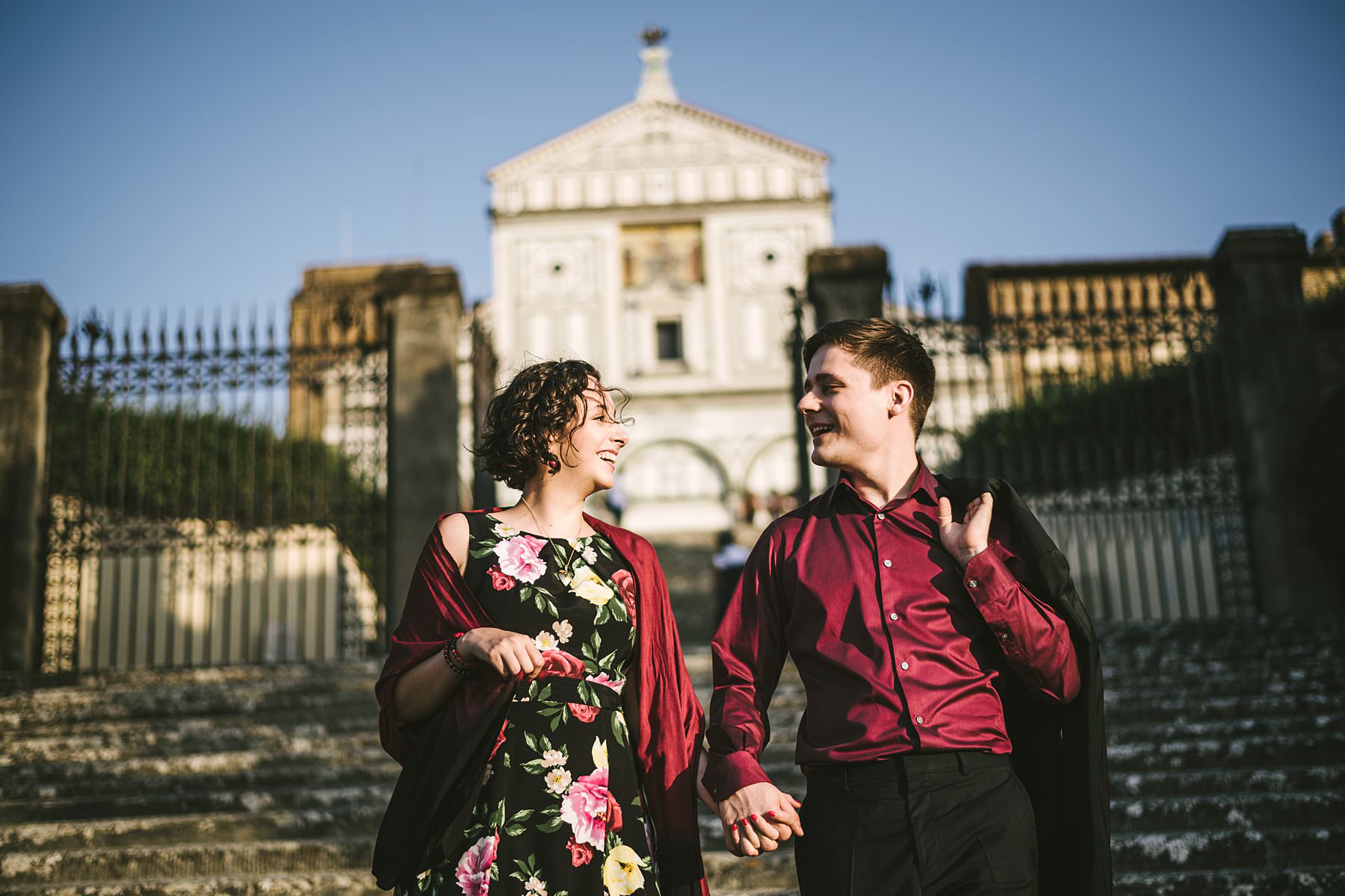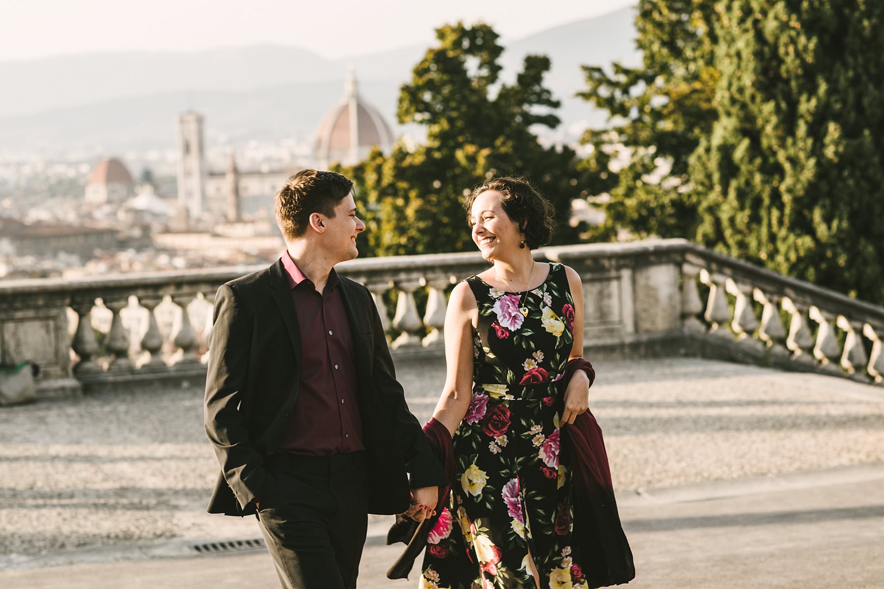 These photos are twice as precious for Isabel and Matthew, because they enshrine memories of their pre-wedding and of their holiday as fiancées. If you’re willing to have your own photos shot at sunset in this stunning scenario, get in touch with me: I will feel honored to be your engagement photographer in Florence.