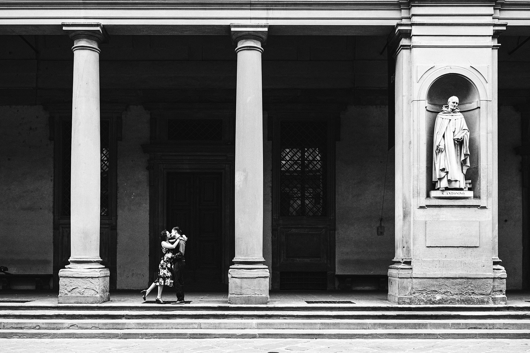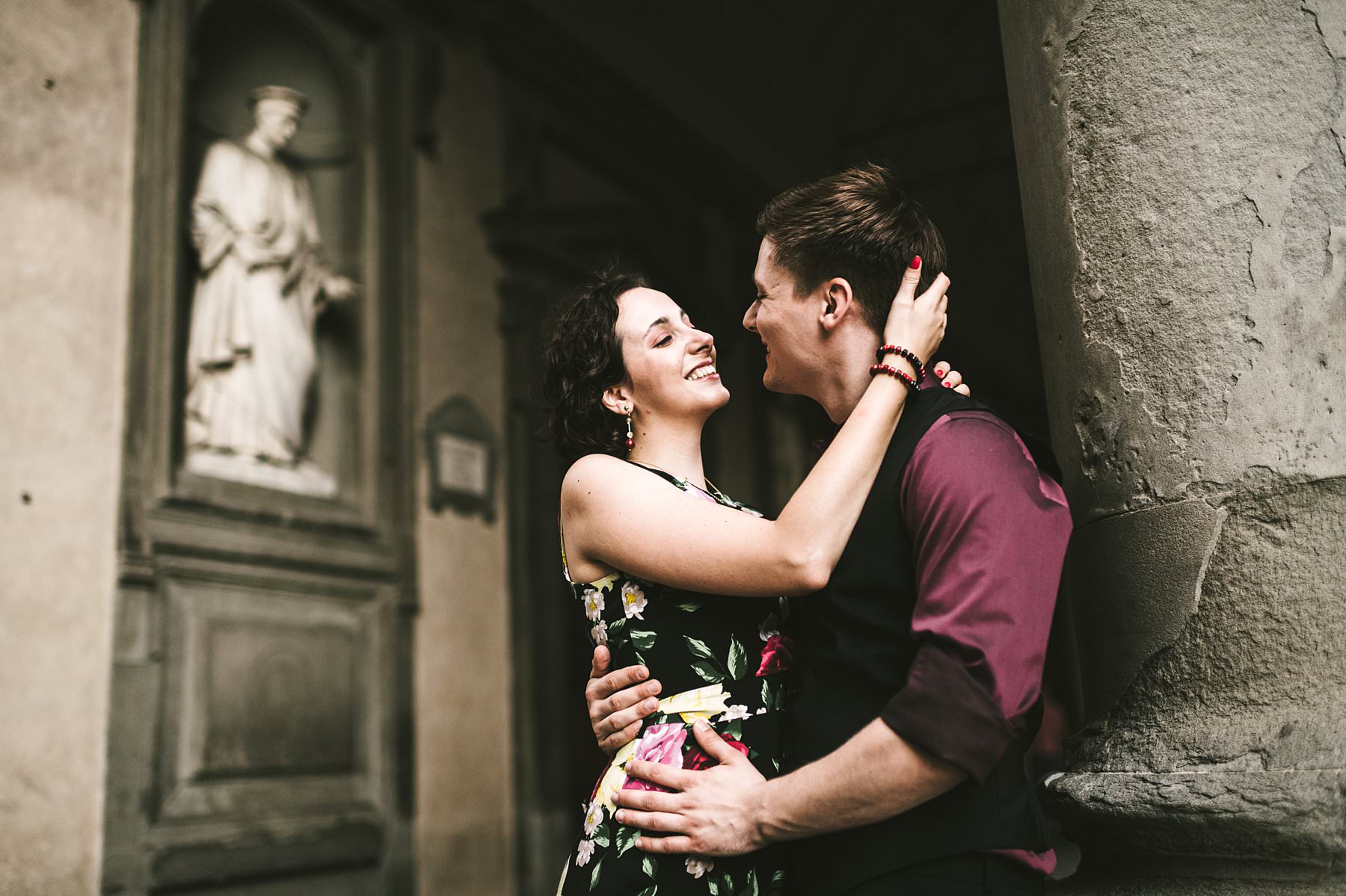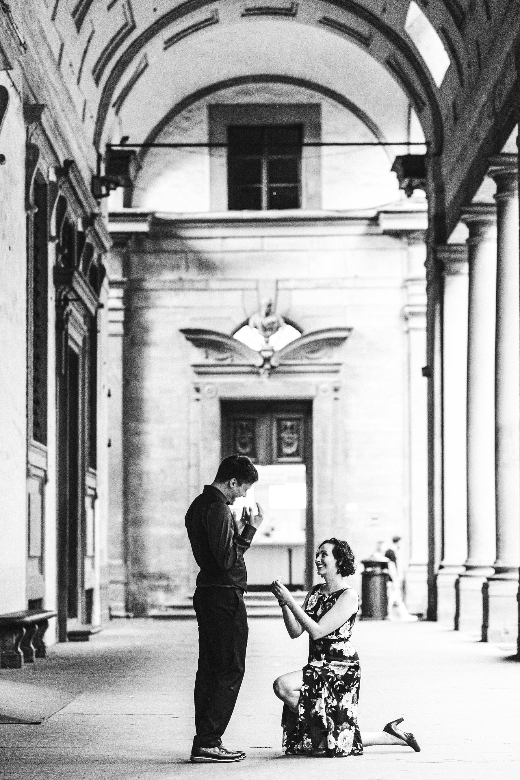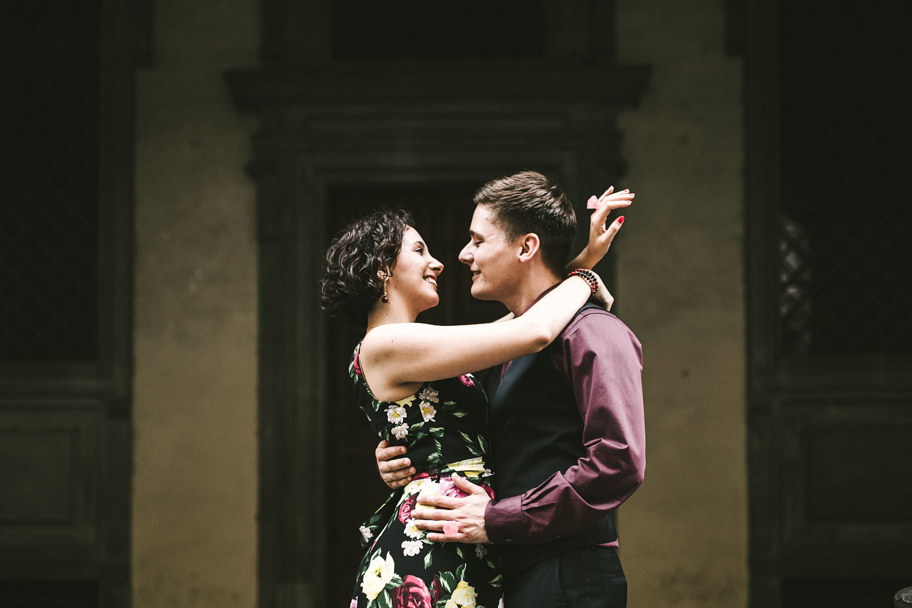 They both have strong and radiant personalities, that appear in every image we shot. They were dancing and laughing, openly showing affection to one another. They were having fun, as you can see from the proposal photographs where Matthew kneels down at the Uffizi Gallery… and then Isabel does the same! They looked like two actors in a movie from the 50s: it was a pleasure to portray this unpredictable and enthusiast couple.