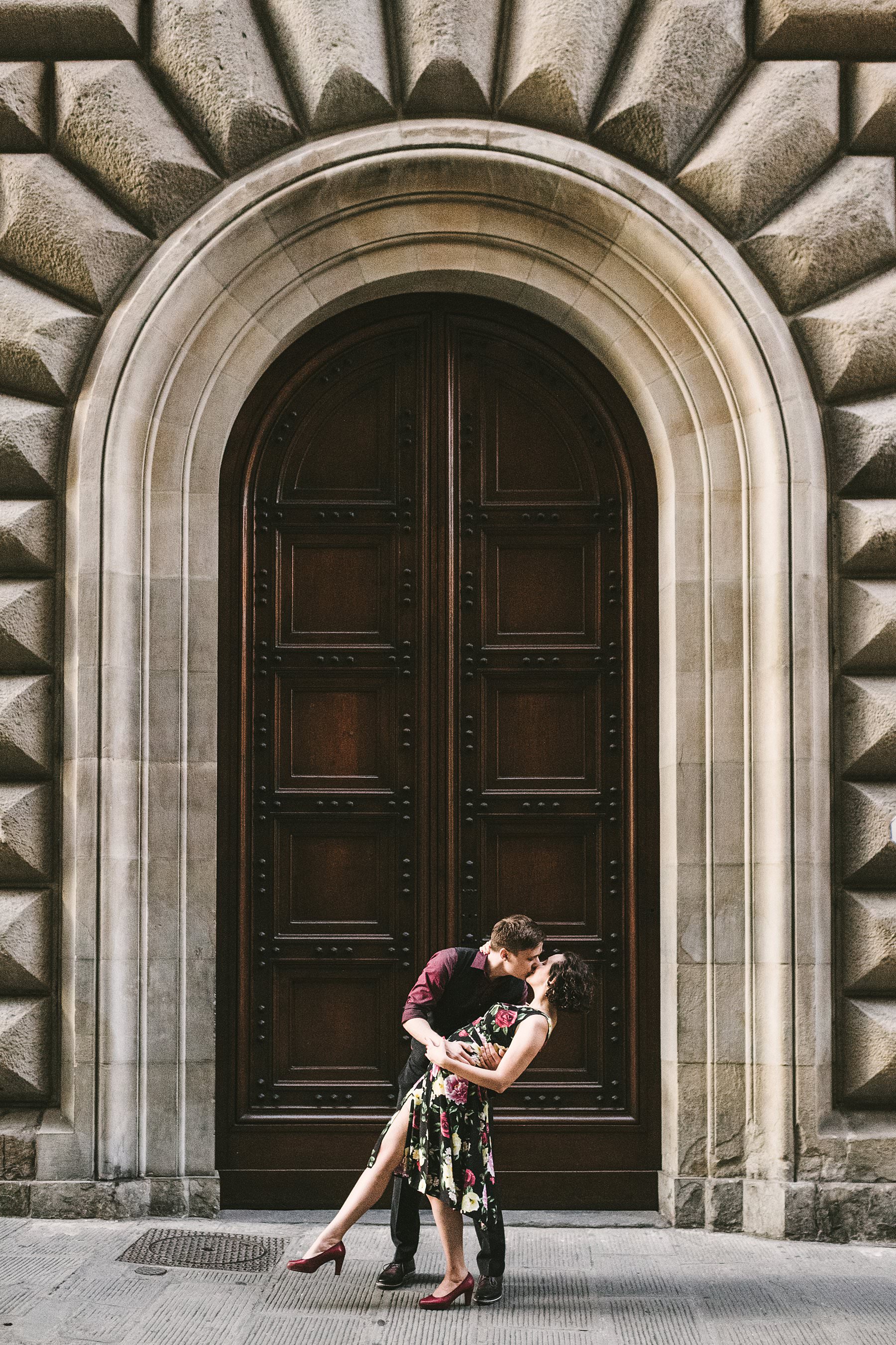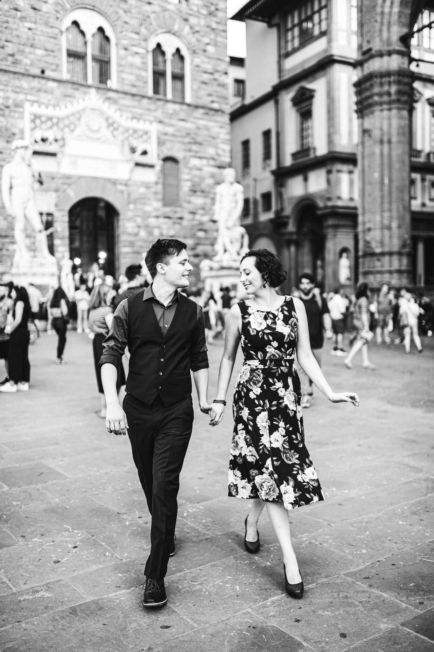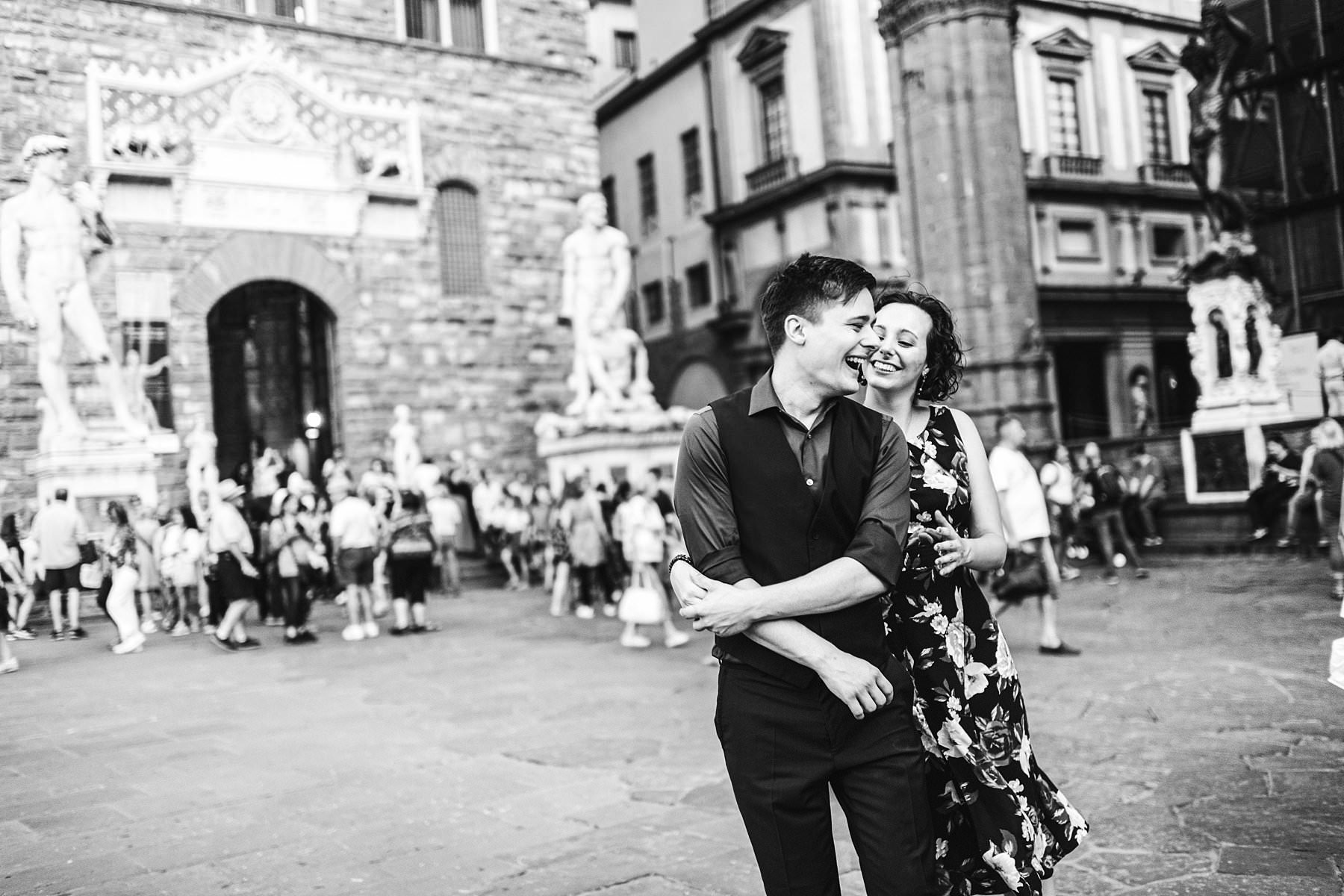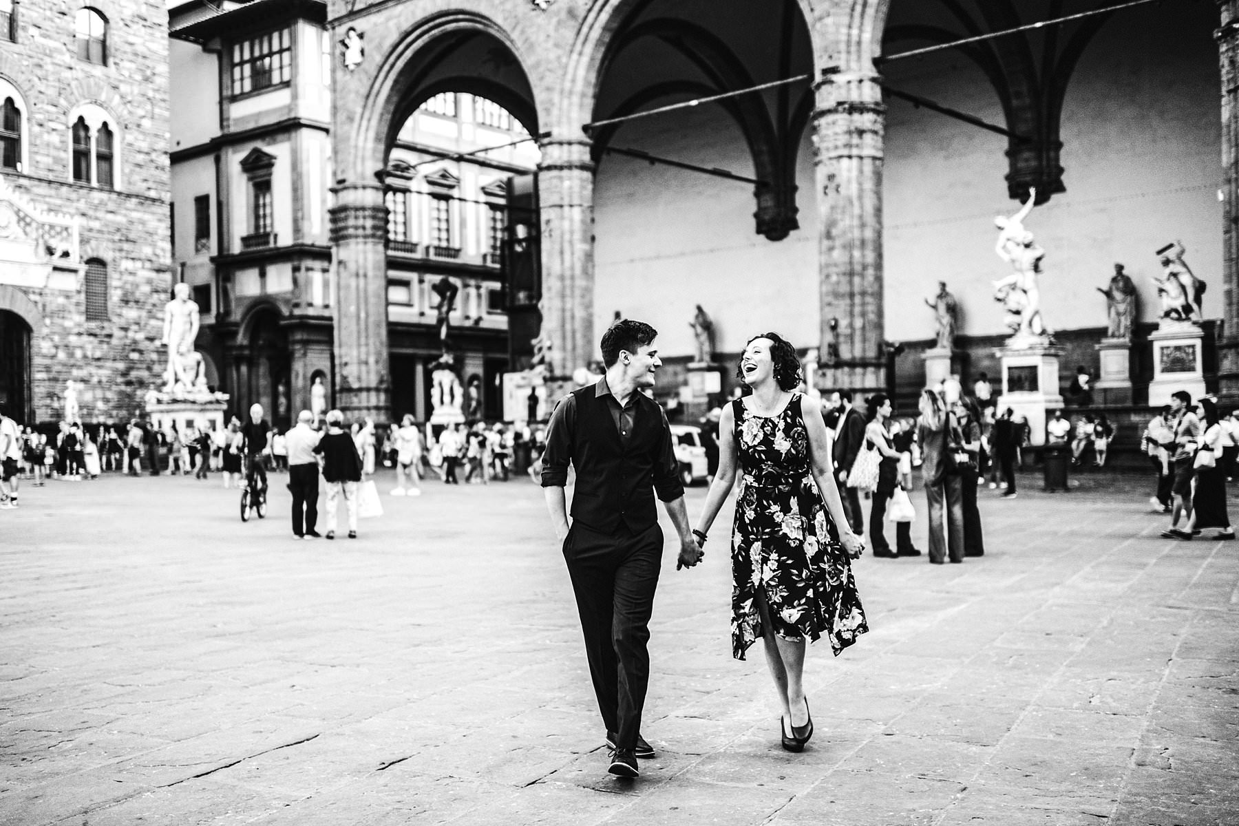 They both have strong and radiant personalities, that appear in every image we shot. They were dancing and laughing, openly showing affection to one another. They were having fun, as you can see from the proposal photographs where Matthew kneels down at the Uffizi Gallery… and then Isabel does the same! They looked like two actors in a movie from the 50s: it was a pleasure to portray this unpredictable and enthusiast couple.