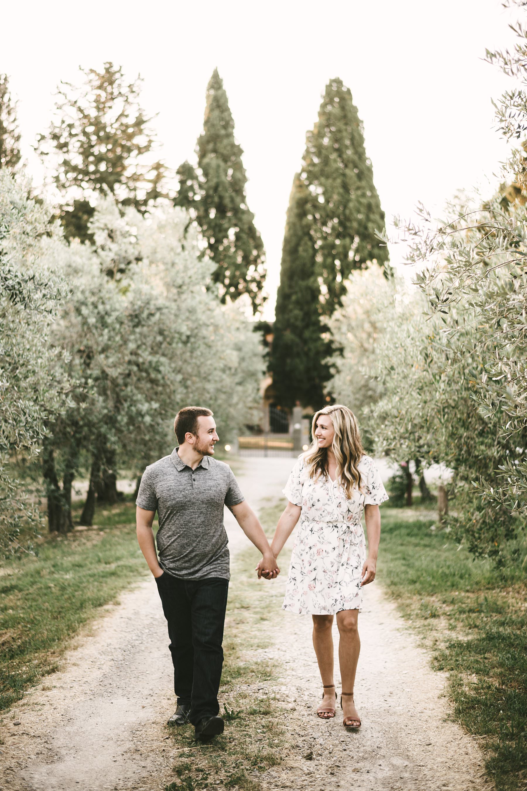 Delicate outdoor engagement photos in Tuscany: a holiday to remember