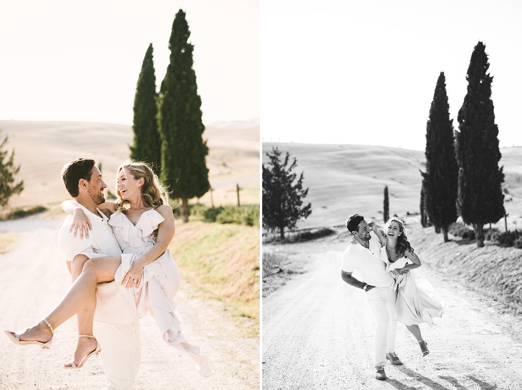 It started out in Pienza, a lovely historical town in Tuscany, where we could break the ice with some couple shots in front of the charming architecture. Then, when they felt ready, we moved to the real jewel of the area: the countryside.