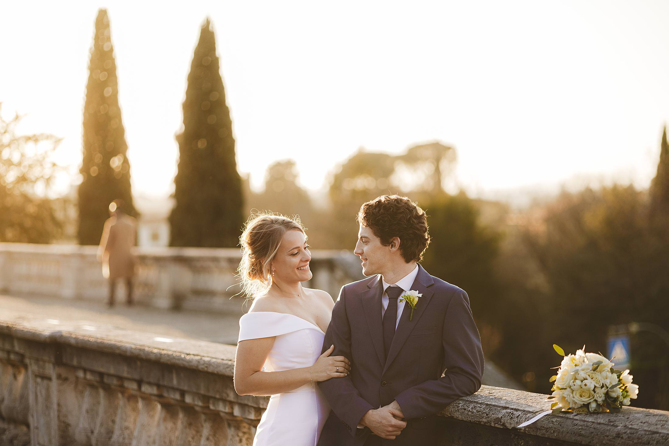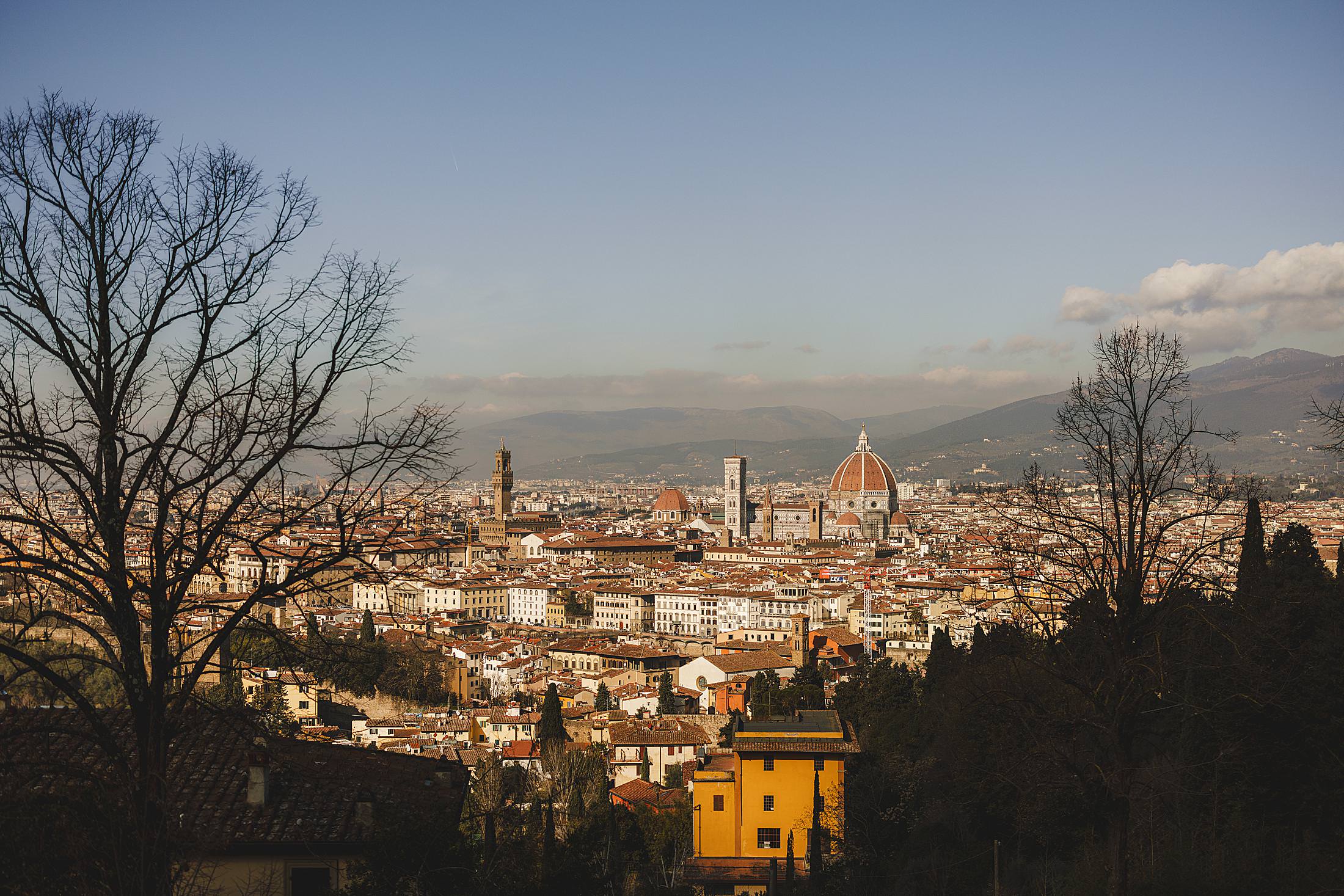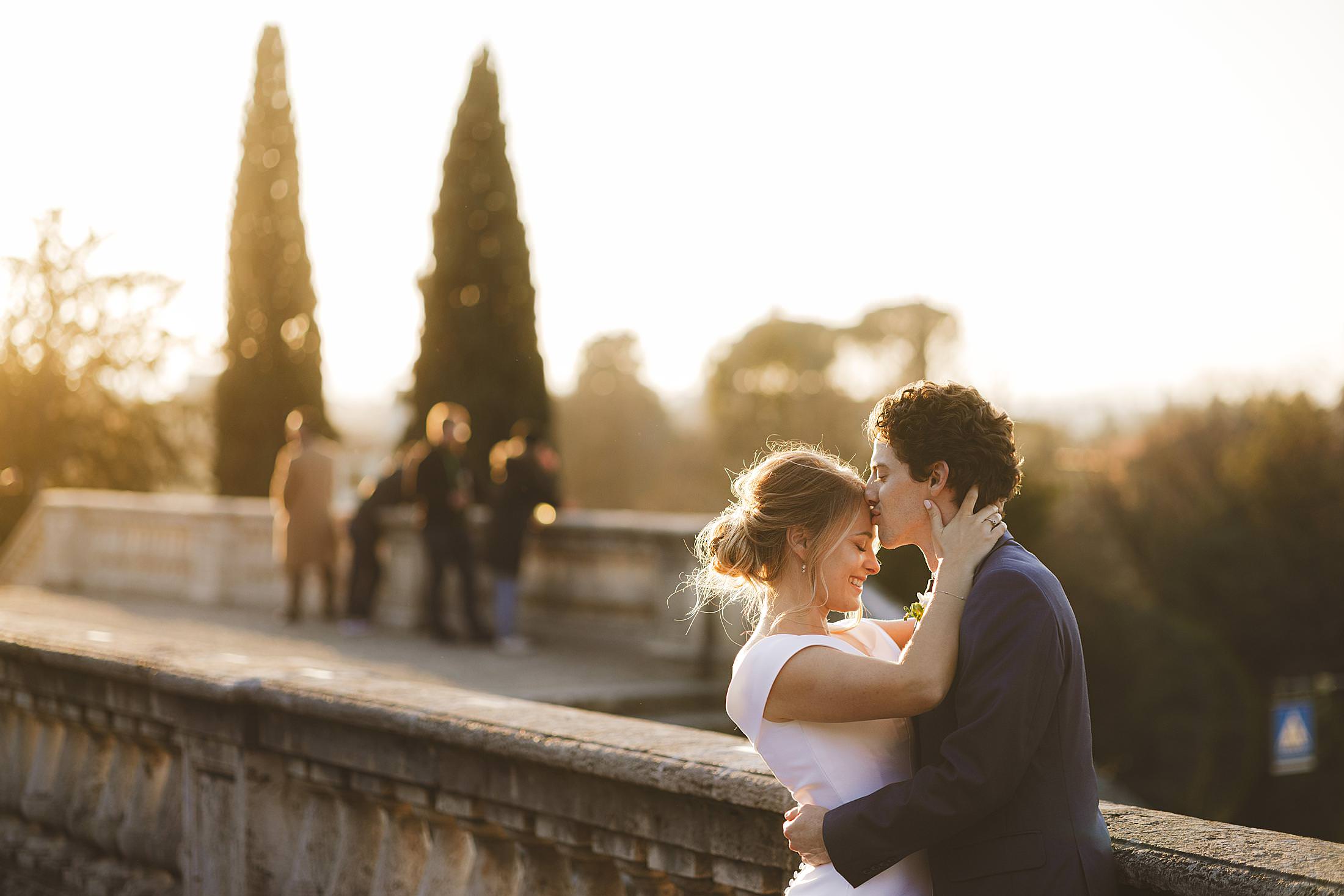 Elopement wedding portrait at the panoramic spot offering sweeping views over Florence. Photo by the Italian elegant elopement photographer in Florence Gabriele Fani