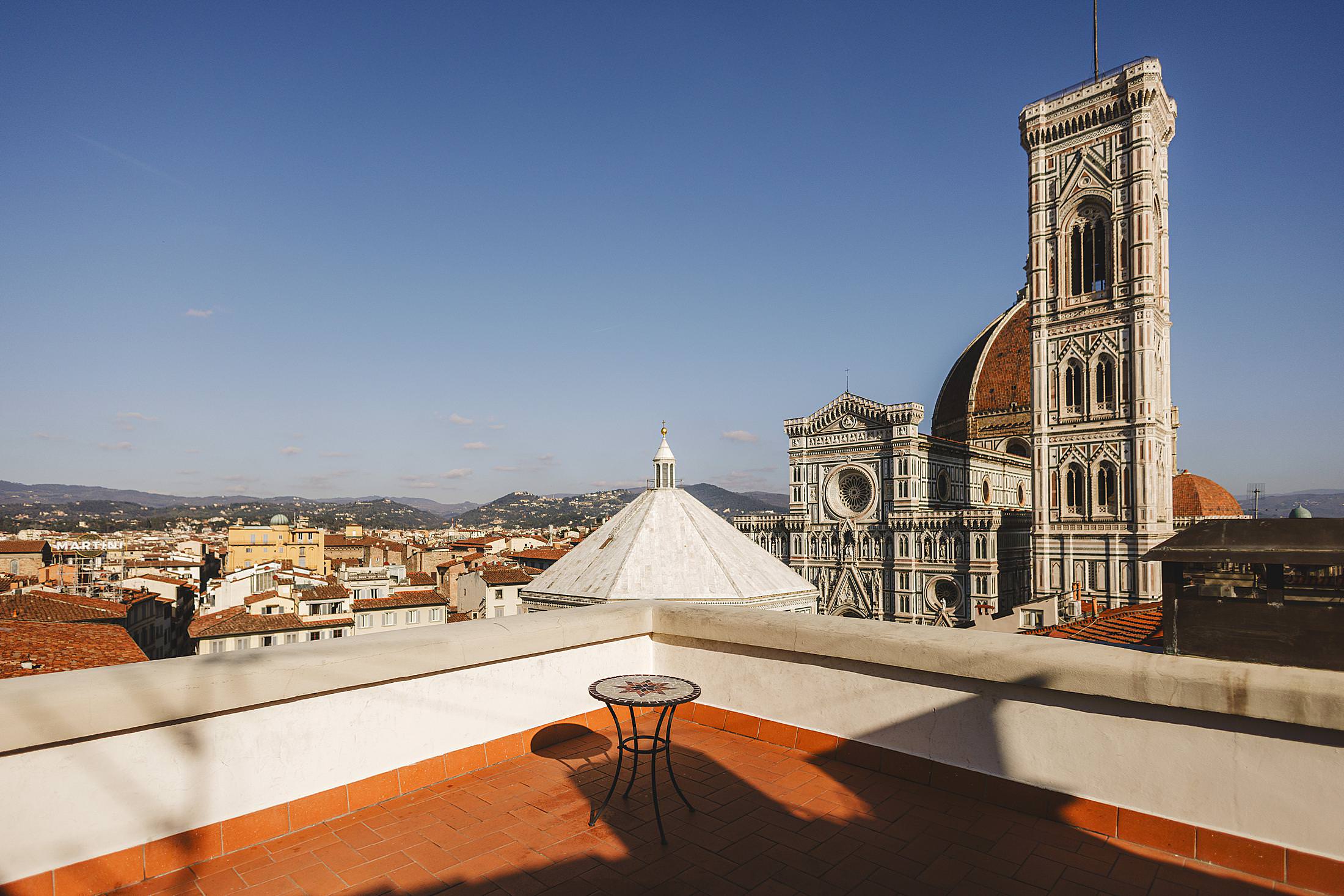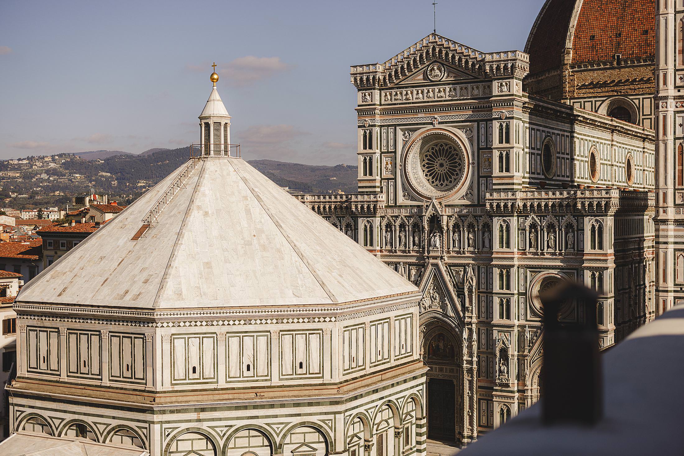 The most breathtaking views imaginable at La Terrazza sul Duomo a perfect venue for an intimate elopement wedding in Florence. Photo by the Italian elegant elopement photographer in Florence Gabriele Fani