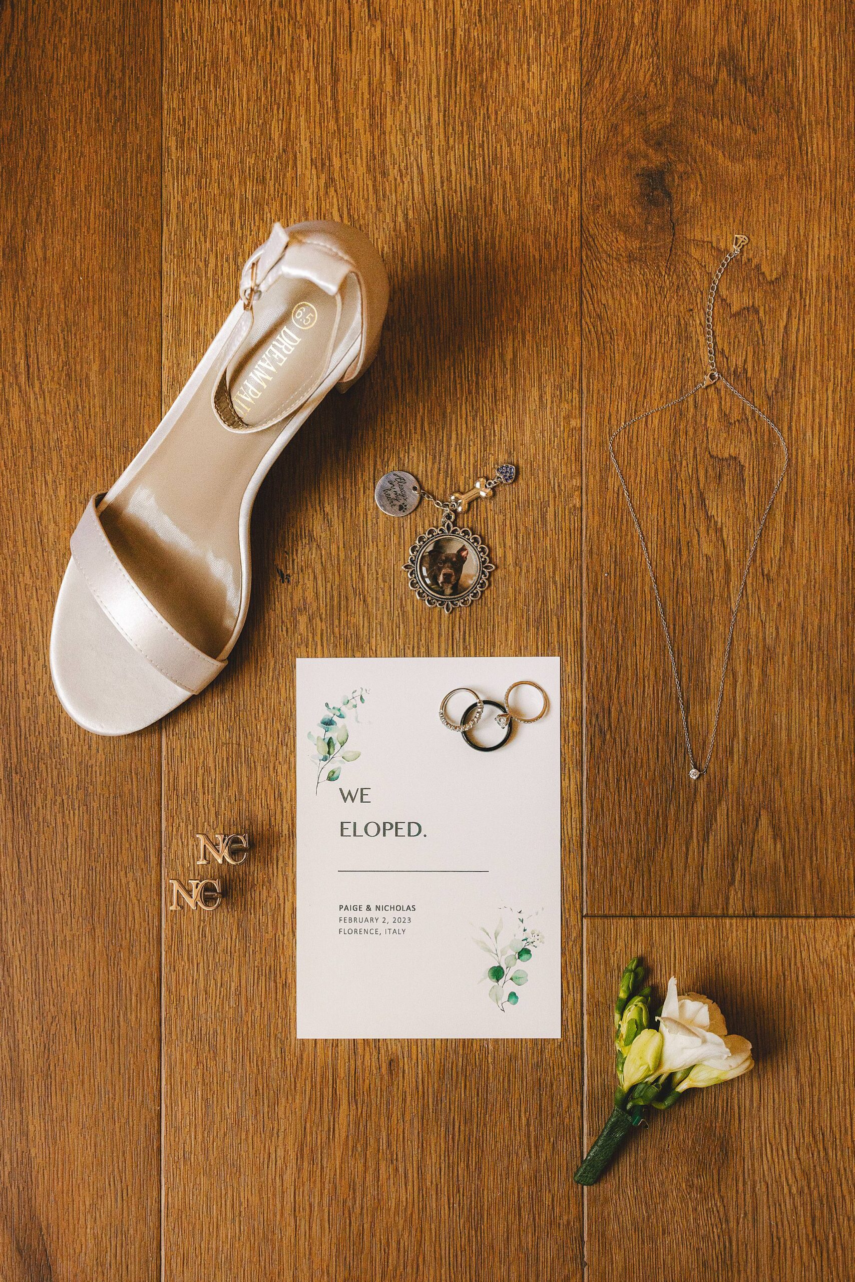 Lovely and beautiful bridal accessories for elopement wedding in Florence at La Terrazza sul Duomo. Photo by the Italian elegant elopement photographer in Florence Gabriele Fani
