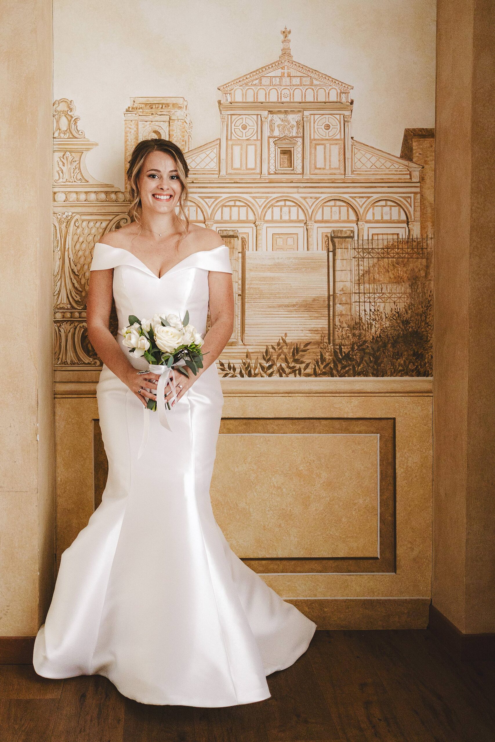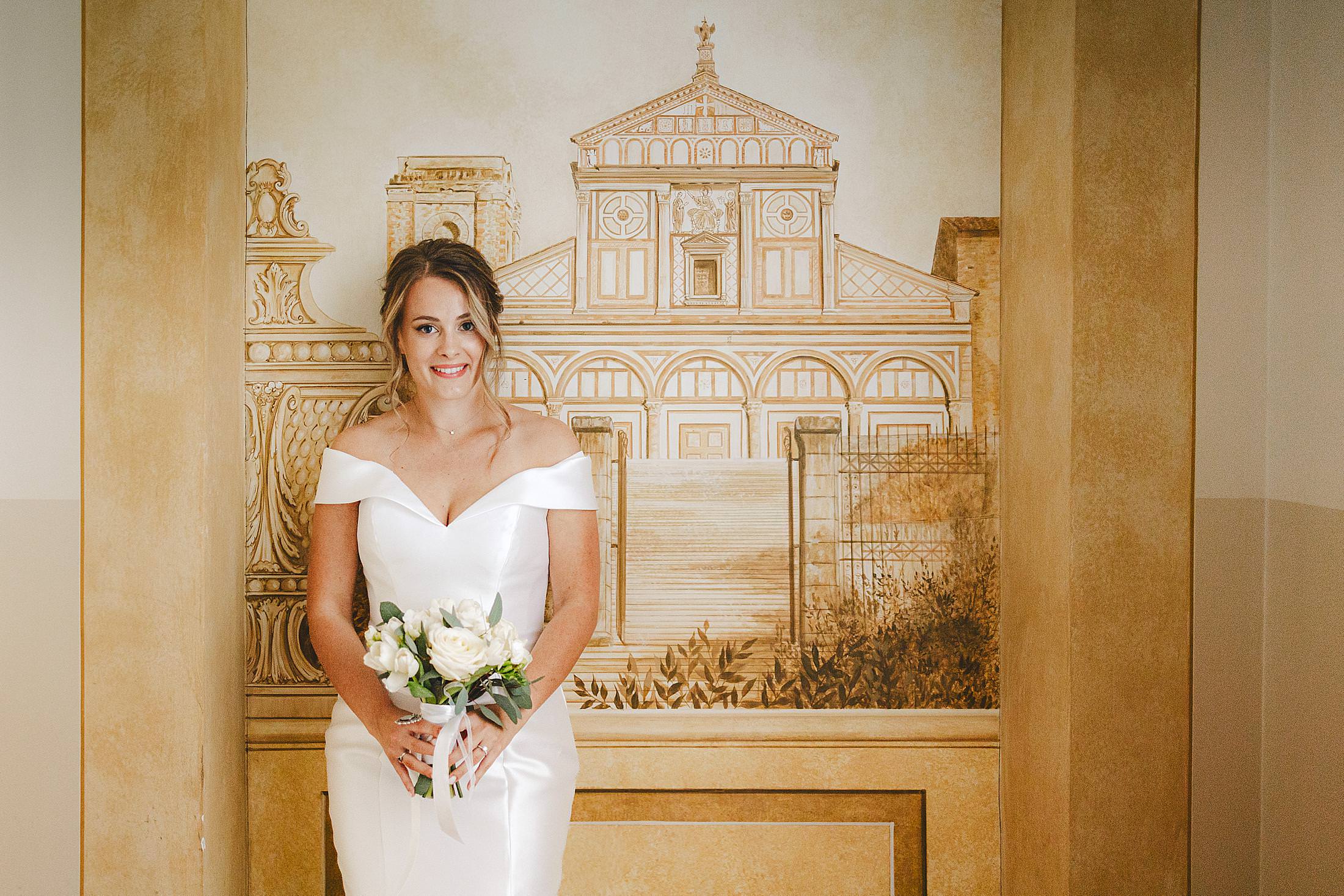 Elegant bride portrait inside the suite of La Terrazza sul Duomo. Photo by the Italian elegant elopement photographer in Florence Gabriele Fani