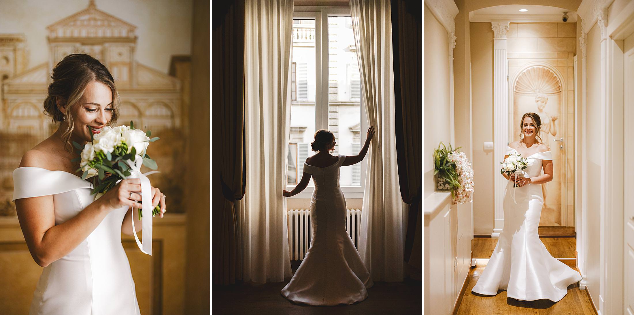 Lovely and elegant bride elopement photos during getting ready at La Terrazza sul Duomo venue in the heart of Florence. Photo by the Italian elegant elopement photographer in Florence Gabriele Fani