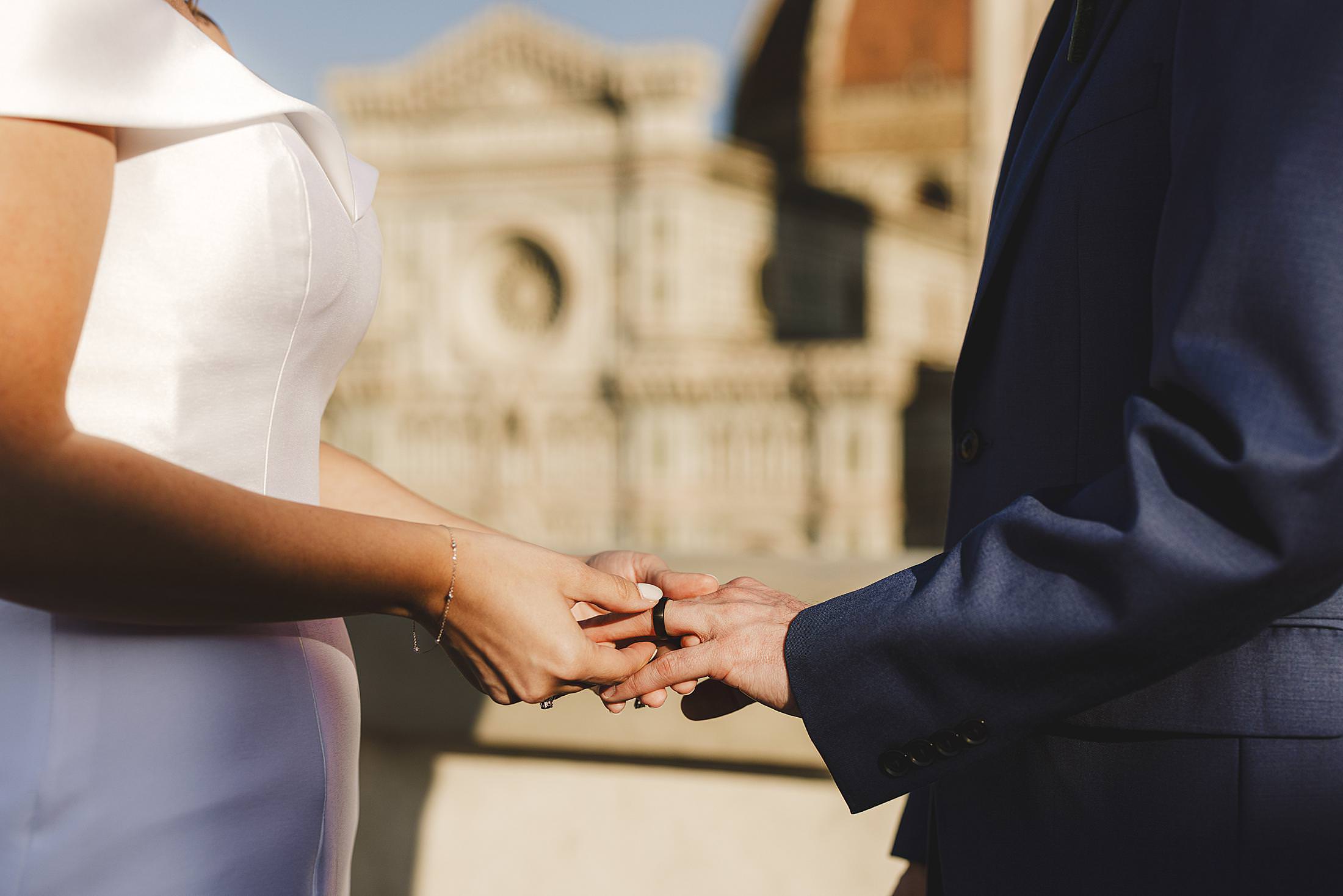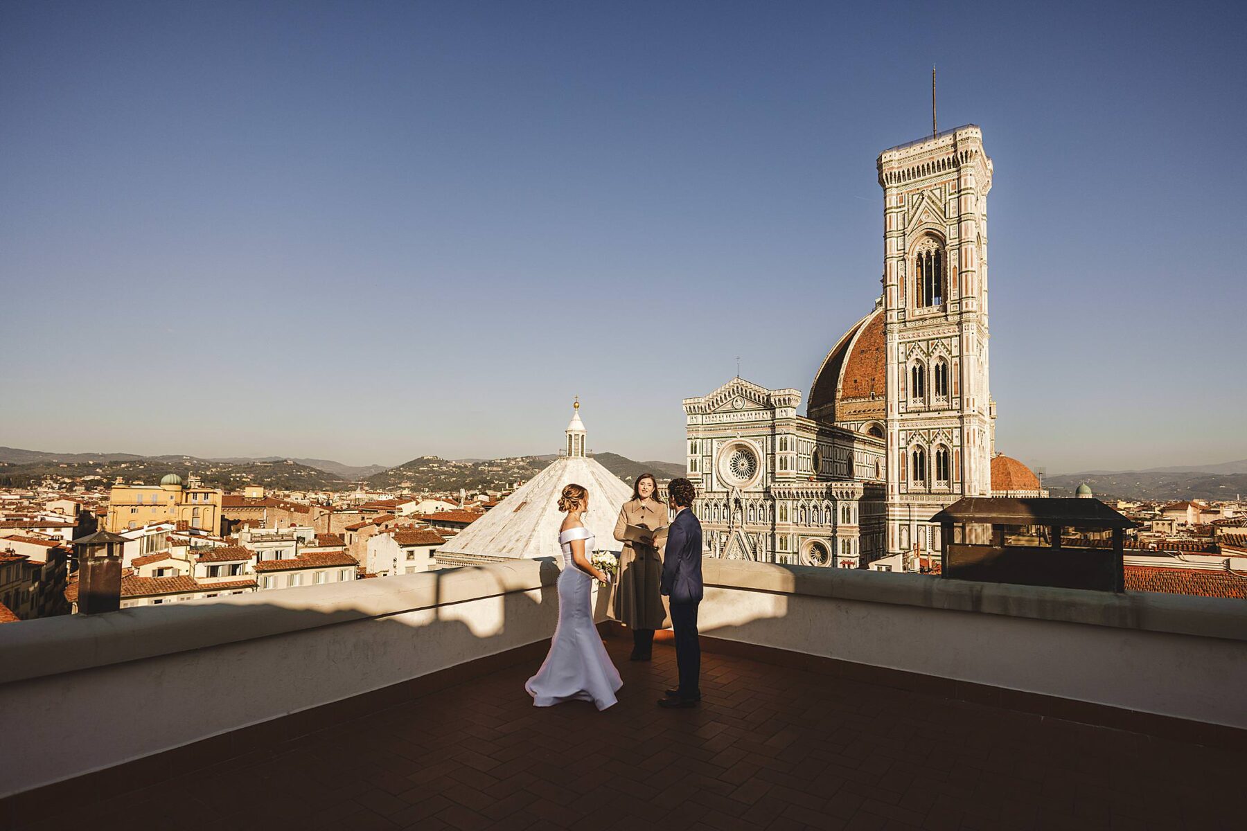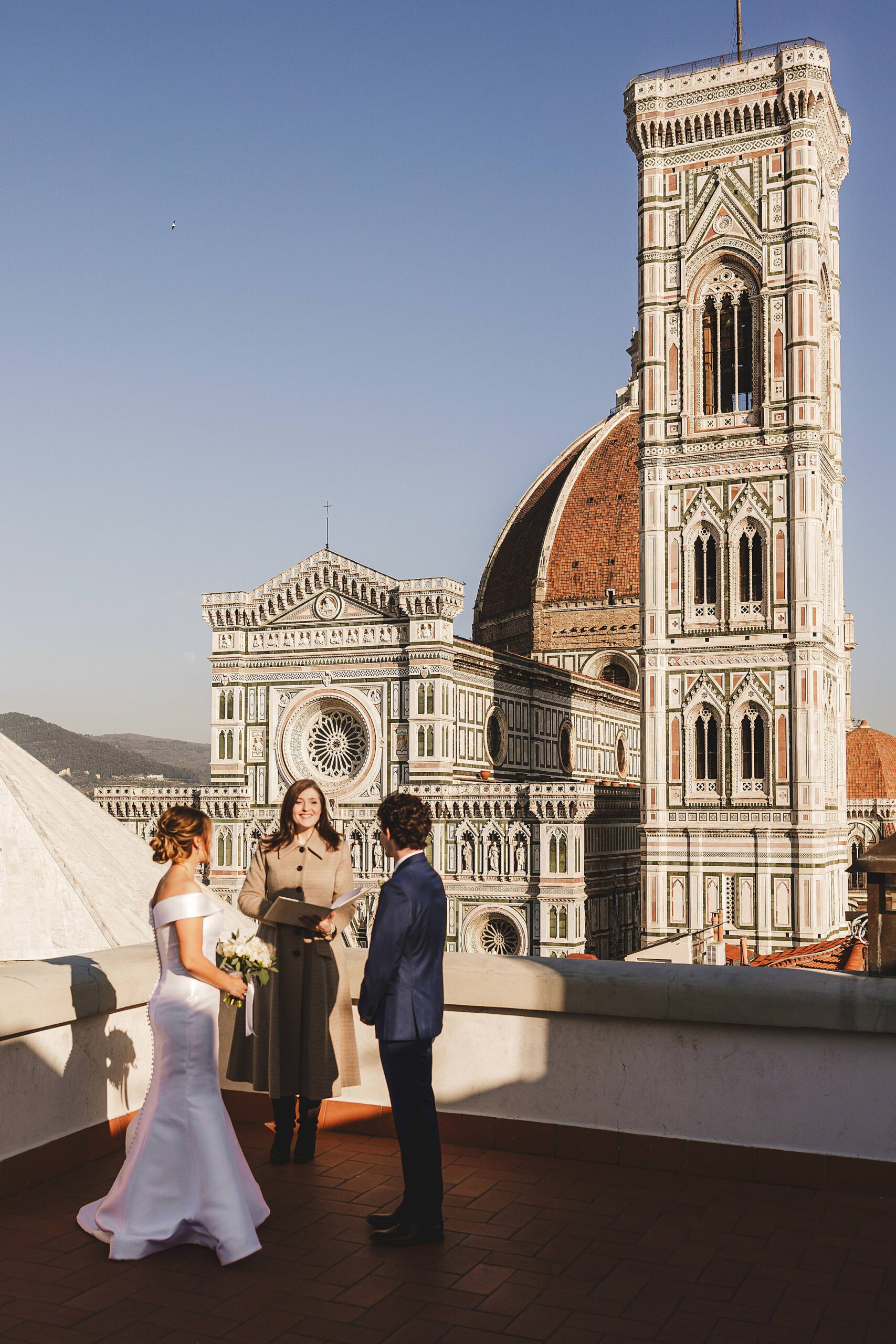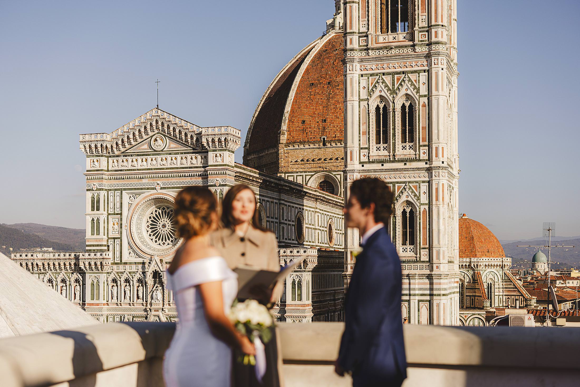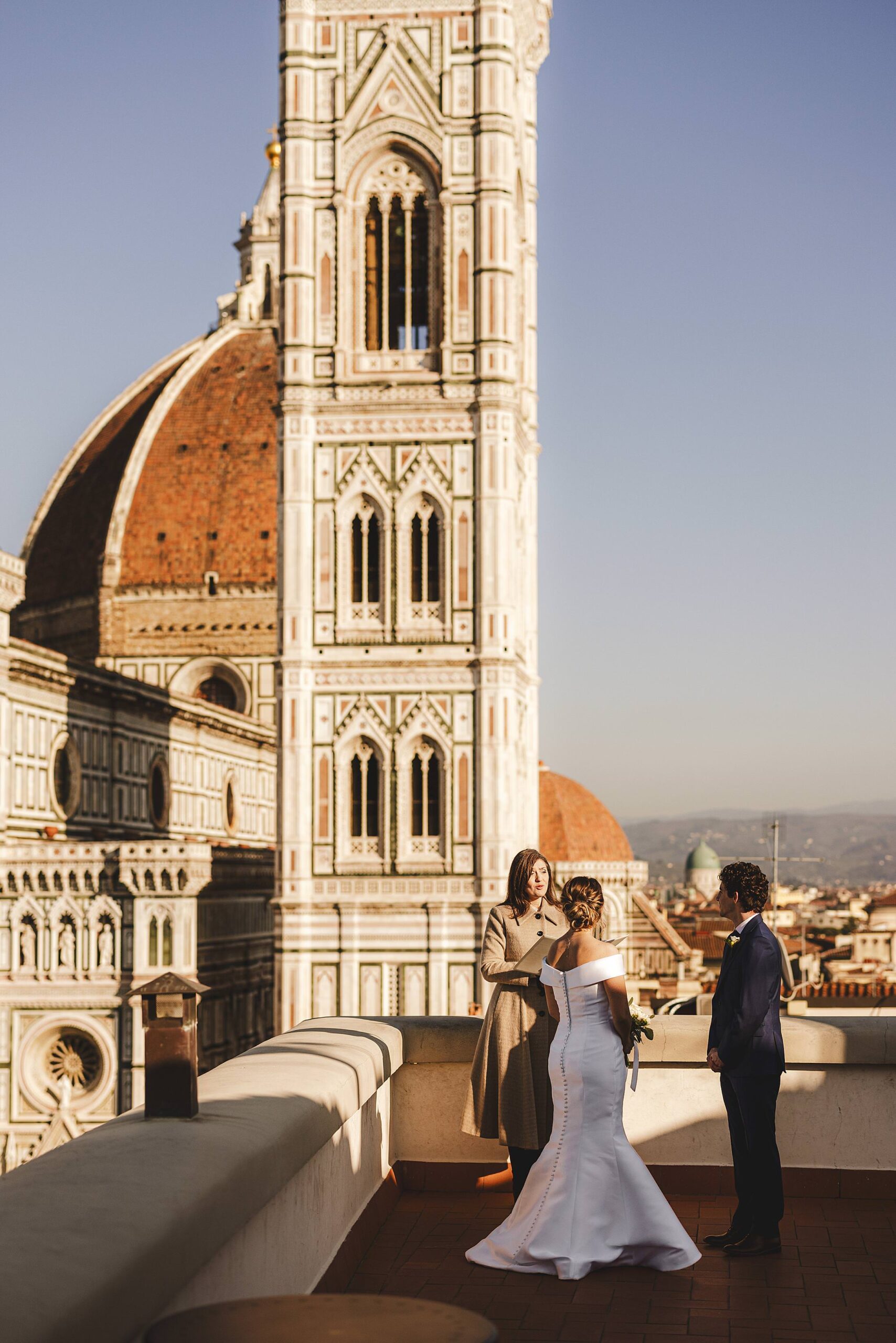 Stunning symbolic elopement ceremony with a grandeur of the Duomo watching over them. Photo by the Italian elegant elopement photographer in Florence Gabriele Fani