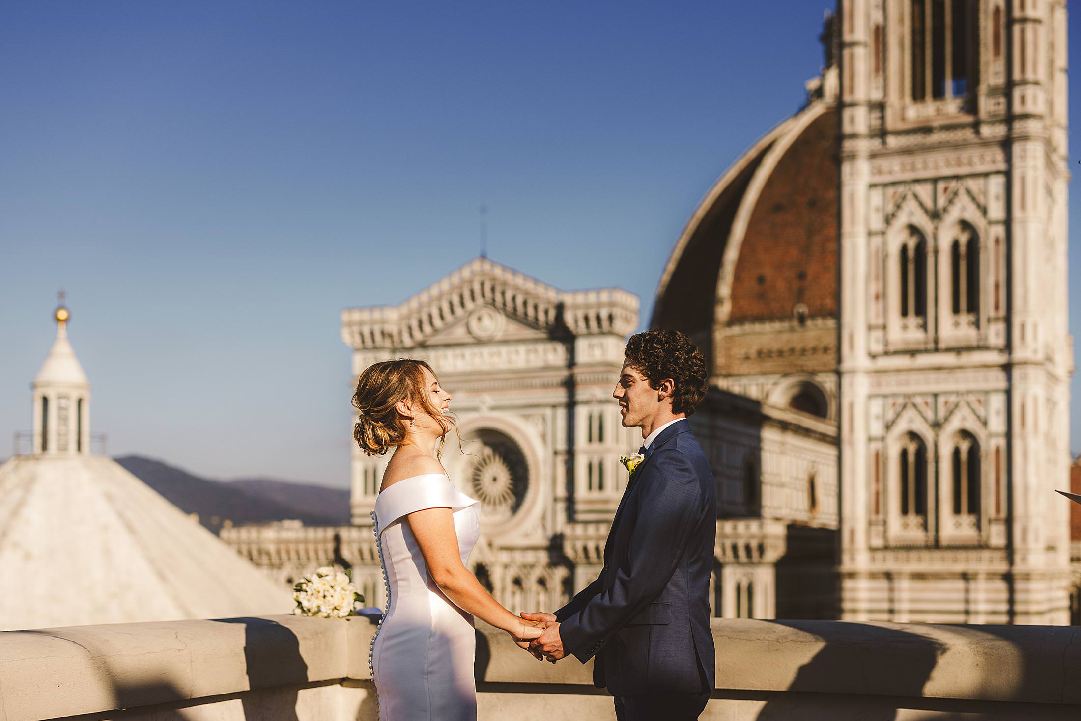 Elopement pictures with Duomo view in Florence. Photo by the Italian elegant and classic elopement photographer in Florence Gabriele Fani