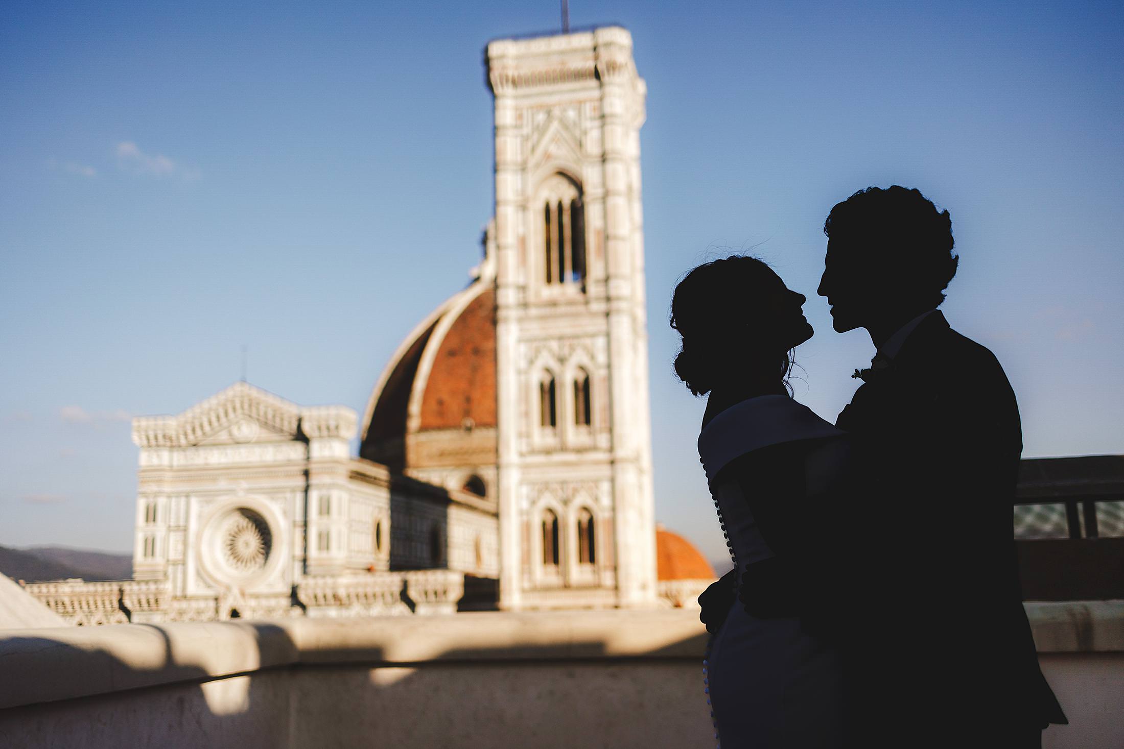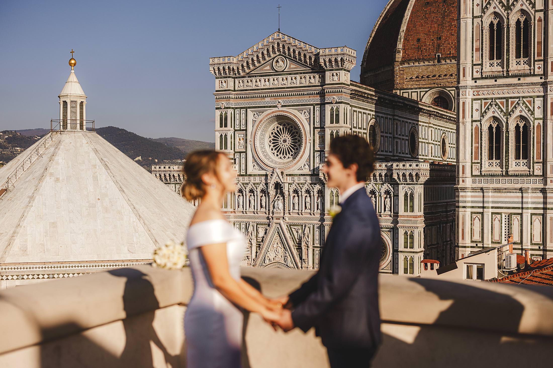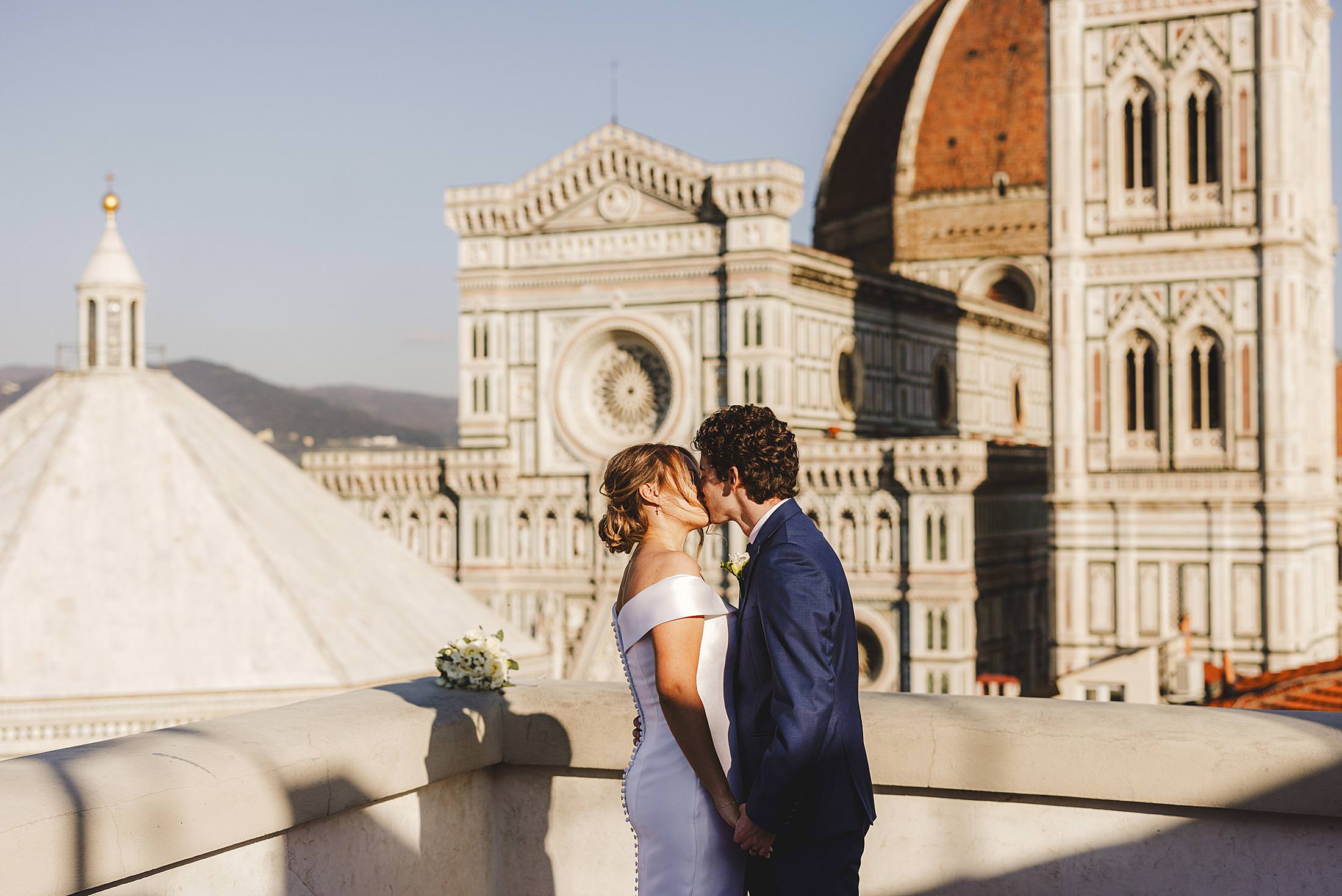 Breathtaking elopement pictures with Duomo view in Florence. Photo by the Italian elegant elopement photographer in Florence Gabriele Fani