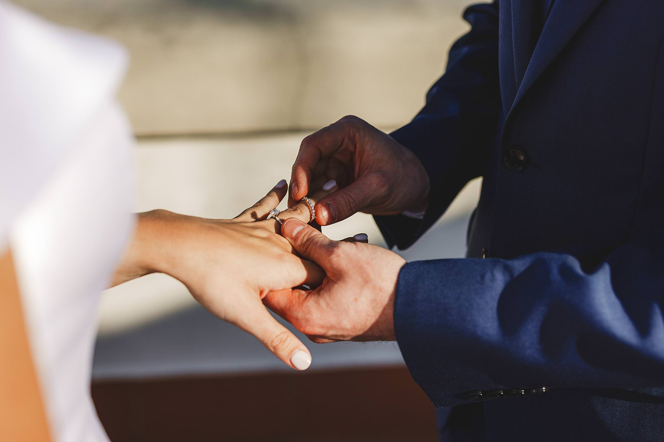 When the moment arrived, right after a sweet first look, Paige and Nicholas stepped onto the terrace, nestled among the historic buildings of the city center. The symbolic ceremony was simple yet emotional, and even more stunning thanks to the grandeur of the Duomo watching over them.
