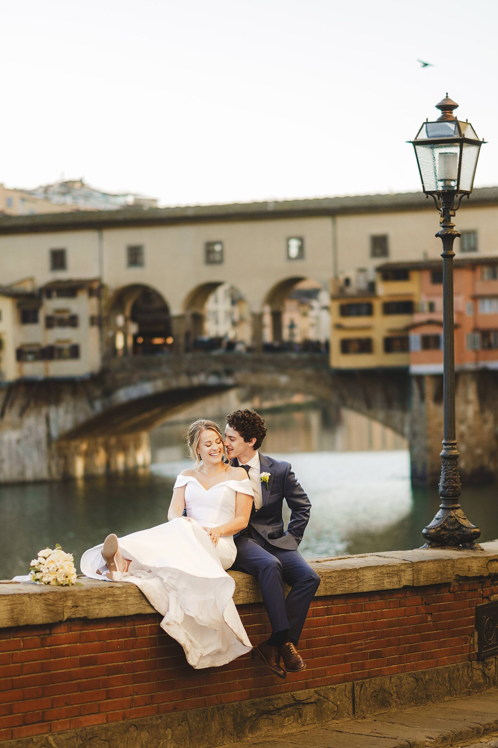 Best location for elopement pictures in the center of Florence near Ponte Vecchio. Photo by the Italian elegant elopement photographer in Florence Gabriele Fani