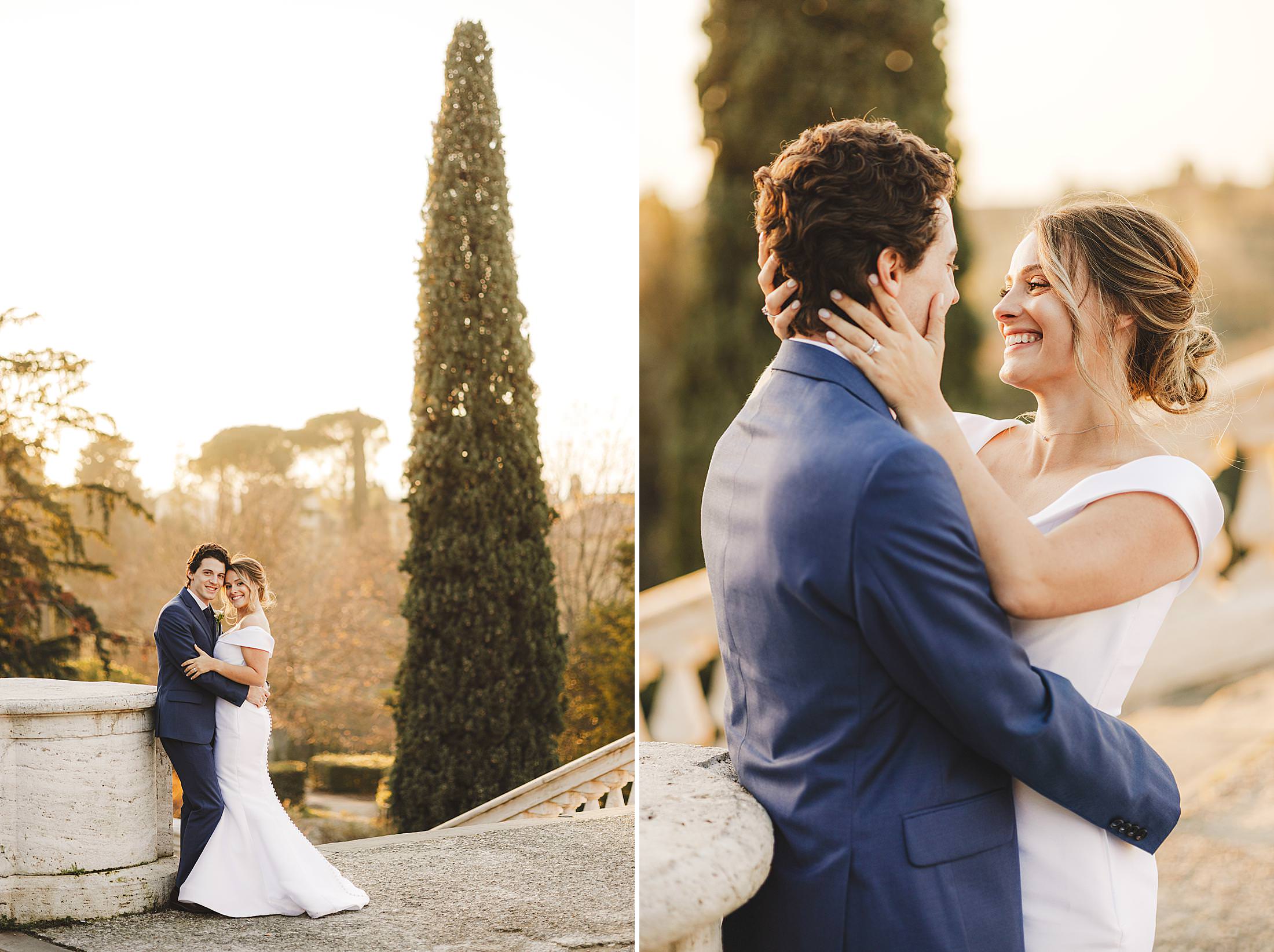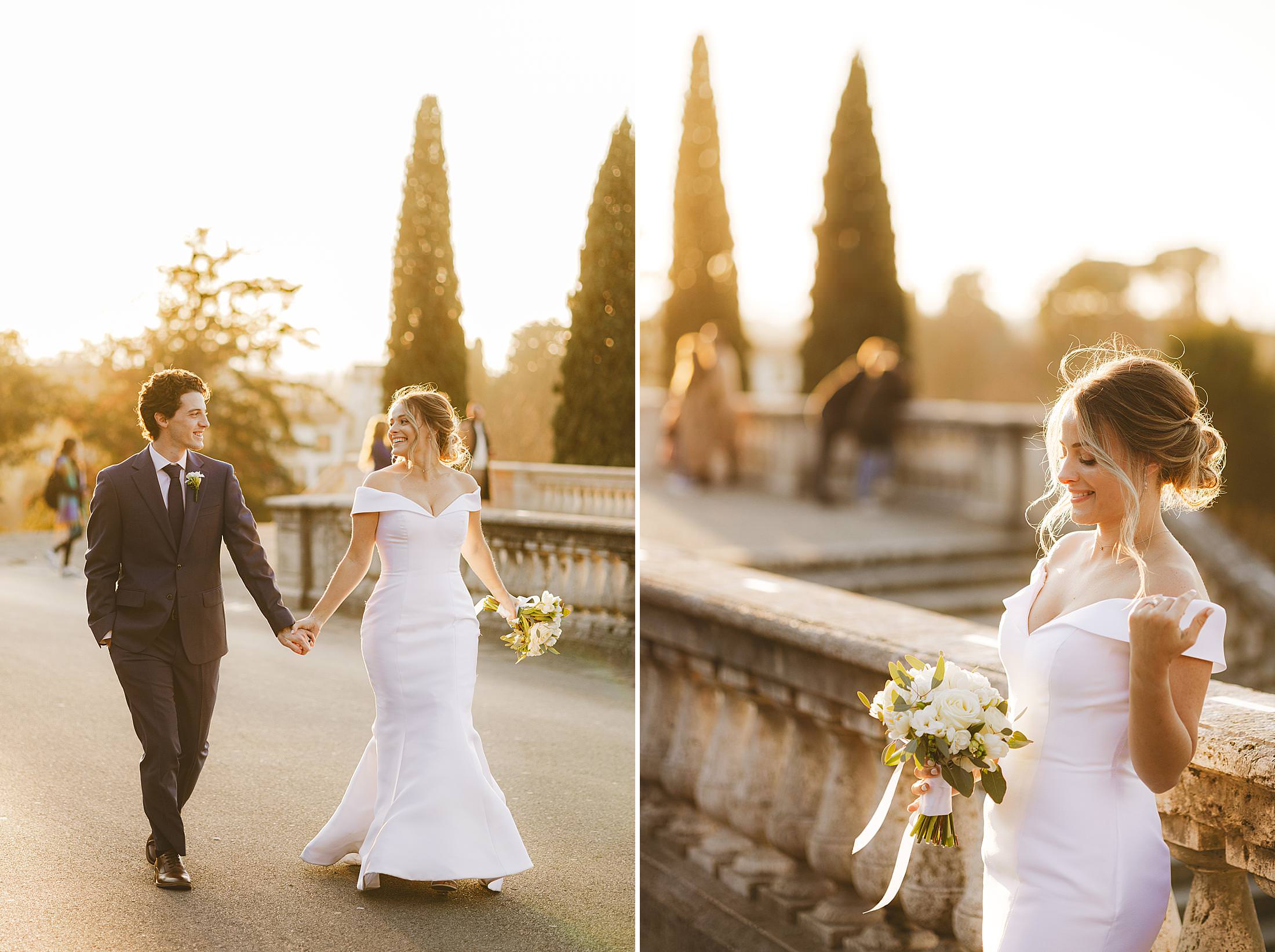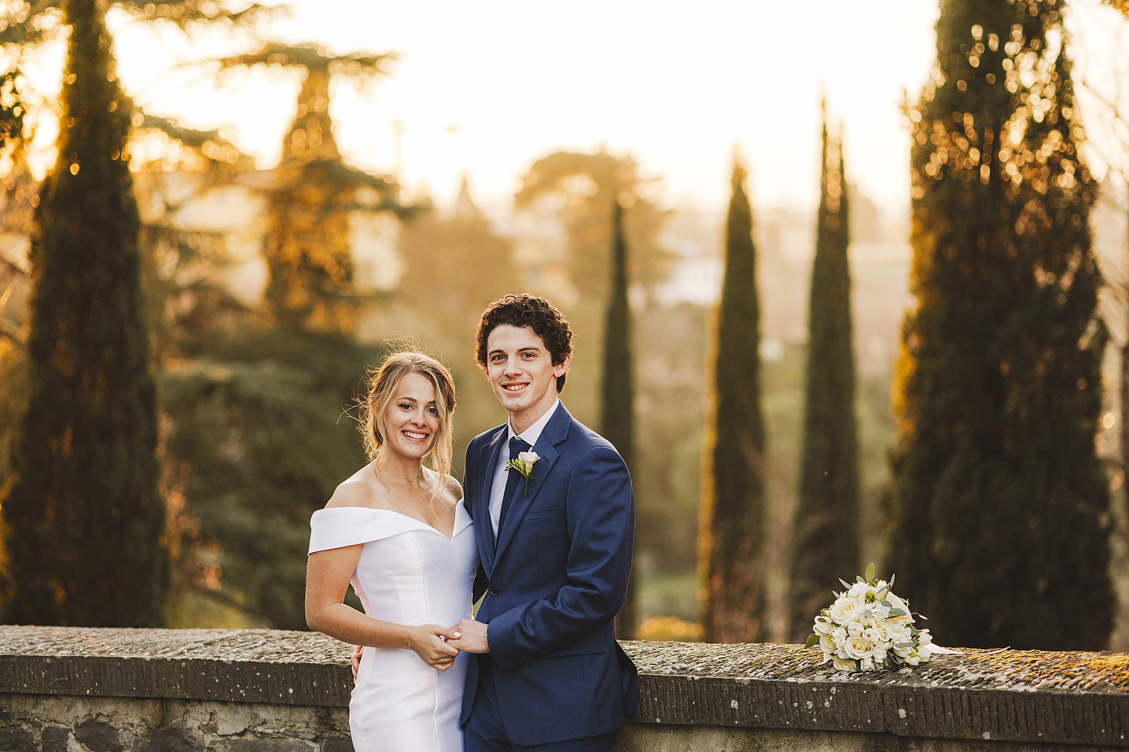 Golden hour elopement wedding photo in Florence panoramic location. Photo by the Italian elegant elopement photographer in Florence Gabriele Fani