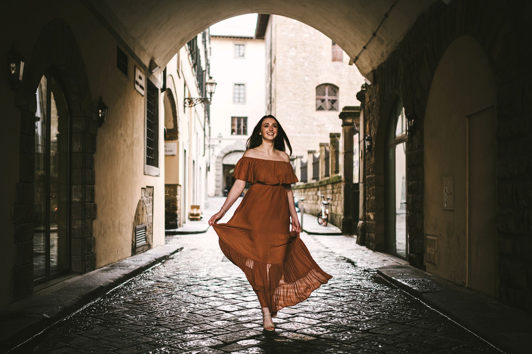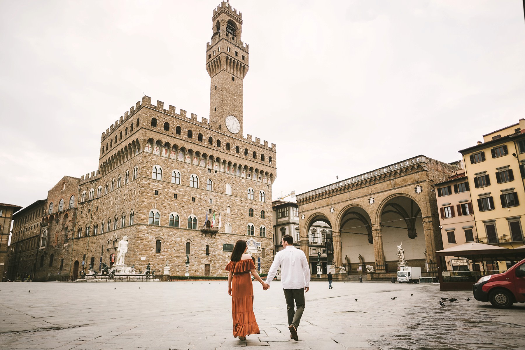 Take a walk tour in the heart of Florence at sunrise time. Anyone will be around you and the photo shoot experience will be awesome and unforgettable. Photo by the Italian creative, elegant and modern photographer in Tuscany based Florence Gabriele Fani