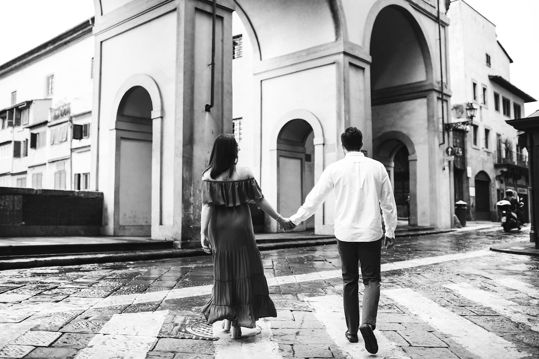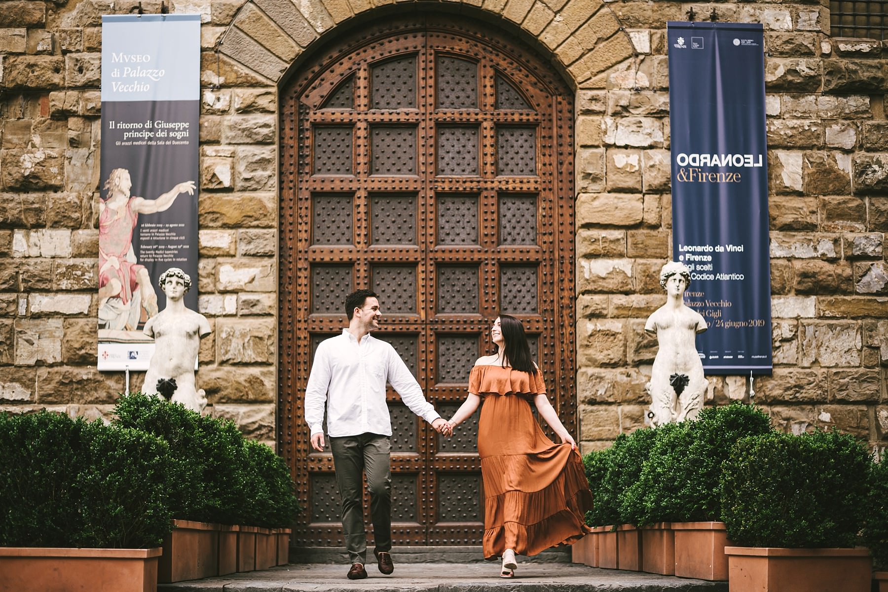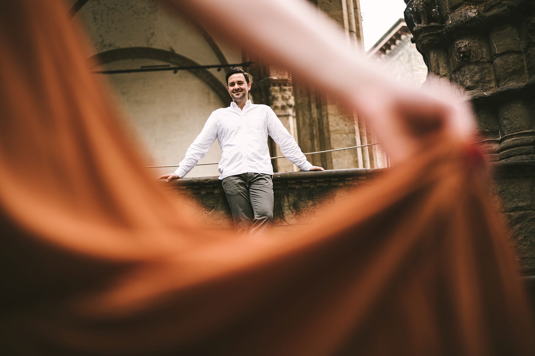 These two very nice and genuine fiancés enjoyed every second of their 3-hours prewedding shooting around the city. They could show their love to one another without worrying about other people watching: Florence at sunrise is extremely quiet – in fact, that’s the best time of the day if you want to have it all to yourself.