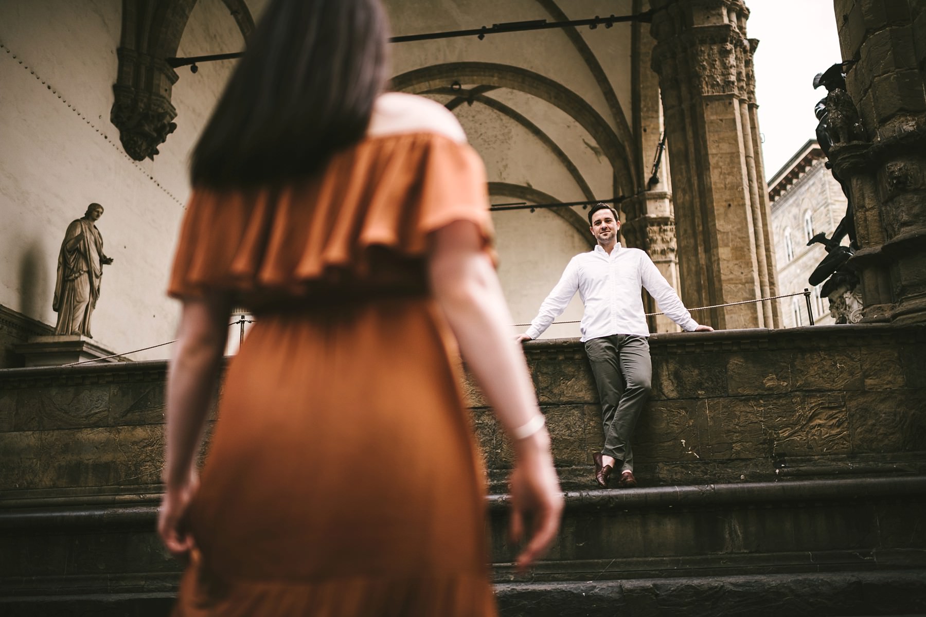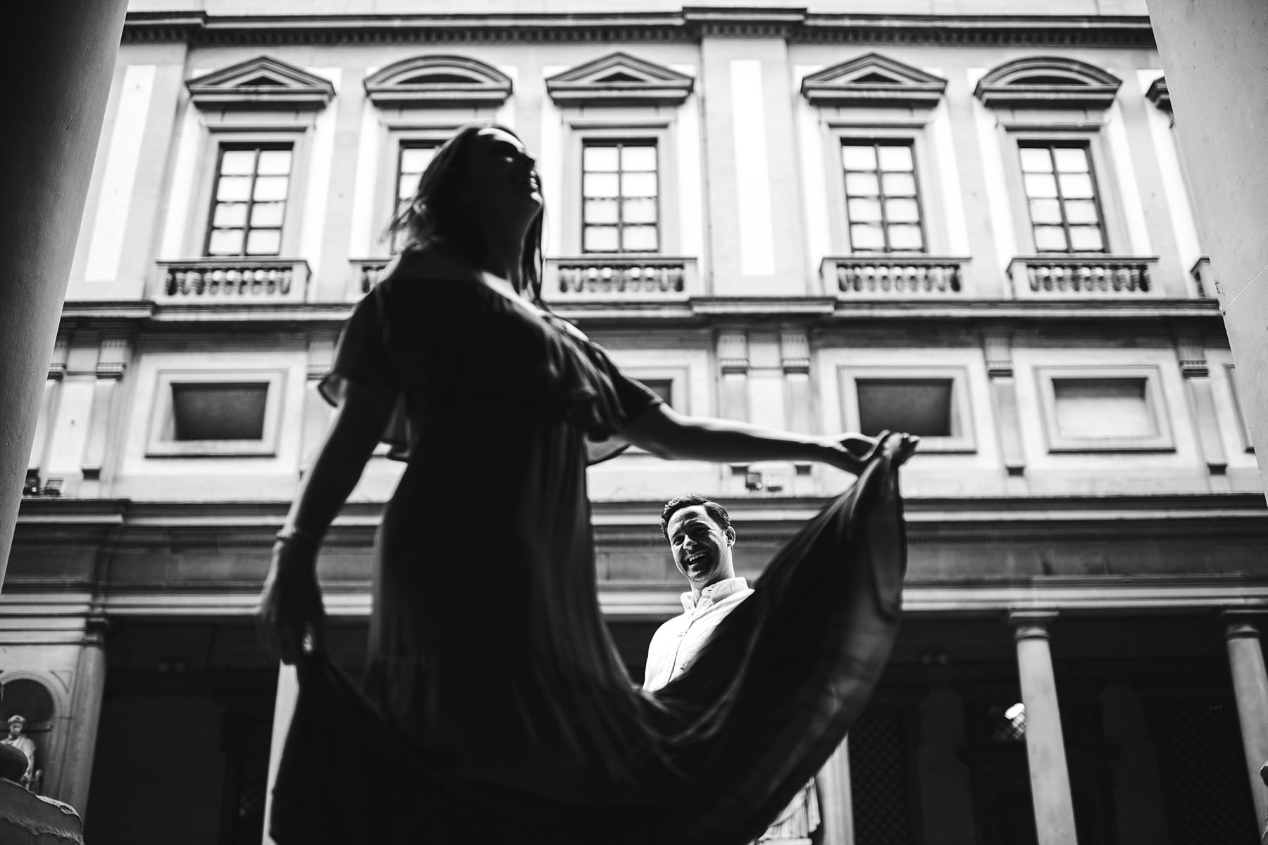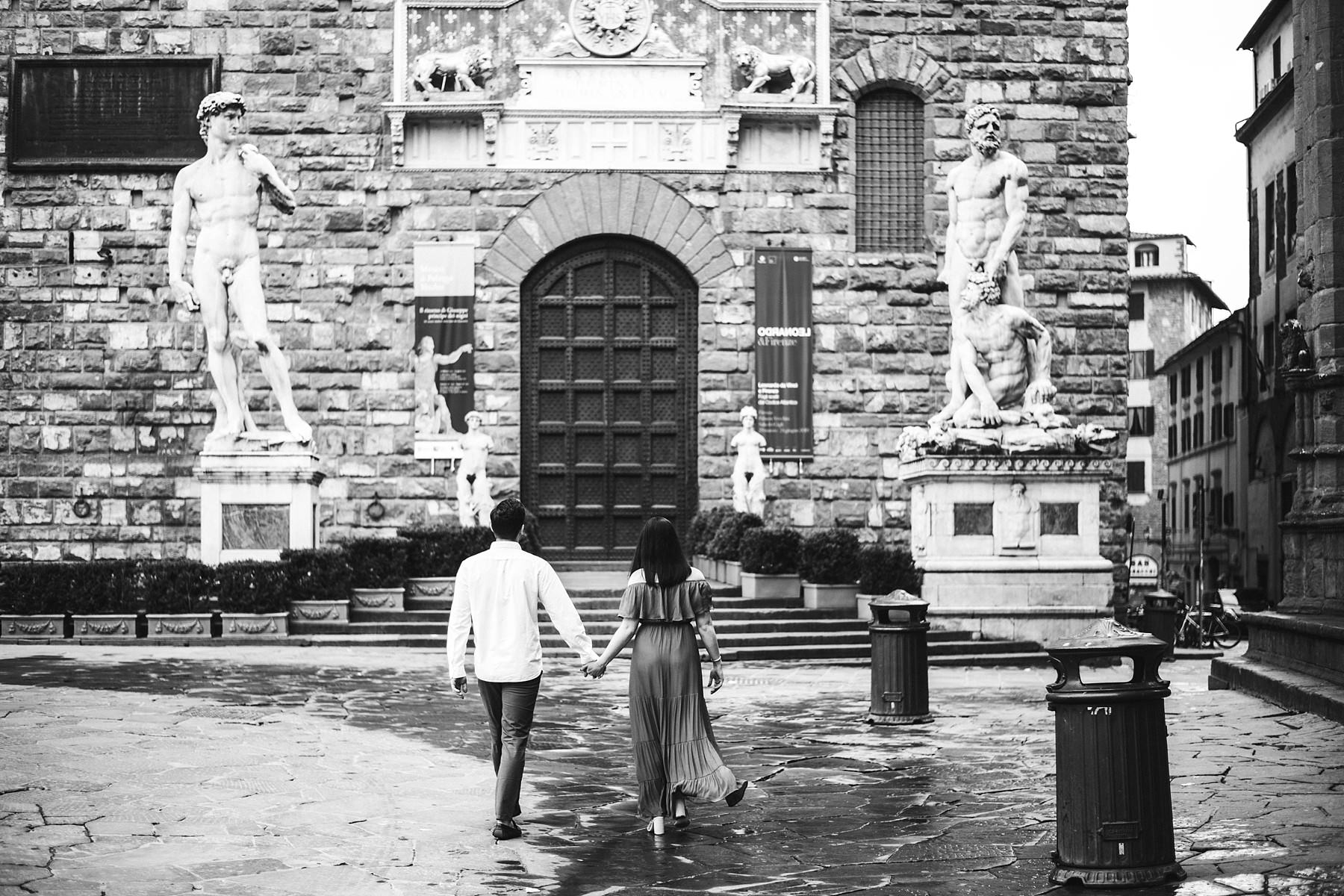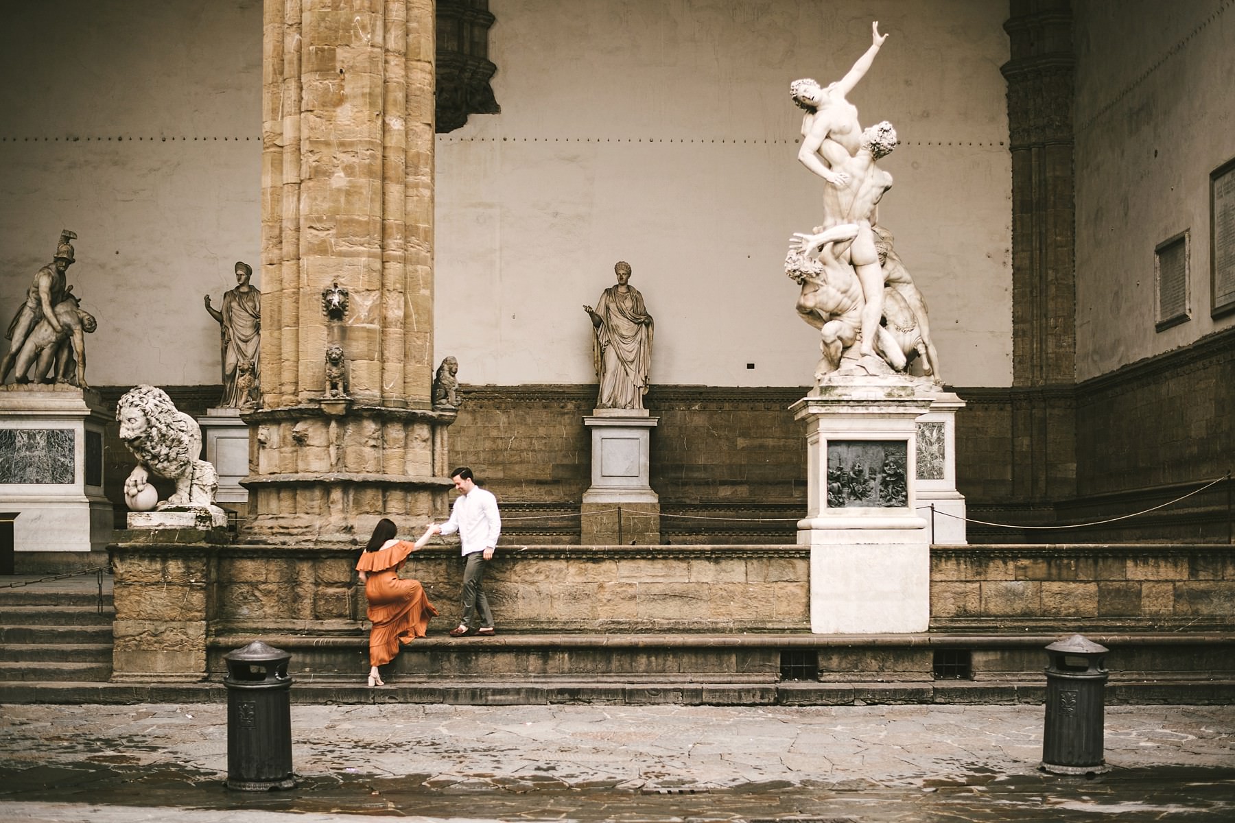 These two very nice and genuine fiancés enjoyed every second of their 3-hours prewedding shooting around the city. They could show their love to one another without worrying about other people watching: Florence at sunrise is extremely quiet – in fact, that’s the best time of the day if you want to have it all to yourself.