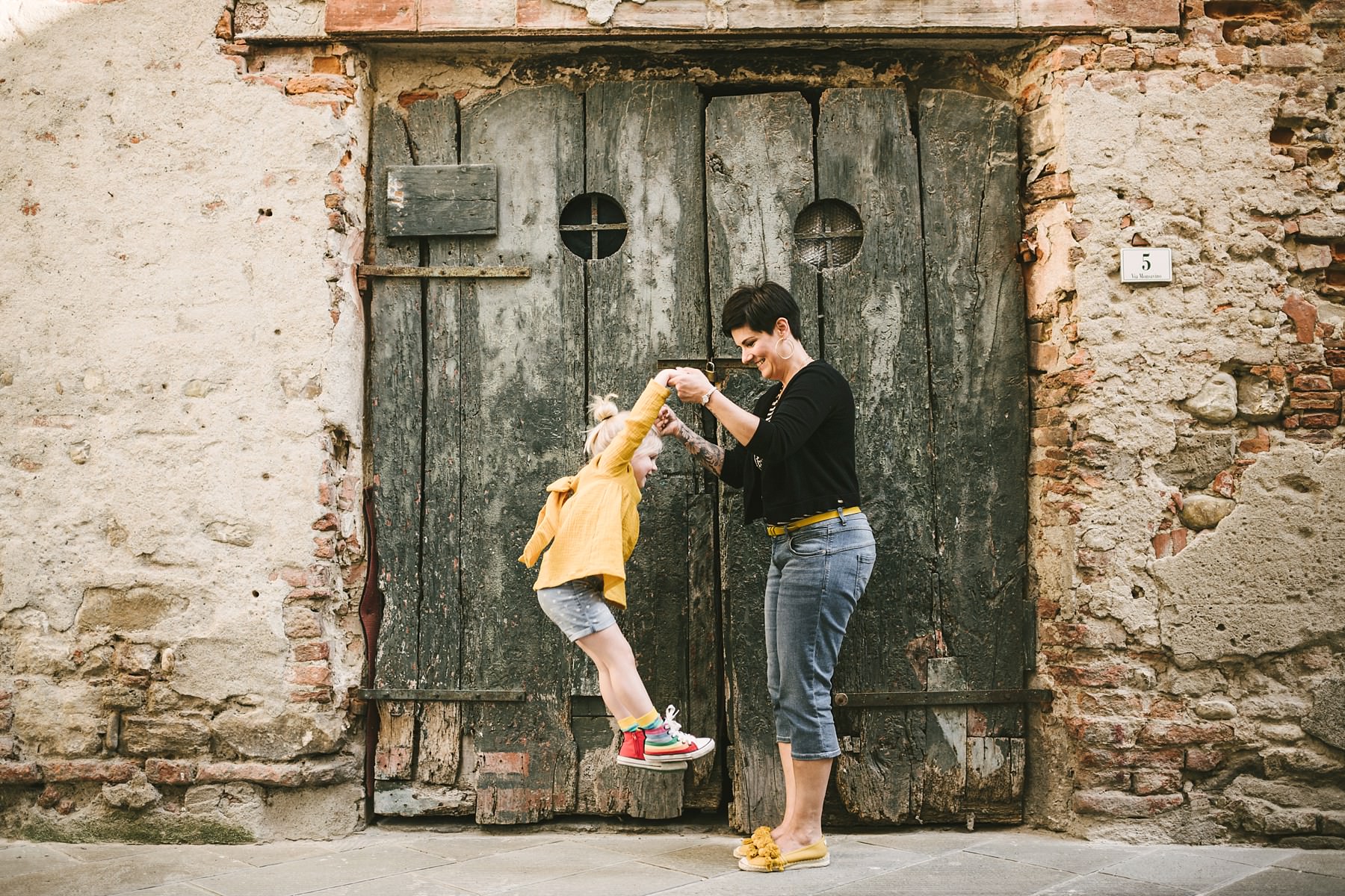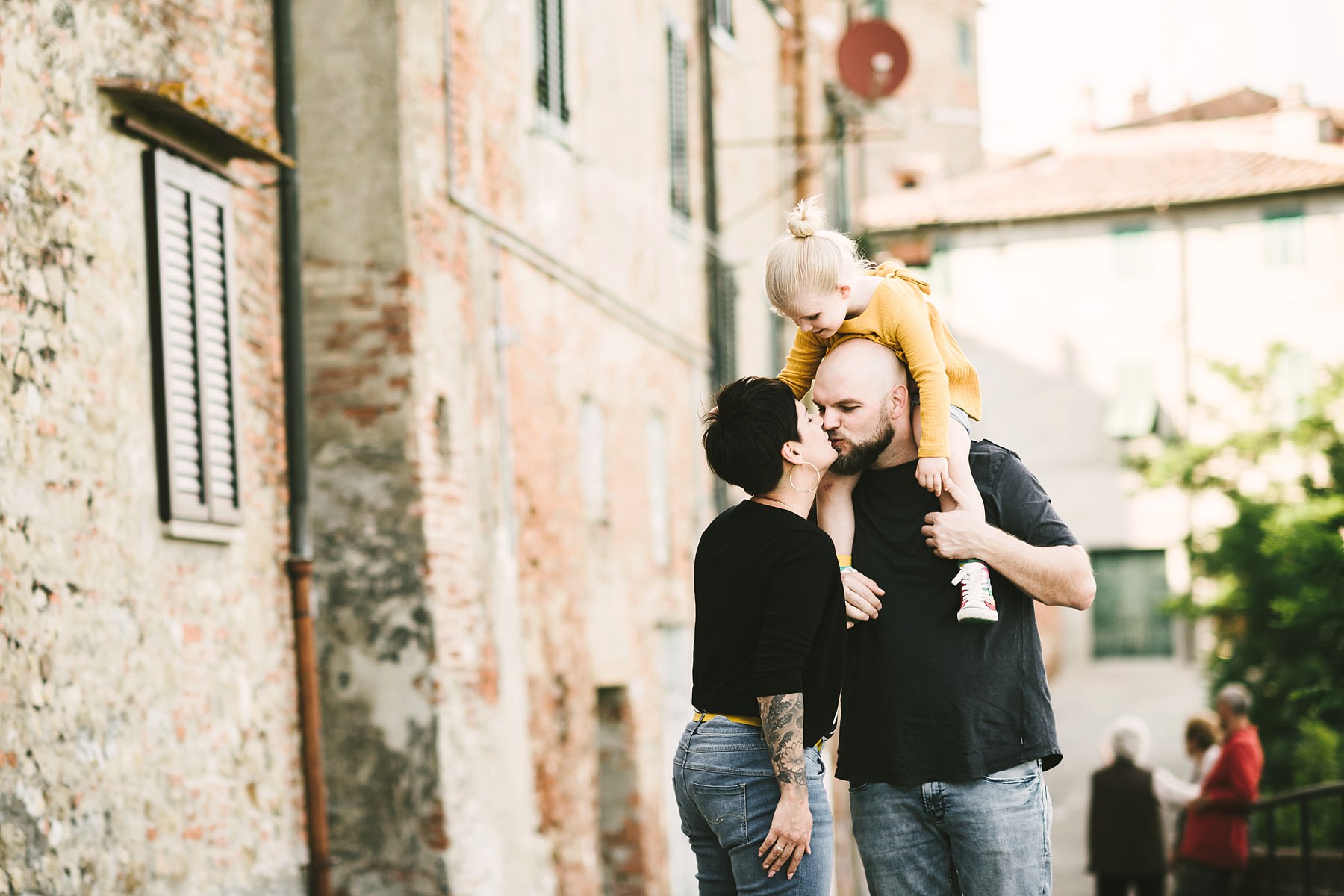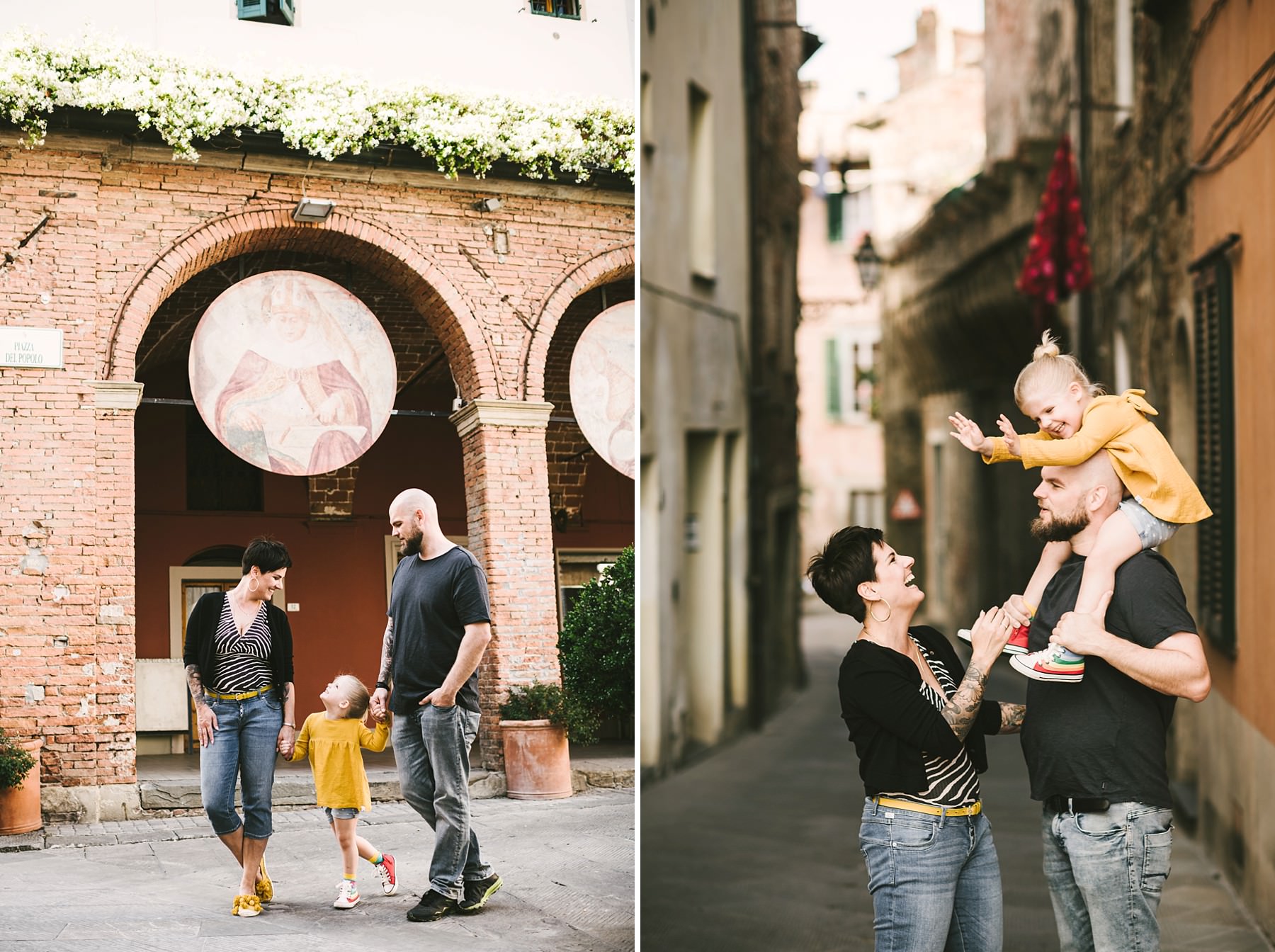 Sweet and funny family holidays photos in the historical town of Peccioli in Tuscany. Photo by the Italian creative and modern family photographer in Tuscany based Florence Gabriele Fani