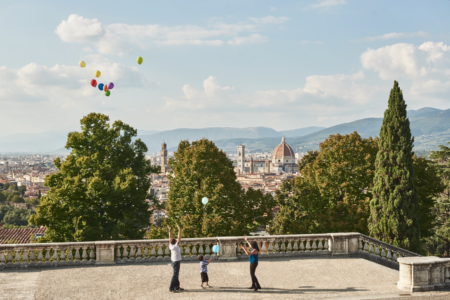 Amisha & Adam’s Family excited photo shoot in Florence with colour balloons