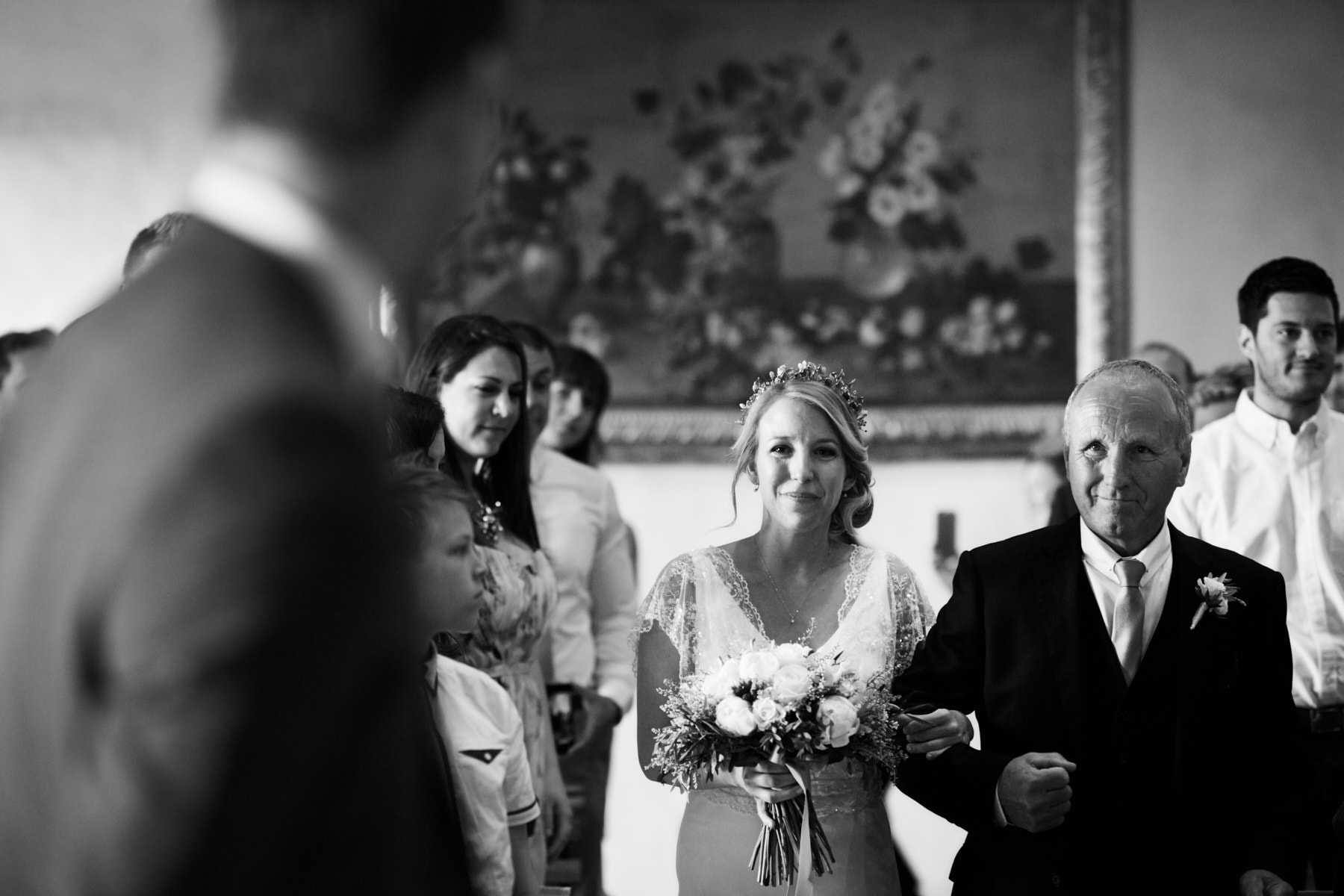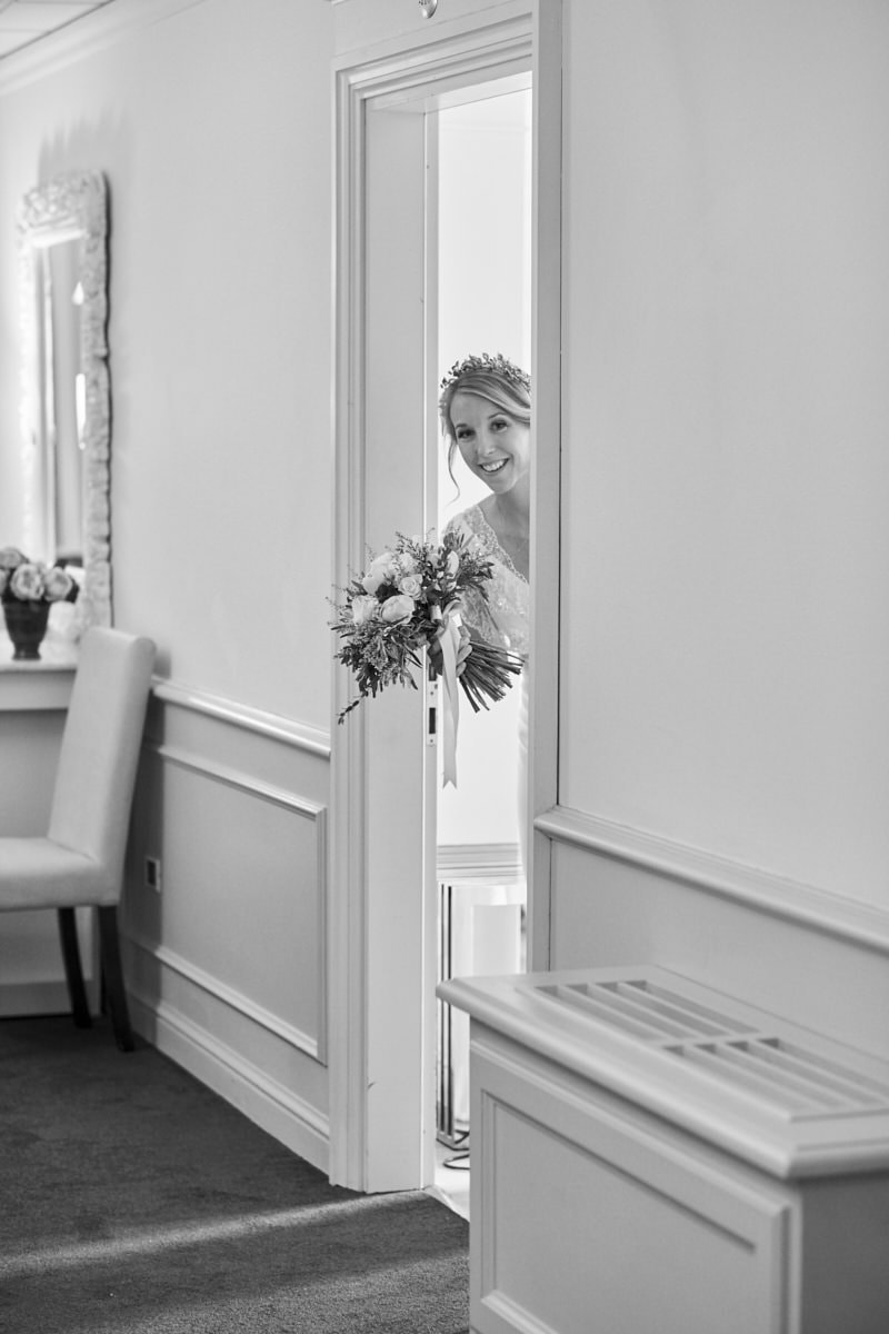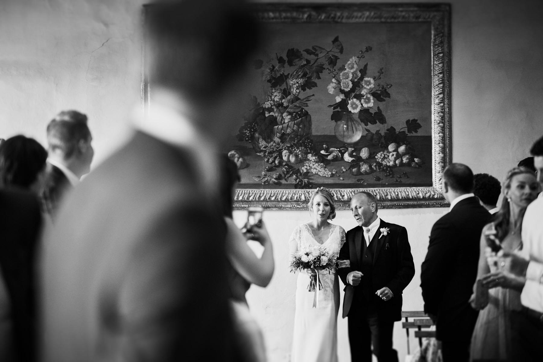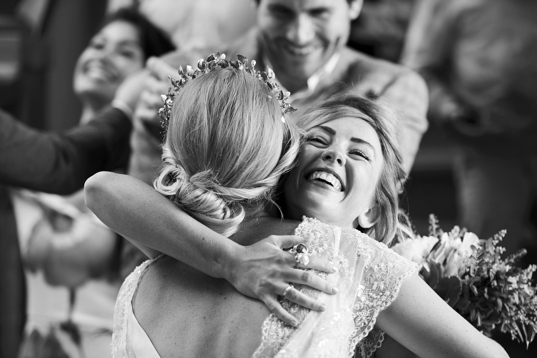 A lovely old vintage wedding car Fiat 500 driven carefully by Hayle’s father, was organised to transfer the bride from the getting ready venue to the ceremony. When we arrived I really enjoyed a very important moment which I’ve taken with my cameras. Smiling bridesmaids waiting us at the entrance of the villa while Hayley got out of the car.