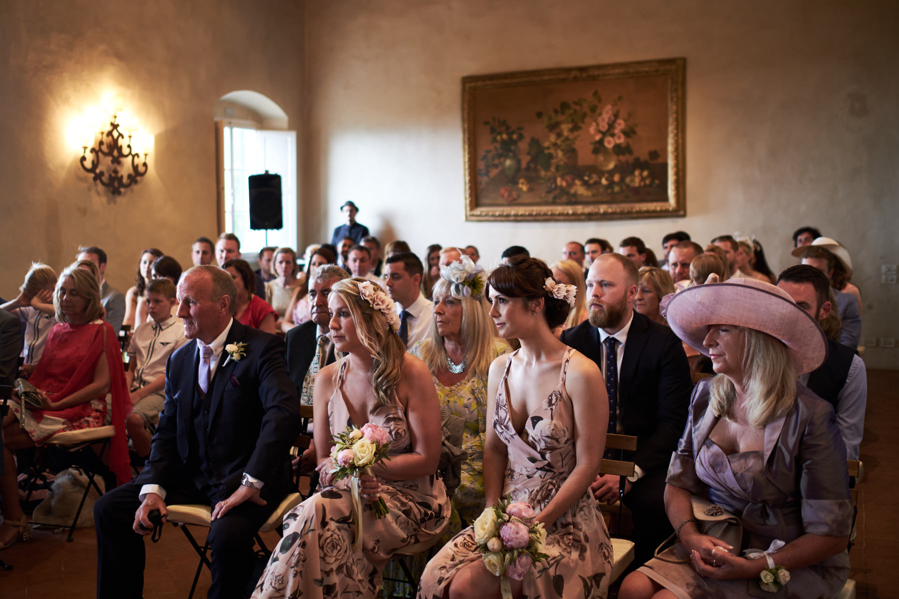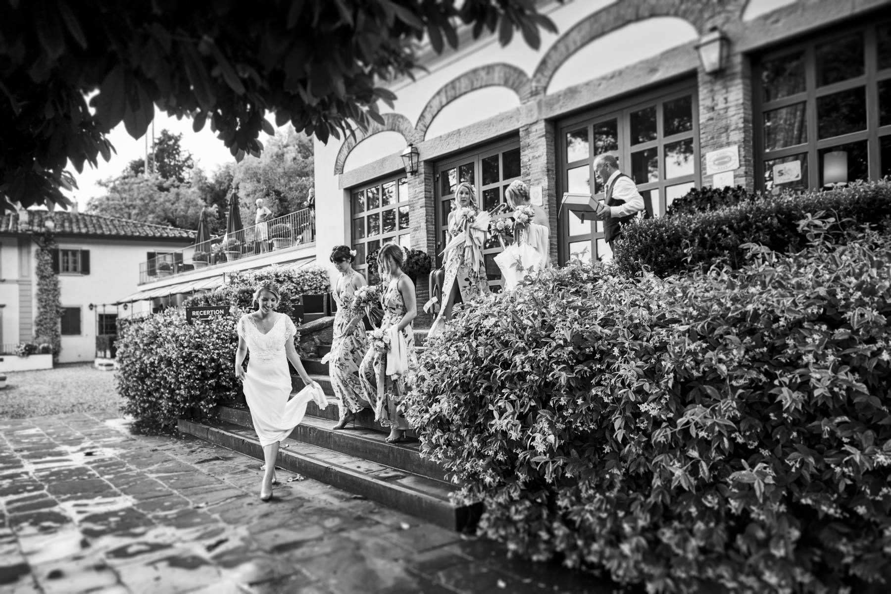 For the getting ready the bride stay with bridesmaids at Hotel Villa Fiesole a perfect location 10 minutes far away from the wedding venues in Fiesole. As usual I start the service with bride accessories and I loved the beautiful work by the talented flower designer Jardin Divers which has prepared bridal bouquet, bracelets, boutonniere and all other flowers for this beautiful event. After some shots with elegant country chic wedding invitations and flowers I focus my work on bride and her bridesmaids just before to leave the Hotel Villa Fiesole for Montefiano where Kevin was waiting with parents and guests the bride.