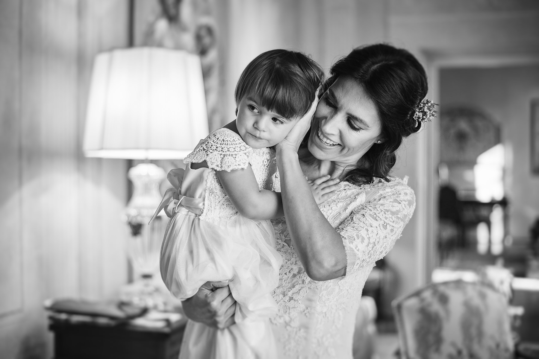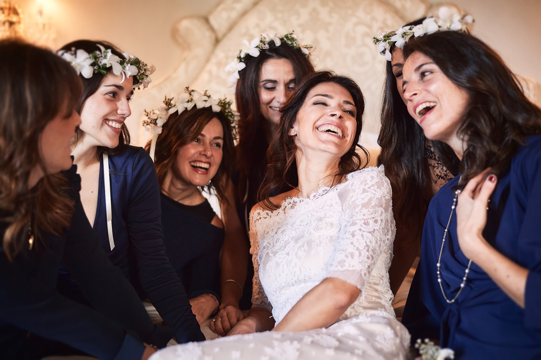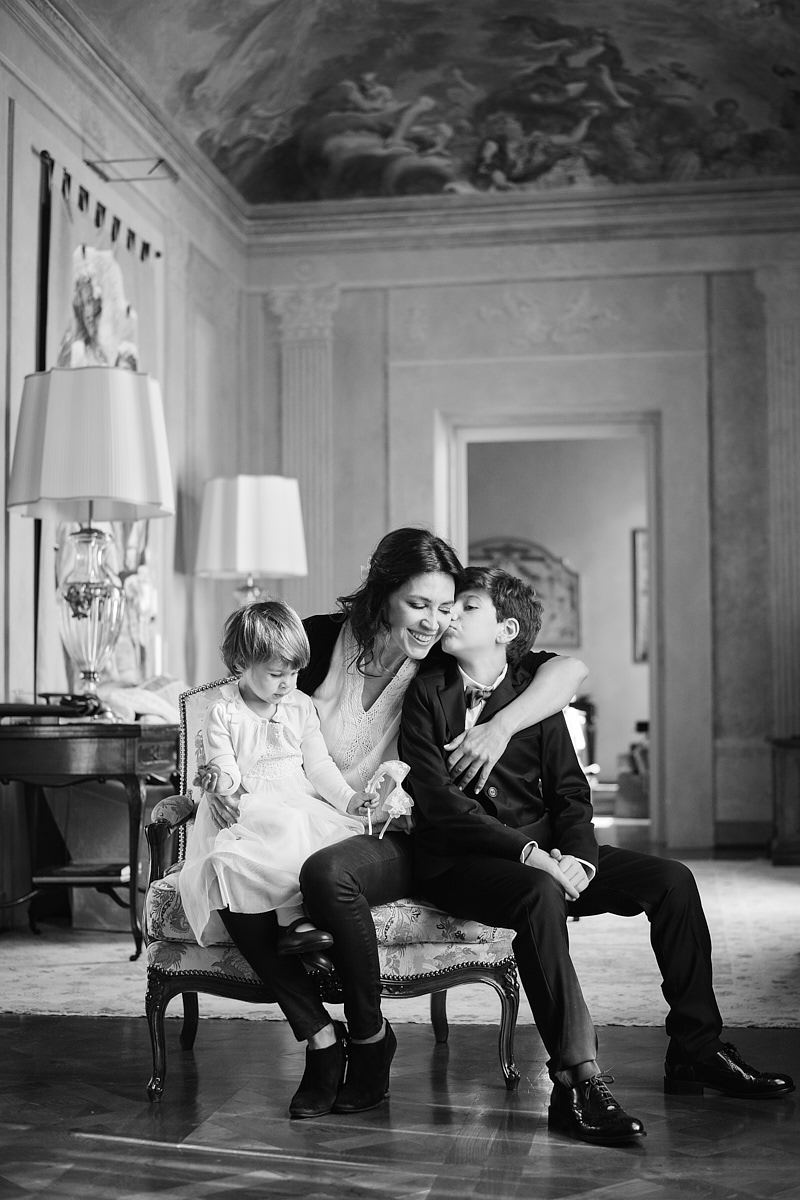 The classiest bride, Viviana got all dolled up in the Presidential Suite at “La Villa” building for her wedding whilst the bridesmaids surrounded her. The heartily giggles, the merriment and the contentment on bride’s face; everything was duly captured by my lens. Viviana was in the company of her adorable son and daughter, Manuel and Angelica, who watched their gorgeous mother get ready in the bridegroom. It was no less than a privilege to be able to click some candid shots capturing the sharing of heart melting moments and love between the young mother and kids. With her hairs adorned with beautiful white flowers by talented flower designer Vincenzo Dascanio, and flashing her brightest smile, the bride beamed with a glow on her face.