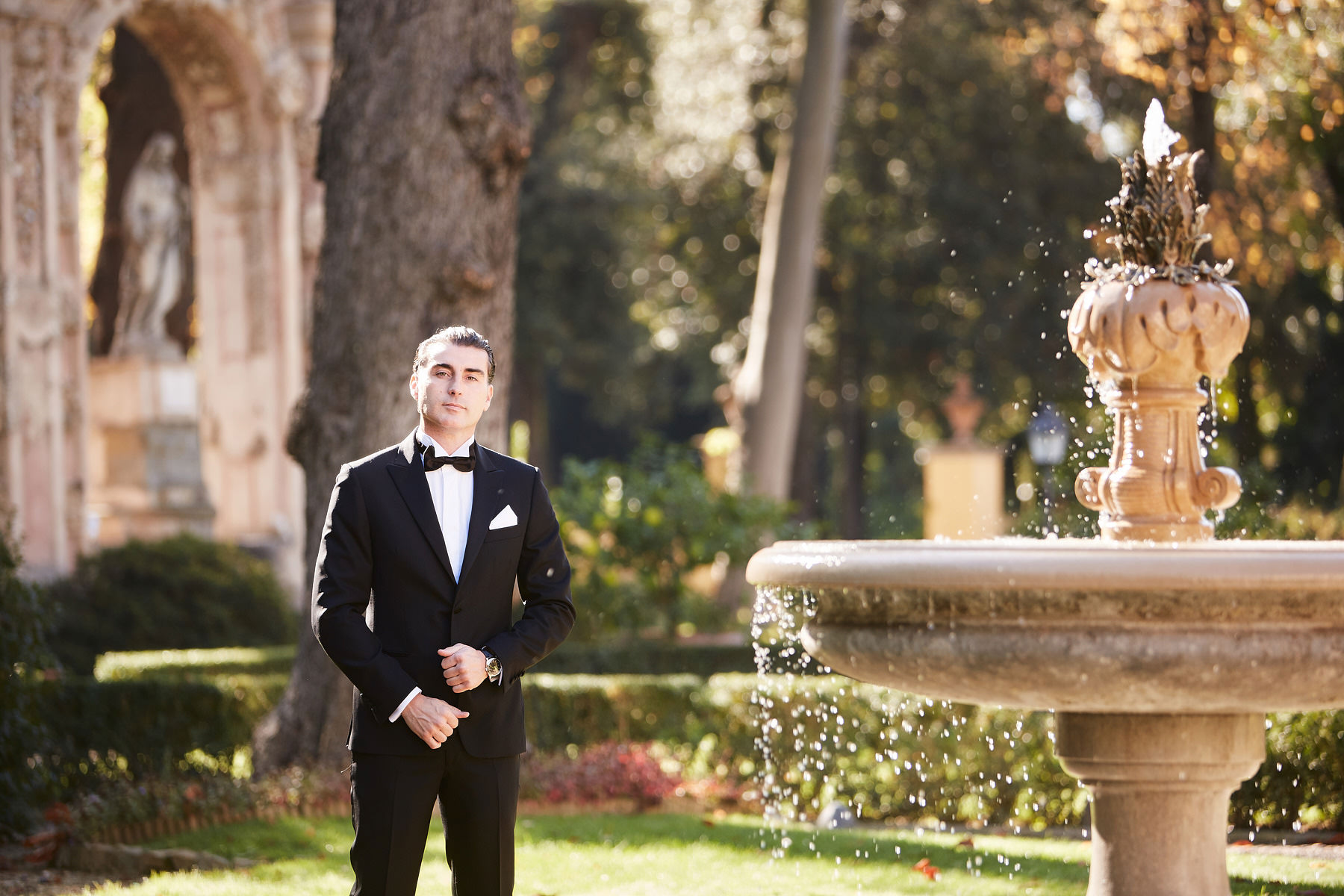 Proving to be a perfect fit for bride, the wedding gown by “Atelier Maria Pia Grasso” looked stunningly beautiful and classy. Dressed in white, she looked no less than a mesmerising fairy out of a fairytale book. The groom Sergio looked no less and appeared strikingly handsome in “Lanificio Cerruti” tuxedo.