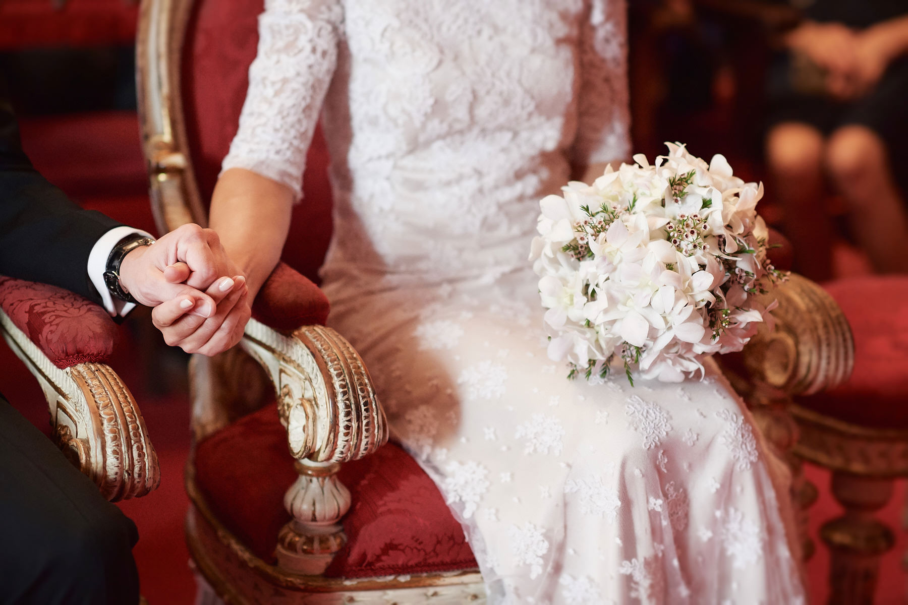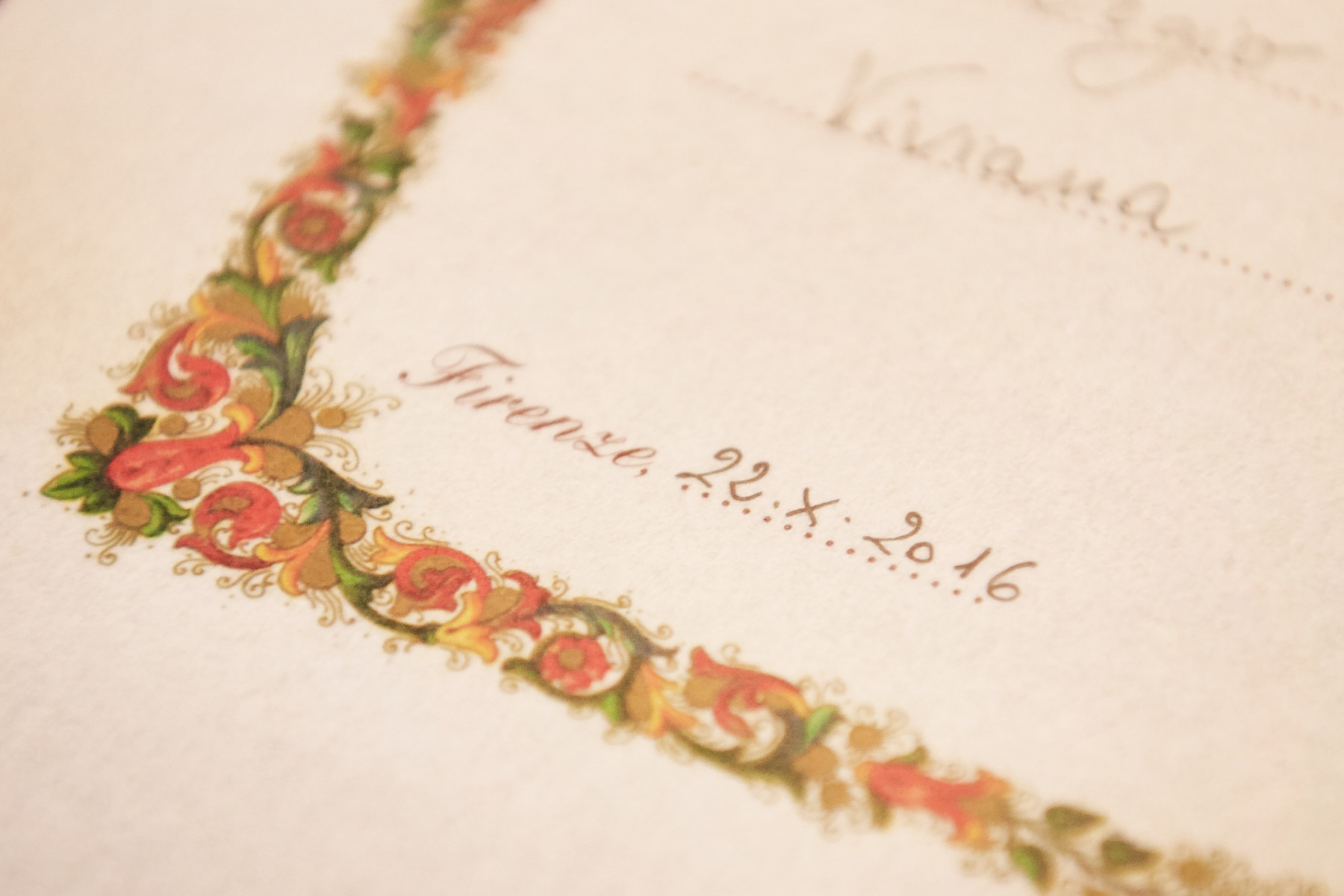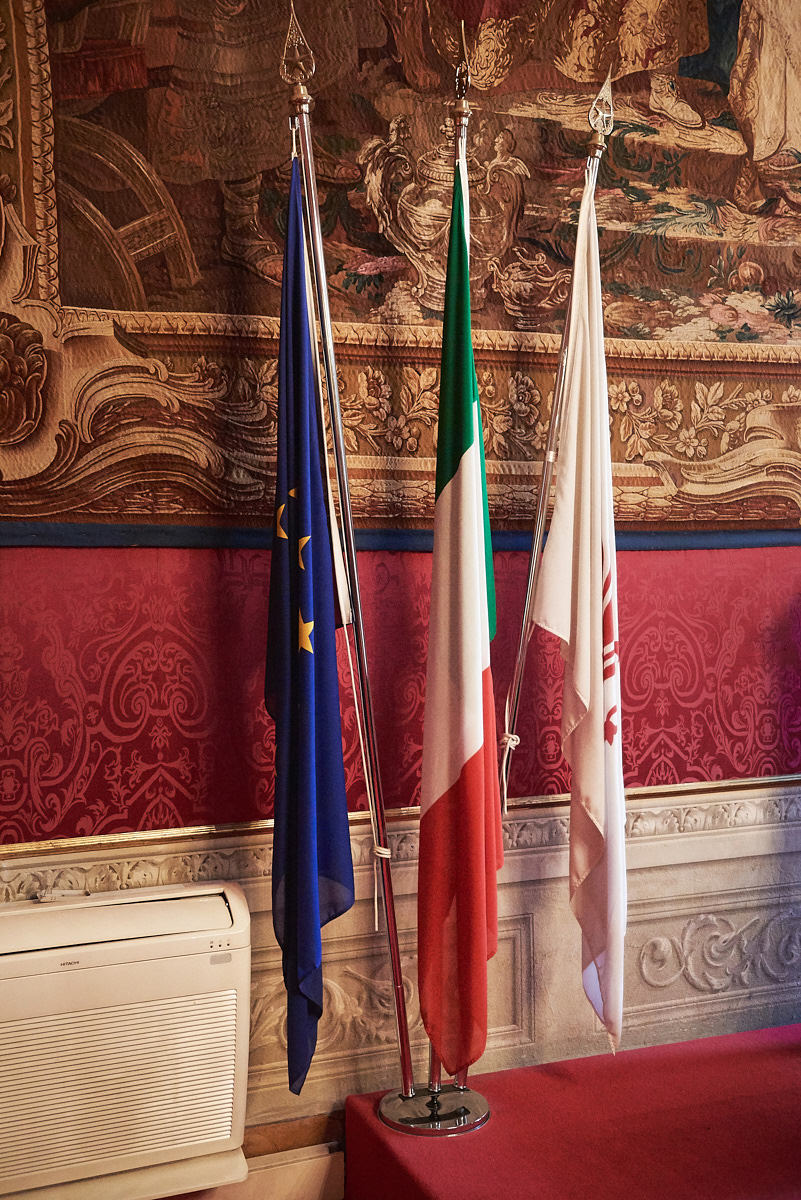 Getting Ready Venue: Hotel Four Seasons Florence | Flower designer by: Vincenzo Dascanio | Bridal Dress: Maria PIA G. Atelier | Groom’s suit: Lanificio Cerruti | Ceremony Venue: Palazzo Vecchio Sala Rossa