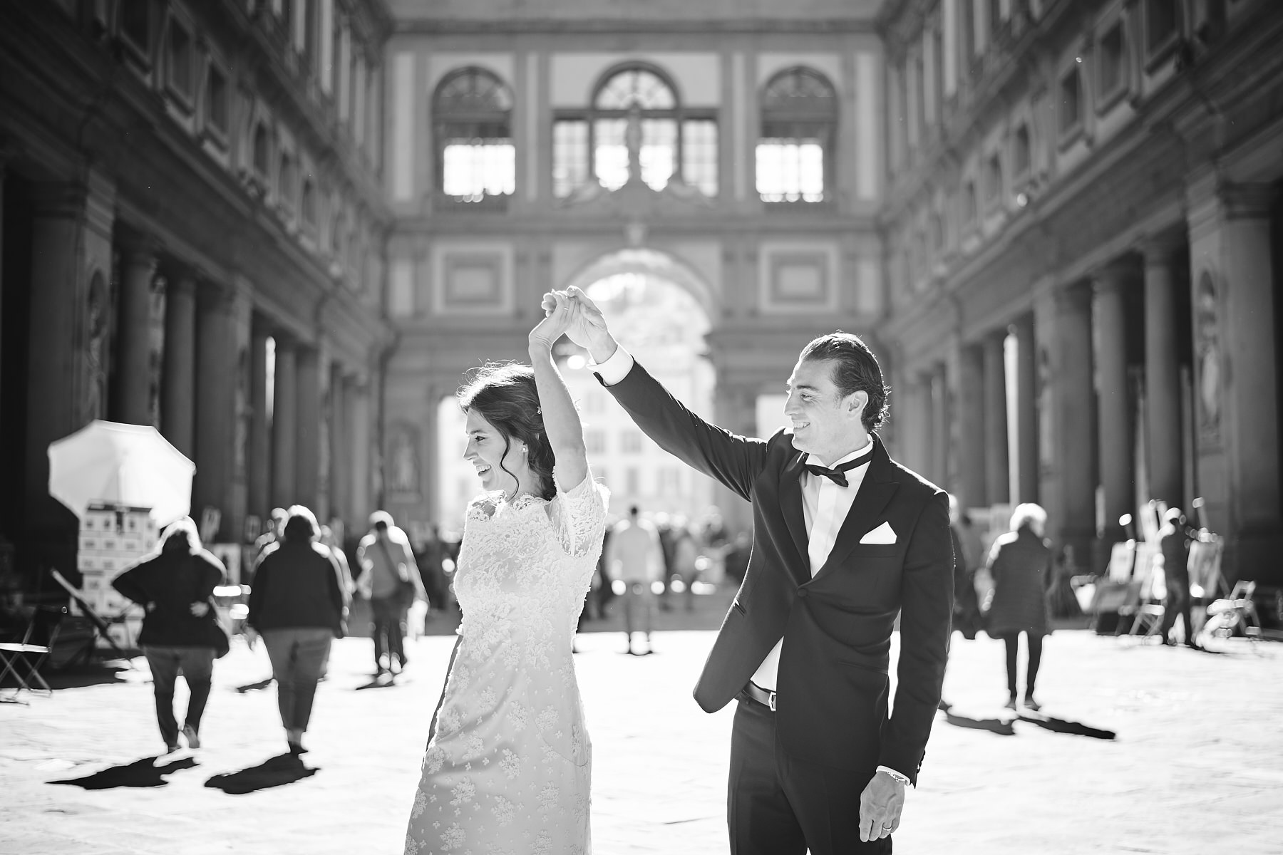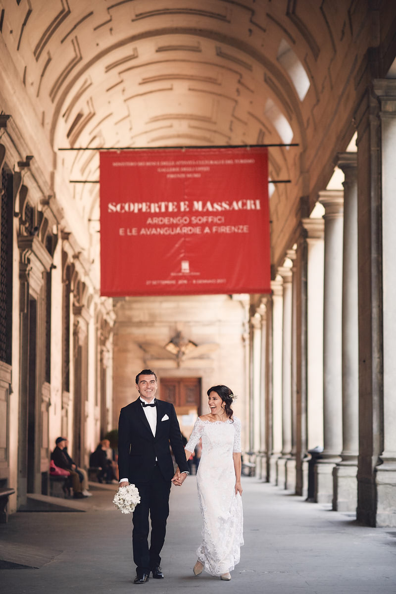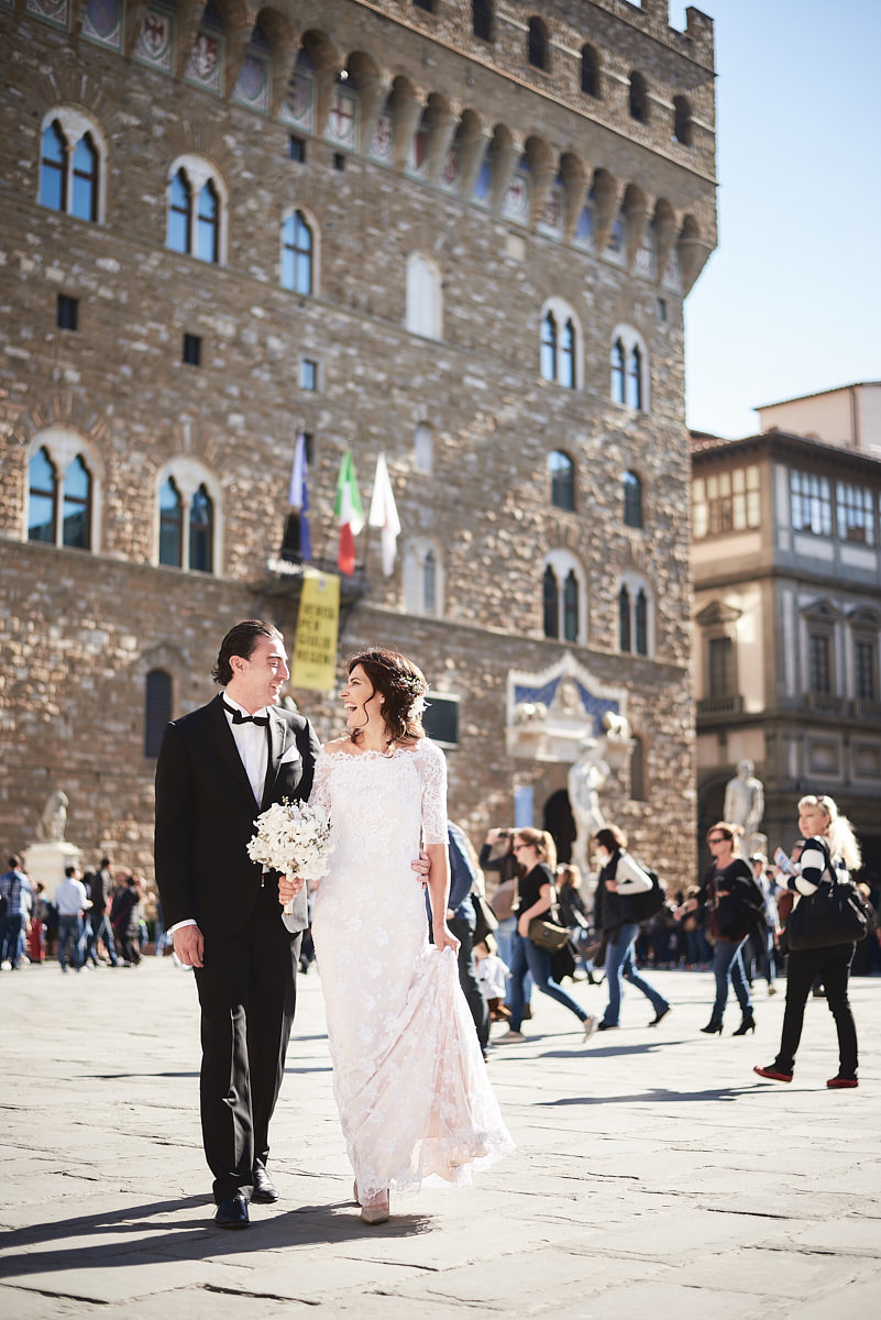 After the ceremony the Portrait pictures were taken right outside the Town Hall in Piazza della Signoria, Uffizi Area and Piazza San Firenze. The location was indeed perfect for planning a wedding in Florence in case you are going to engage in an intimate wedding like as this or an elopement. The wedding was breathtakingly perfect, and we wish all the luck to the gleaming couple! Here are some of my favourites of that day, please enjoy it!
