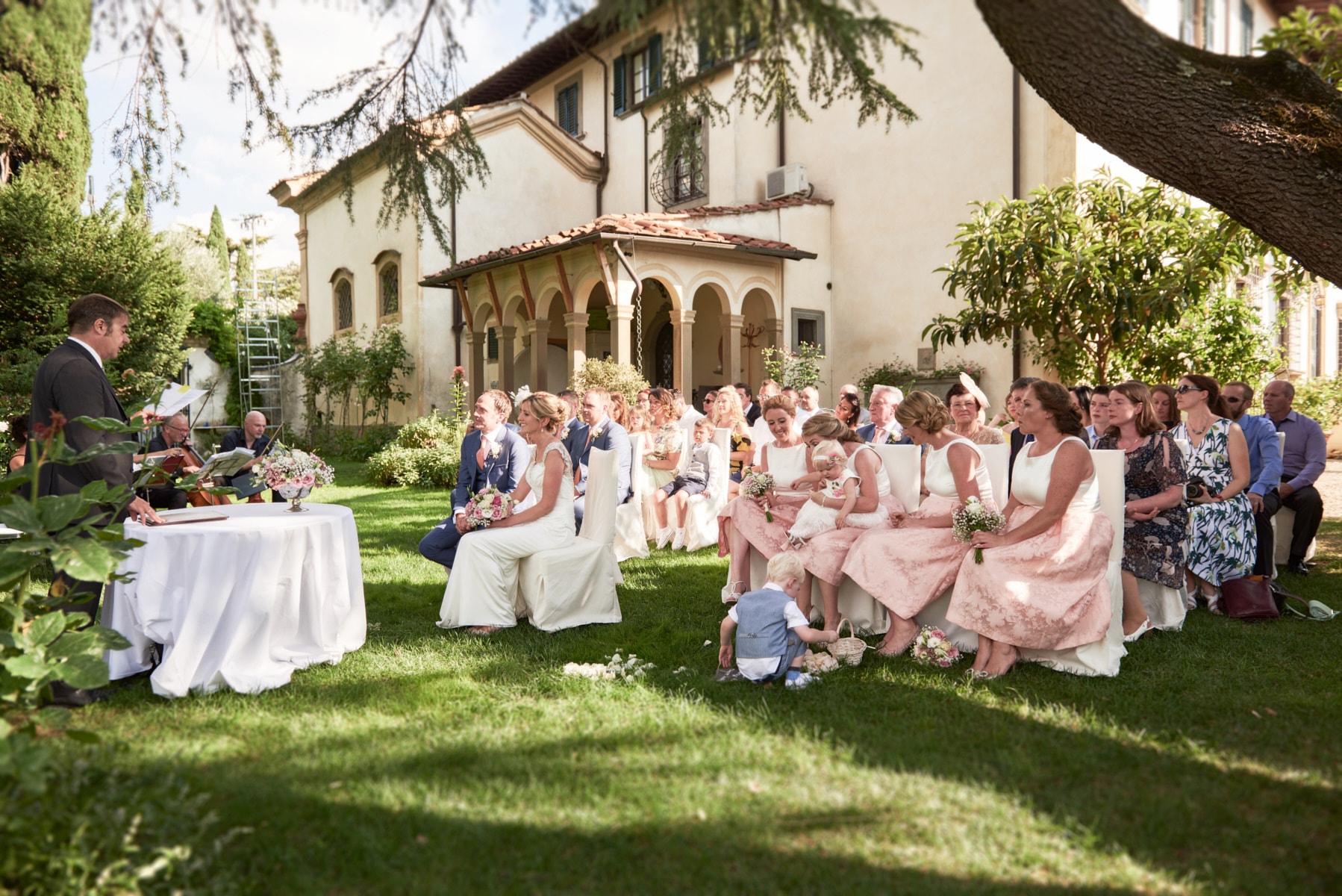 Elaine start their day at “La Terrazza” suite with bridesmaids for make up and hair and during that time I had the opportunity to shot some beautiful photo of bridal accessories, like invitation and the bridal bouquet made this time by Simone Bertini. After I walked down to the “Stella” room for get some snap of Matthew’s getting ready. Then back to Elaine for the final touches and portraits just before her walk down the aisle in the garden near the entrance of the villa.