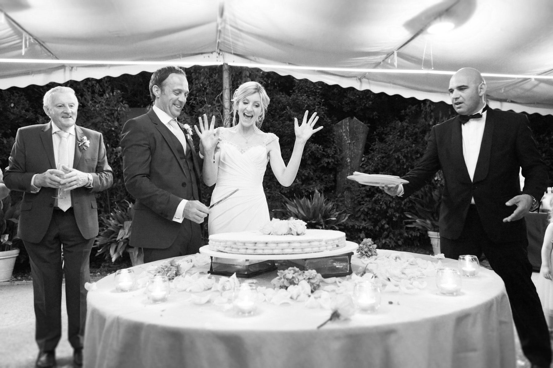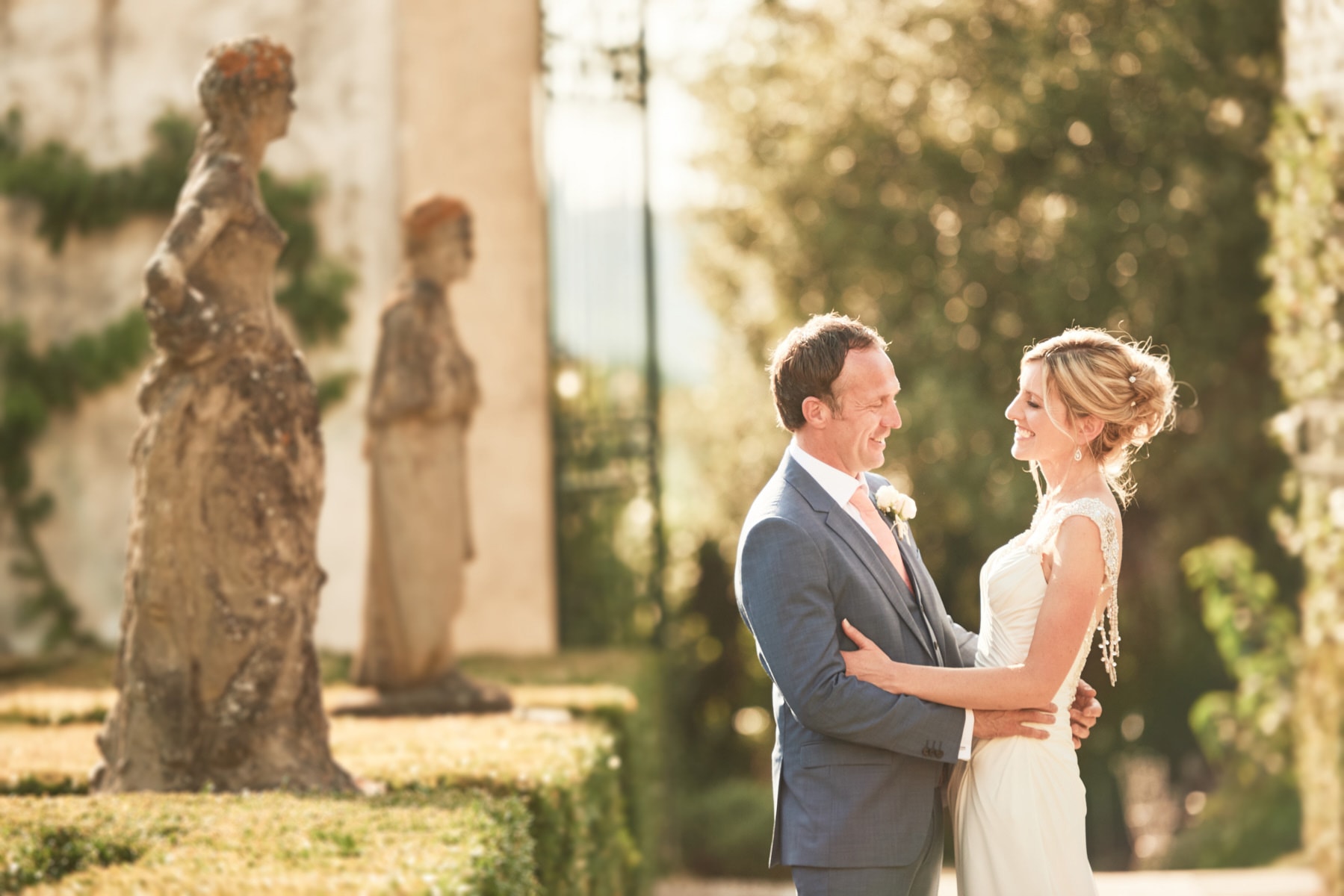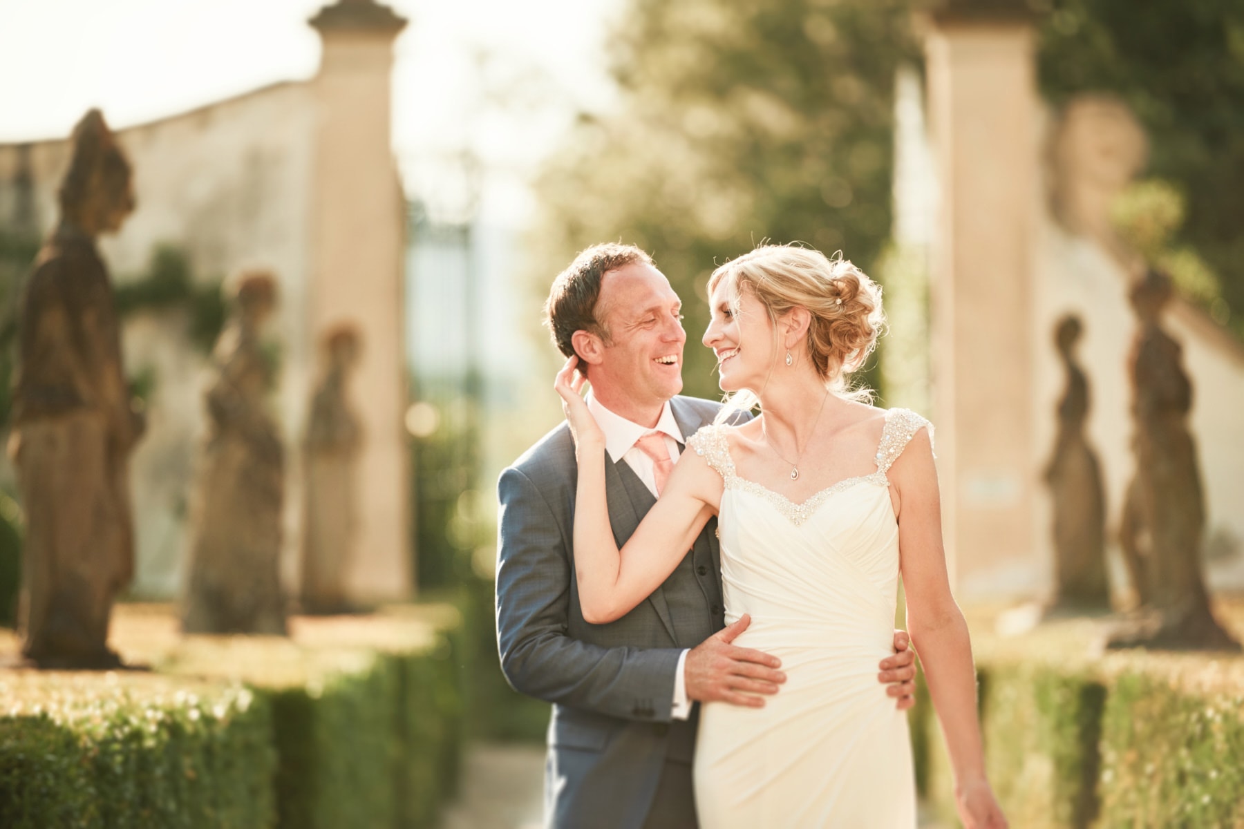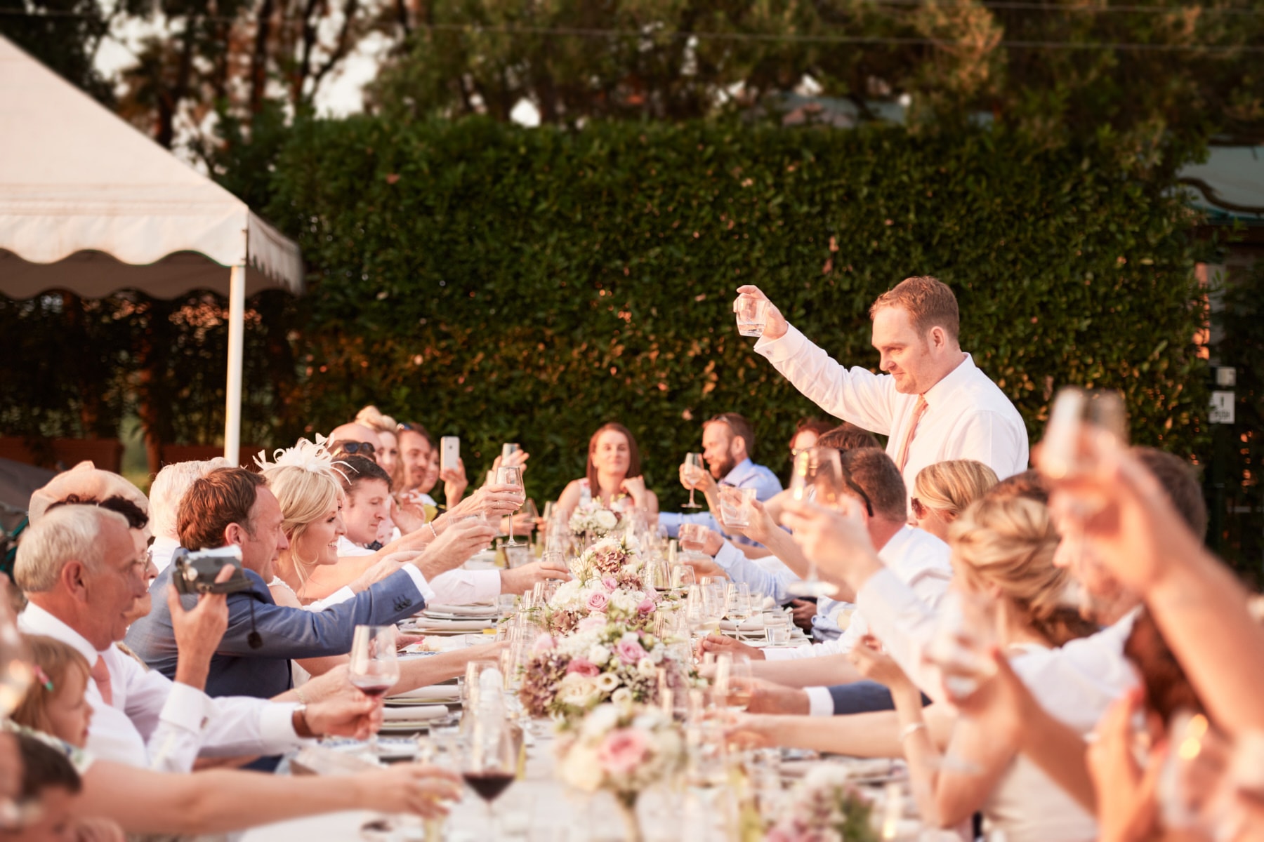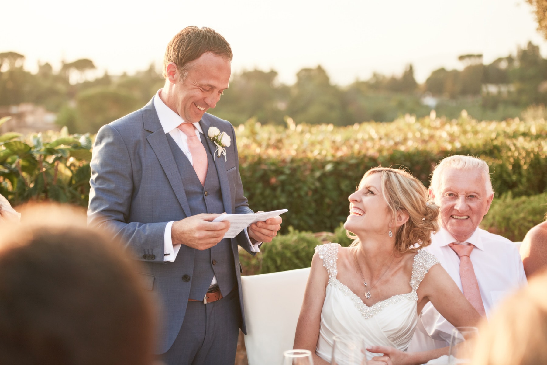 For portrait Elaine and Matt want to to stay inside the venue so we started the shooting by the Italian garden of the villa and then into the beautiful vineyard. I really love the picture taken from the Royal suite balcony while bride and groom walk together toward the main gate of the garden. Light was absolutely gorgeous! Also beautiful the reception setup near the pool with the usual stunning landscape view of the Florence countryside from the imperial table.