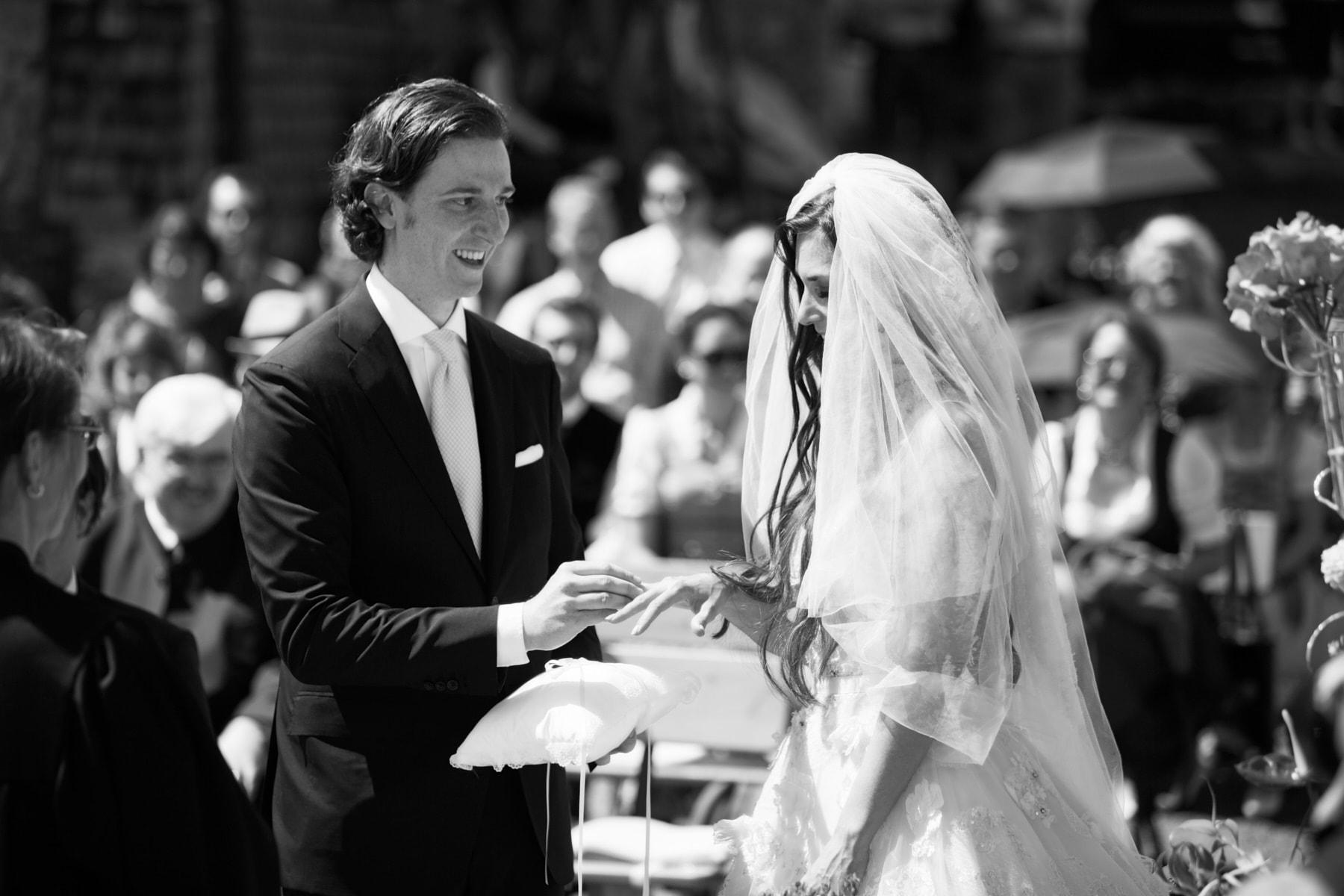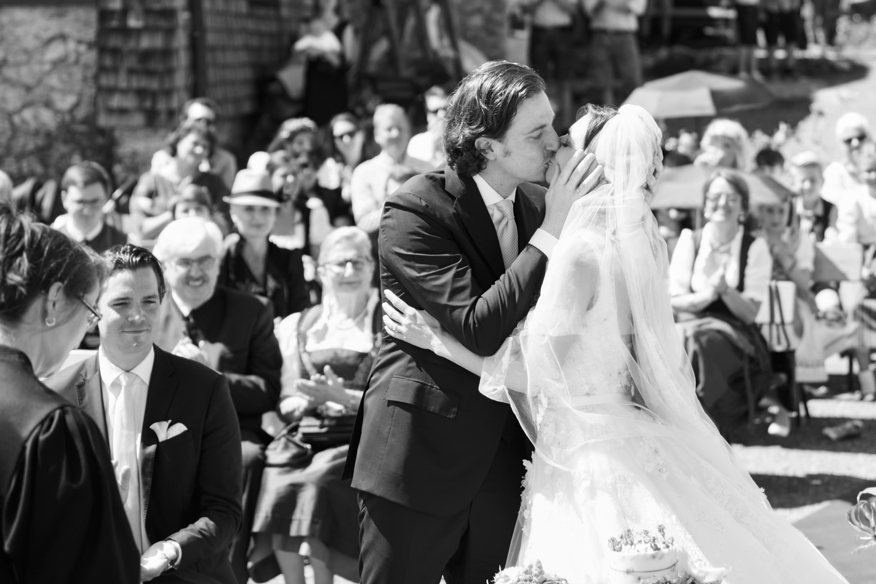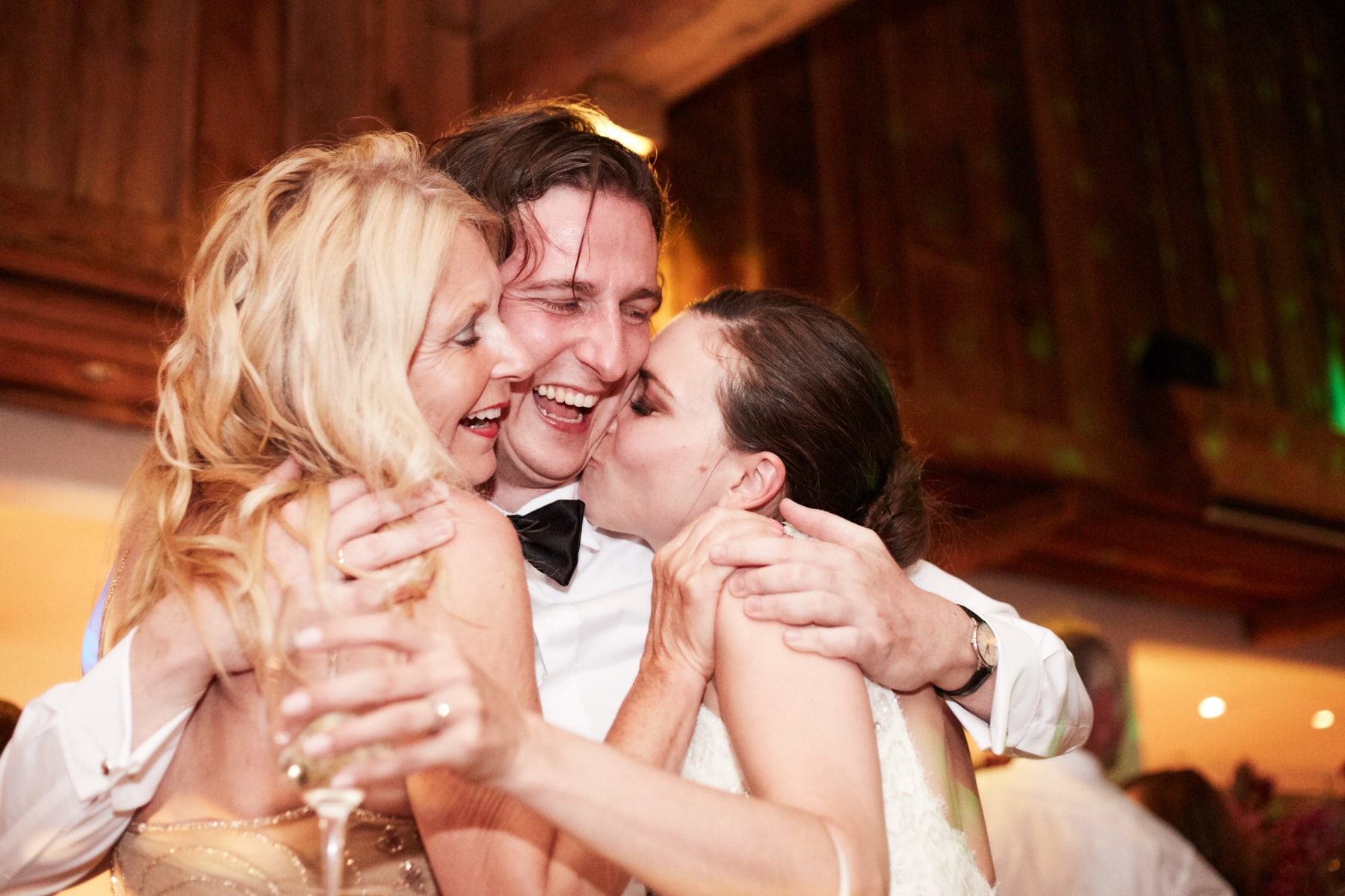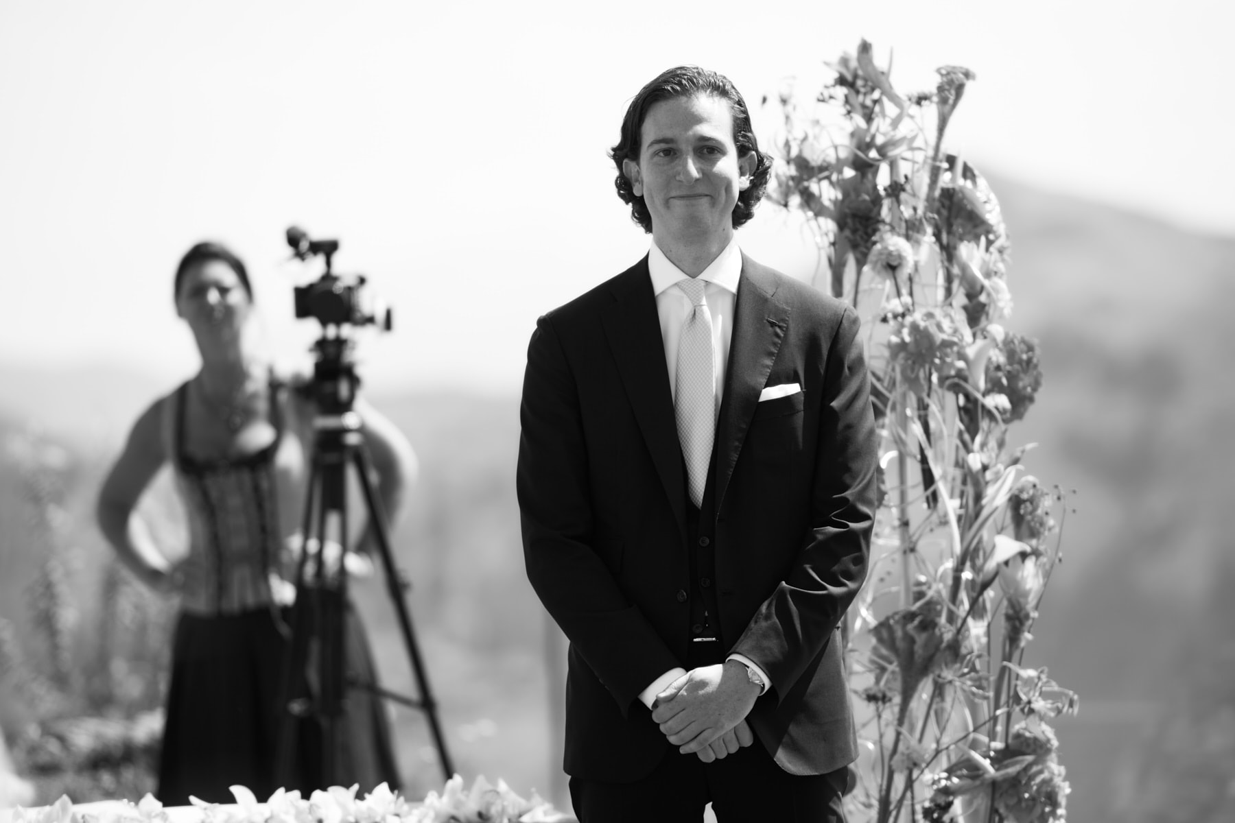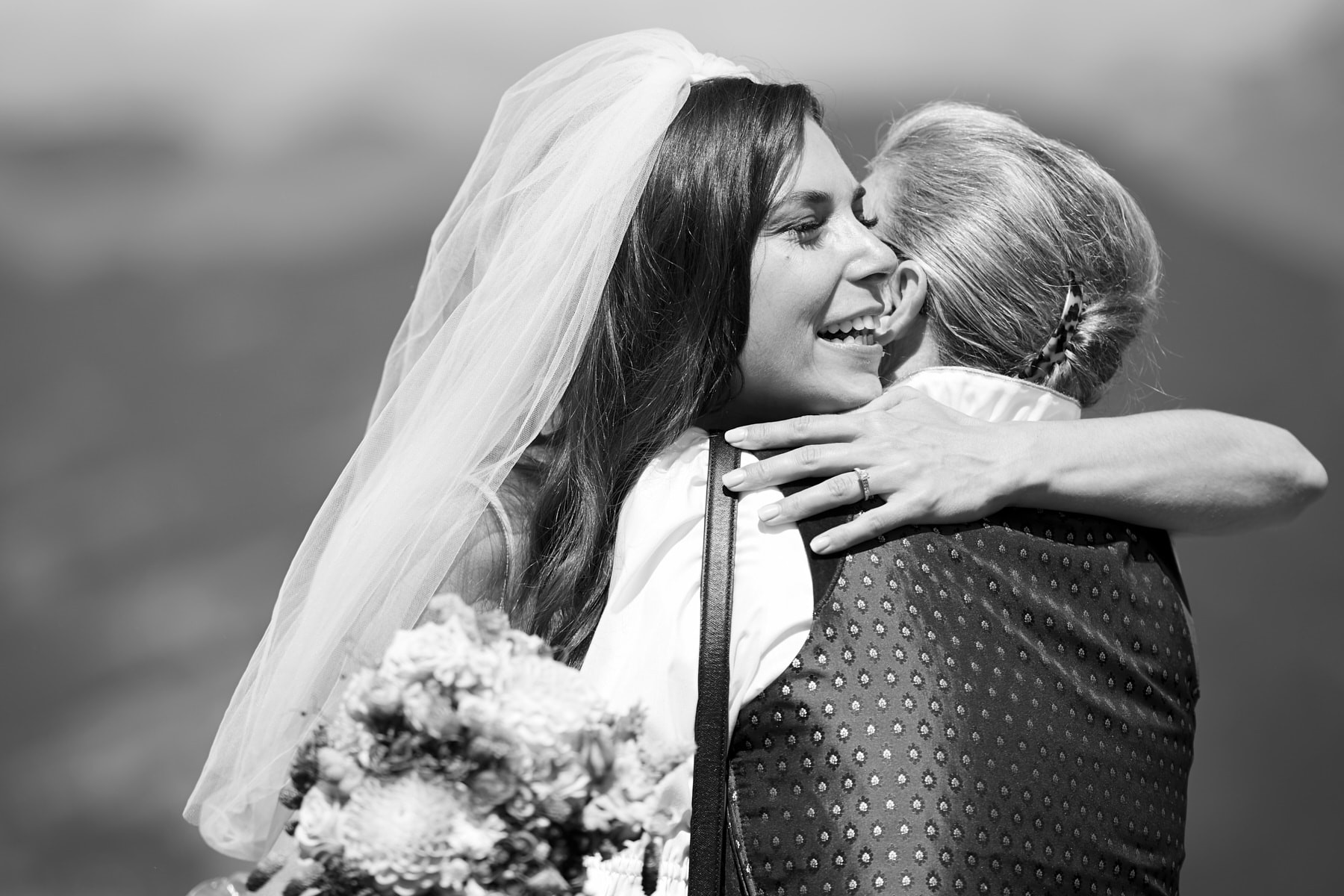 Meanwhile the weather, not particularly favorable to that point, suddenly improve and allow the sun to bright more the civil celebration and make everyone happy, including us. Our first international destination wedding could not be celebrated in the rain! By the way the temperature was perfect and the view of the Mountains was exciting as well as the groom Claus during the “first look” of his beloved future wife that slowly join him amiably greeted by friends and relatives, and accompanied by her father. A little further on, a memorable moment happened in front of me when the Linda’s dad embrace Claus at the end of the aisle.