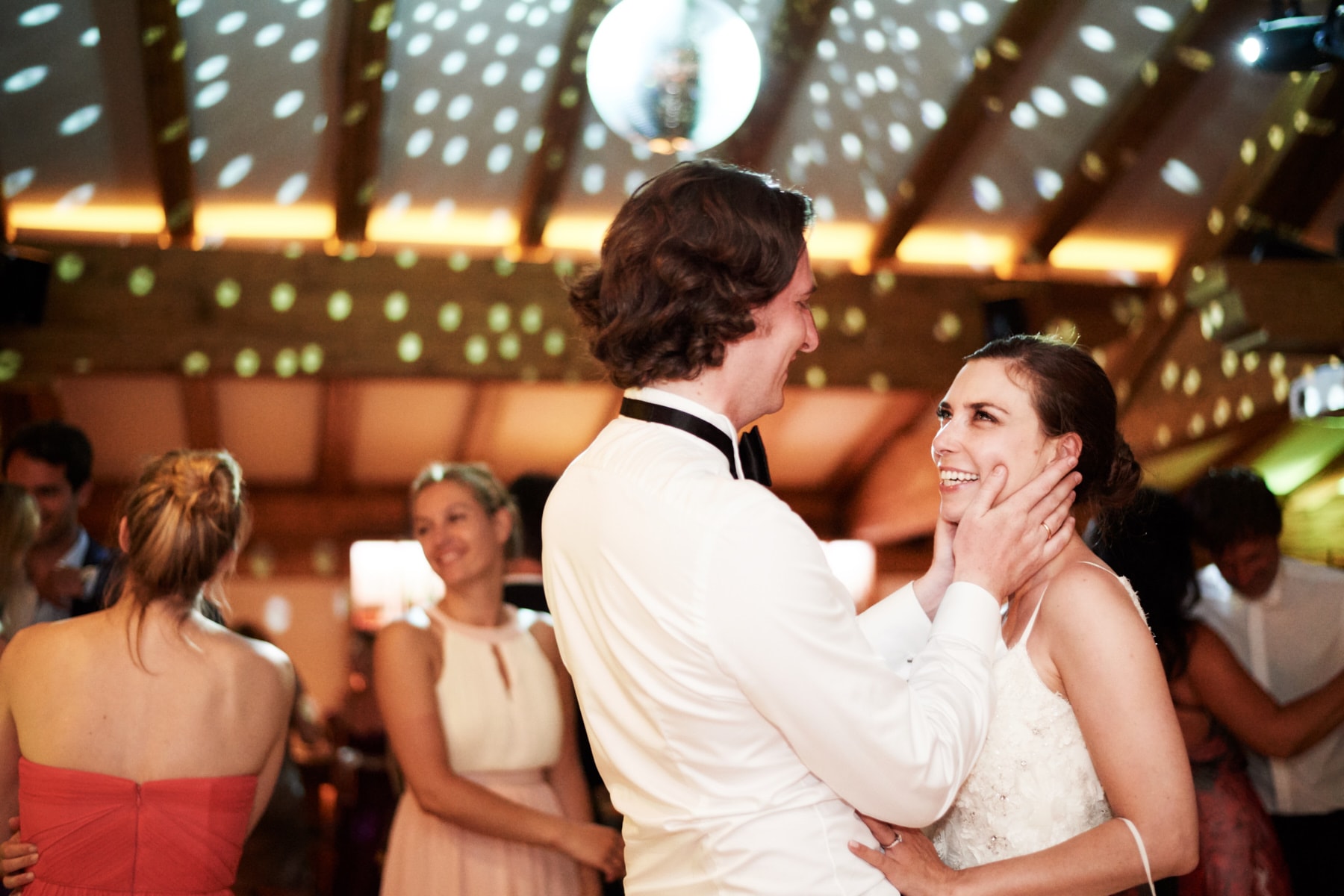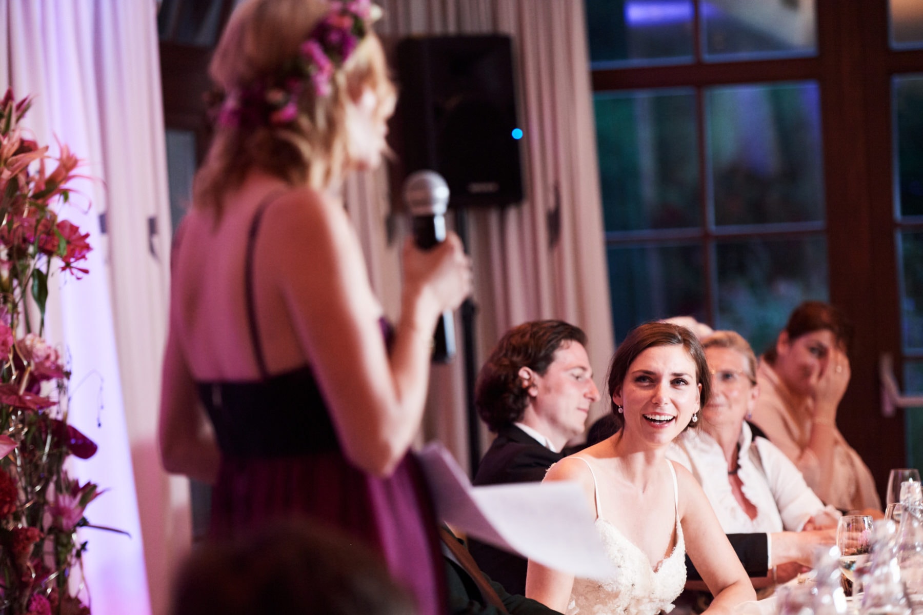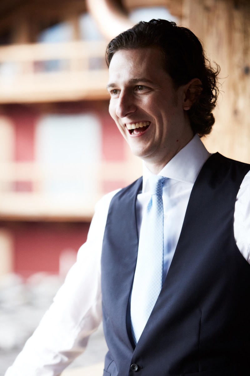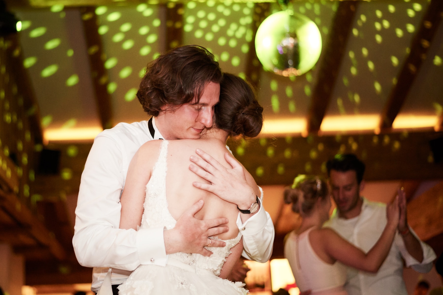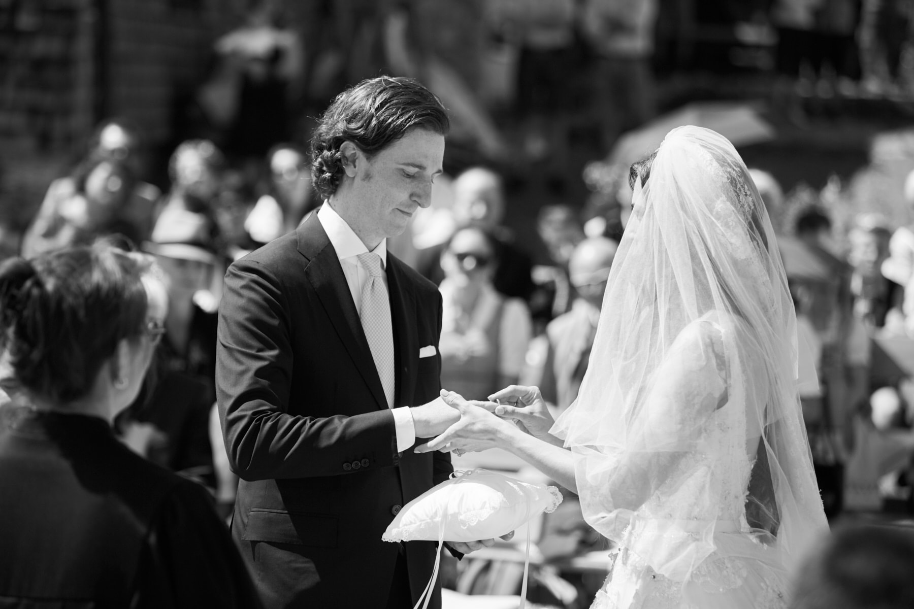 Meanwhile the weather, not particularly favorable to that point, suddenly improve and allow the sun to bright more the civil celebration and make everyone happy, including us. Our first international destination wedding could not be celebrated in the rain! By the way the temperature was perfect and the view of the Mountains was exciting as well as the groom Claus during the “first look” of his beloved future wife that slowly join him amiably greeted by friends and relatives, and accompanied by her father. A little further on, a memorable moment happened in front of me when the Linda’s dad embrace Claus at the end of the aisle.