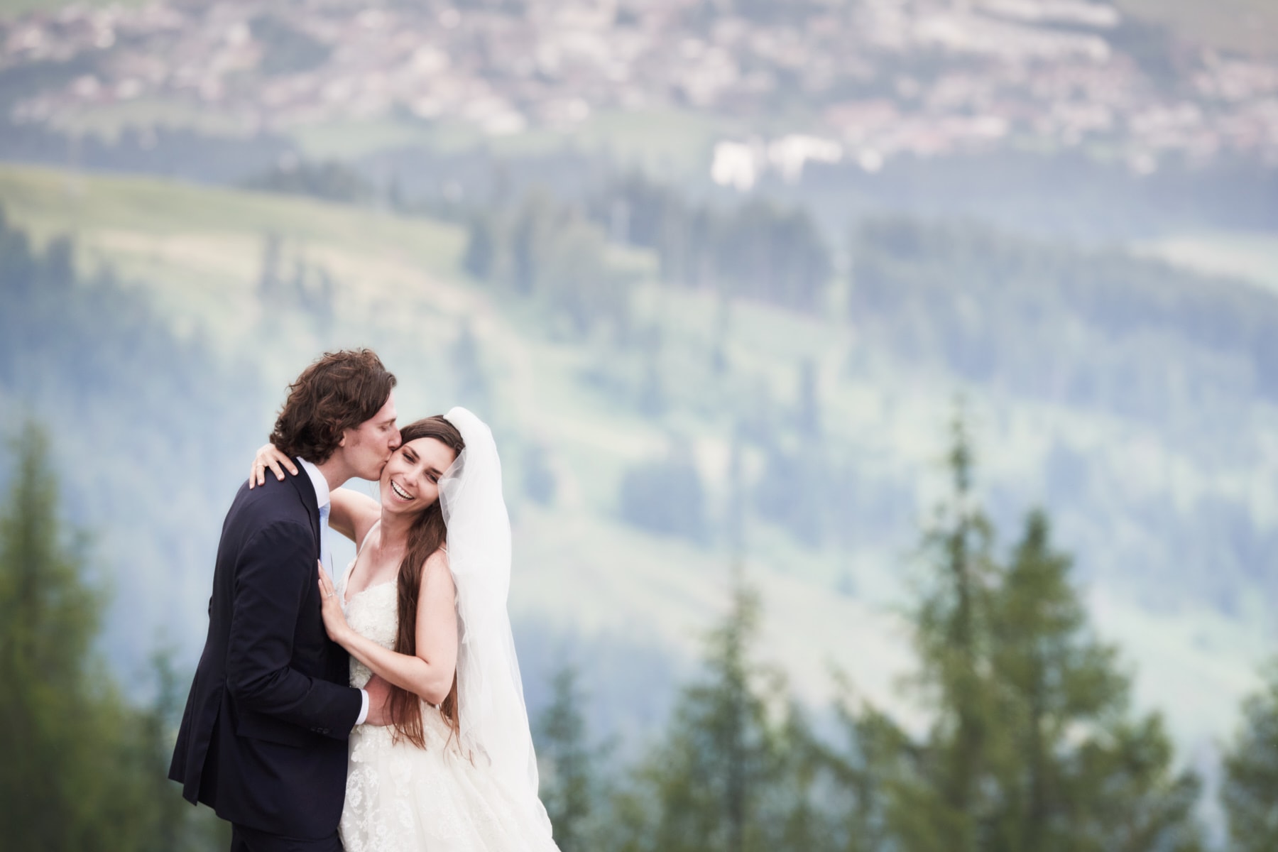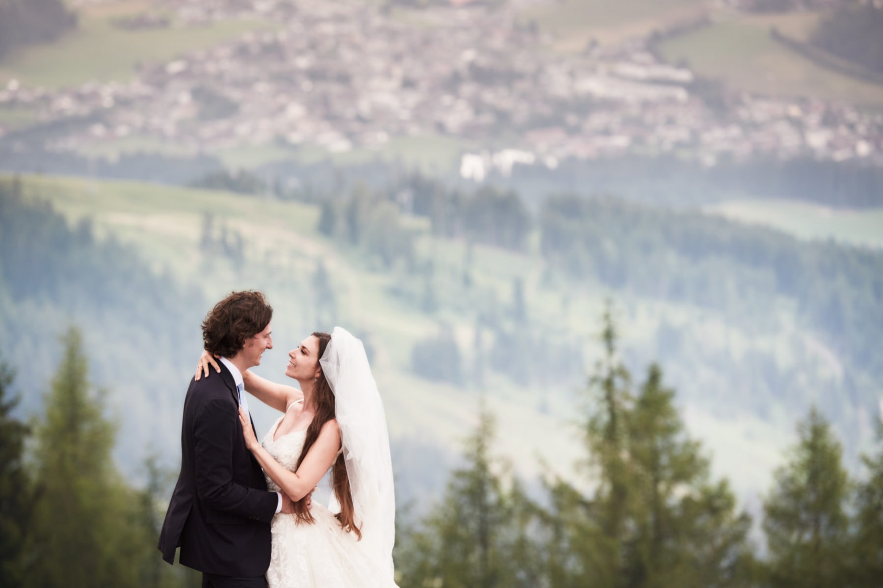 All the bride and groom portraits was taken into the nearby and beautiful spots with the magnificent landscape view of the Alps before to take back the cable car again and come back to Hotel Kitzhof for the rest of the wedding day. elegant evening reception. Following the usual speeches and after the final party with dances and fireworks in the hotel grounds unfortunately conditioned by heavy rain but that did not in any way spoil this beautiful day.