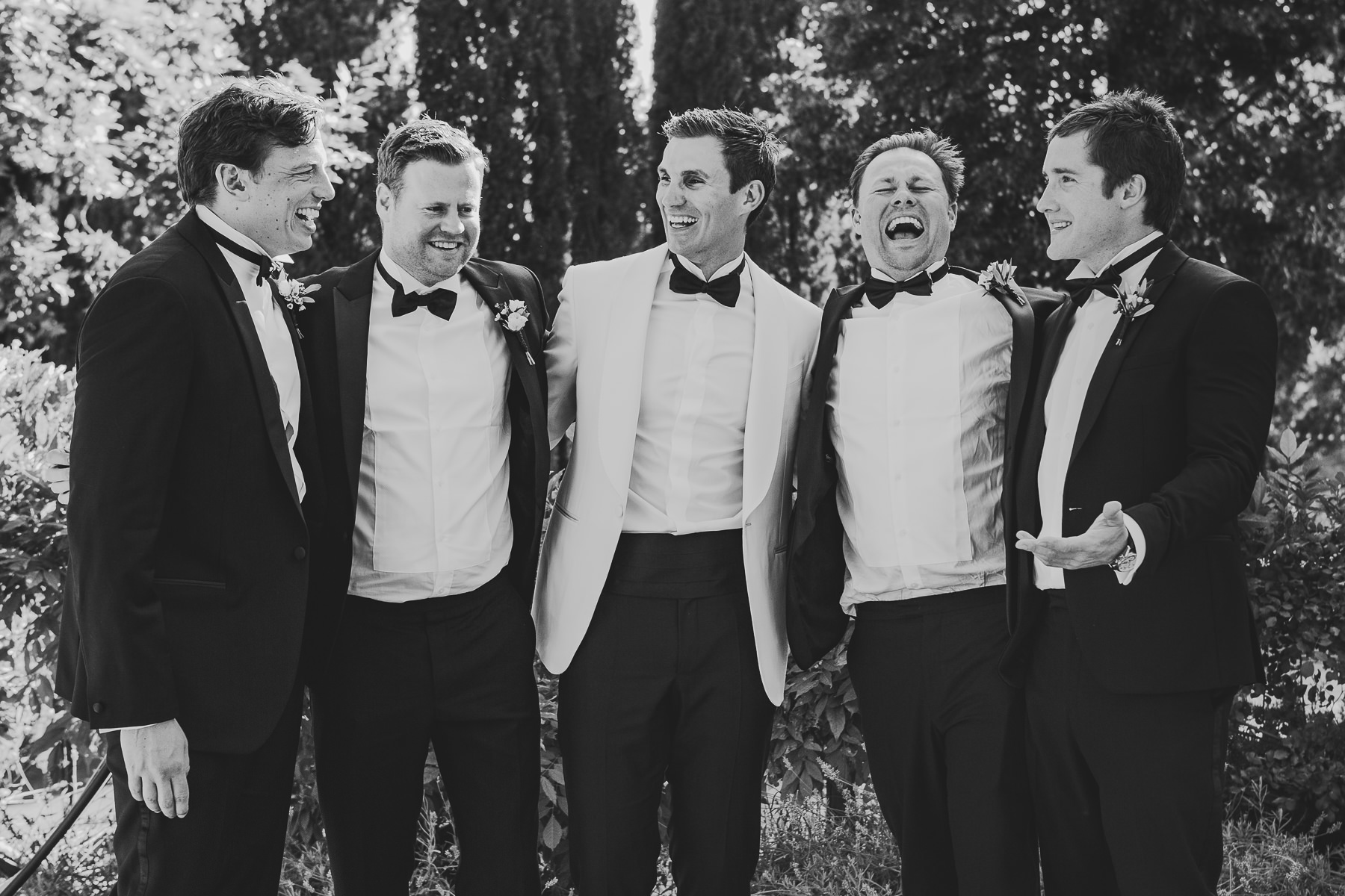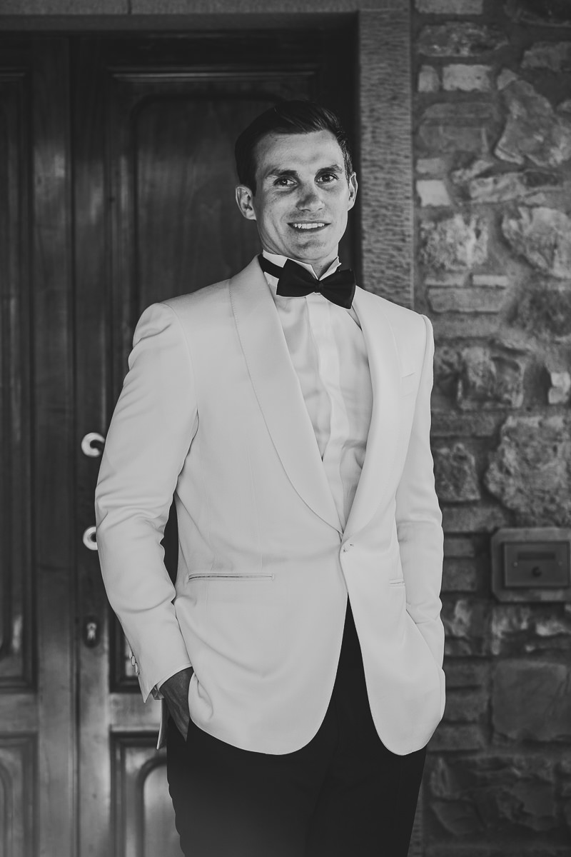 The bride and her maids got ready together in a tiny but enchanting property next to the wedding venue, while the groom and his men waited for them at the farmhouse, enjoying the beautiful garden. The wedding ceremony took place outdoors, in the shade of the trees, under an adorable small arch made of delicate flowers.