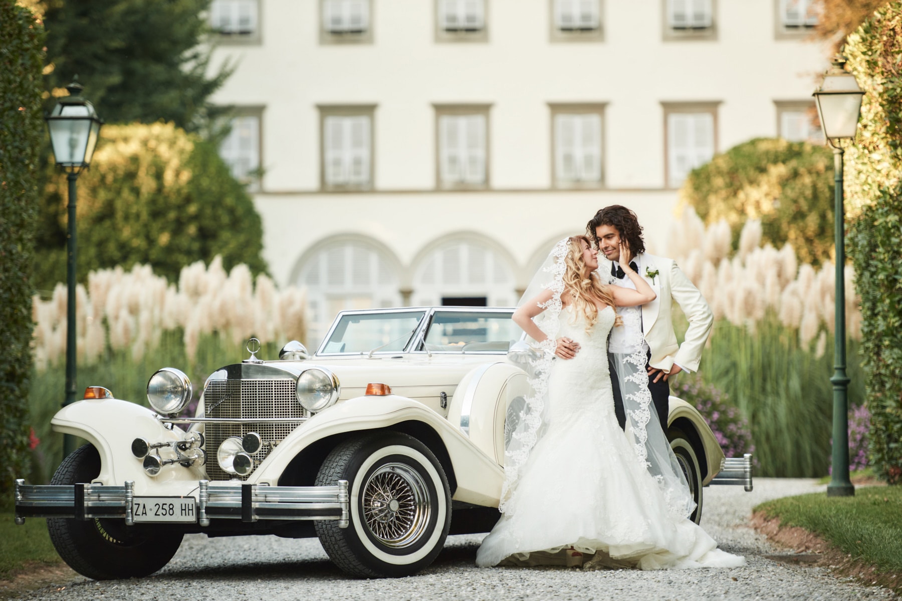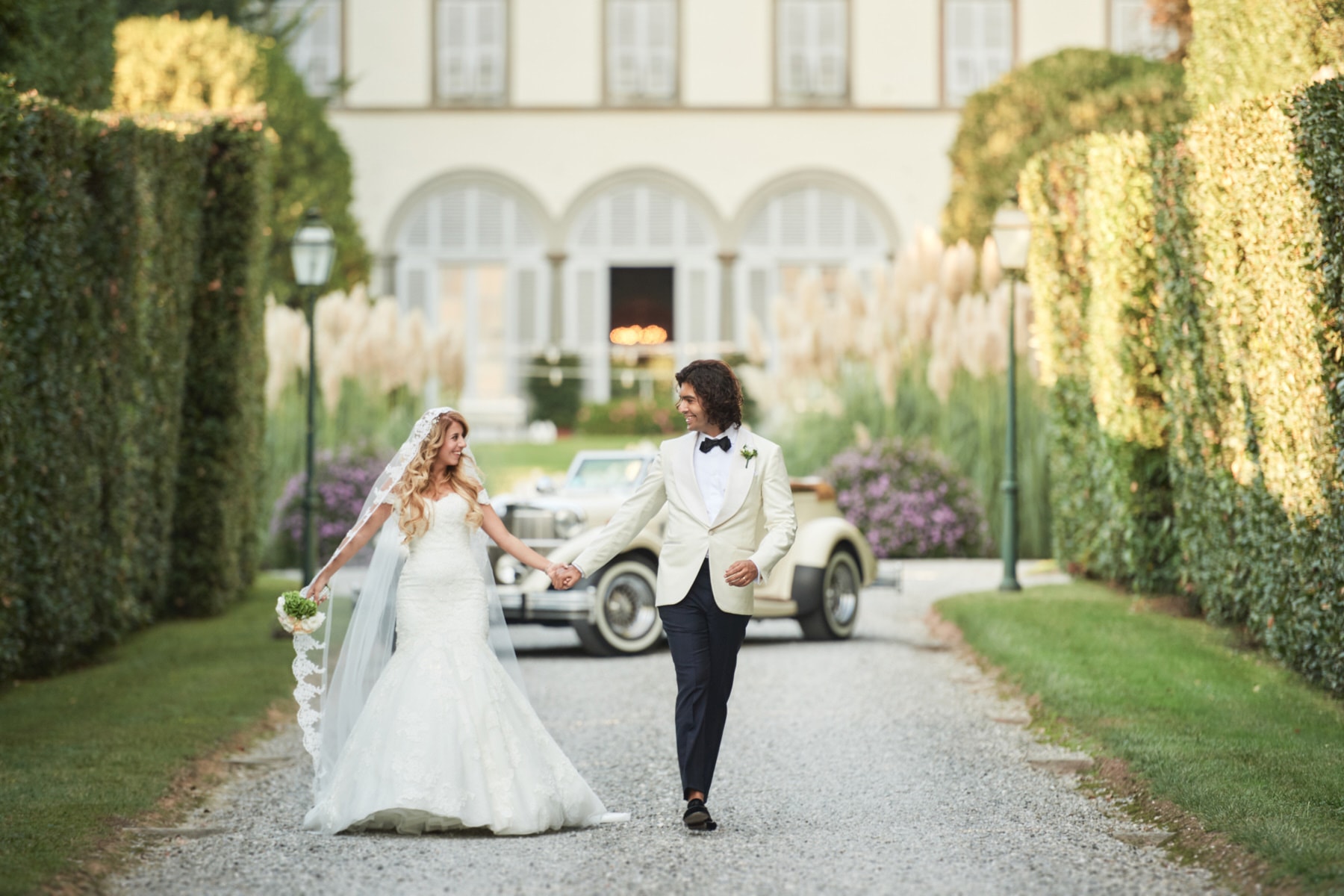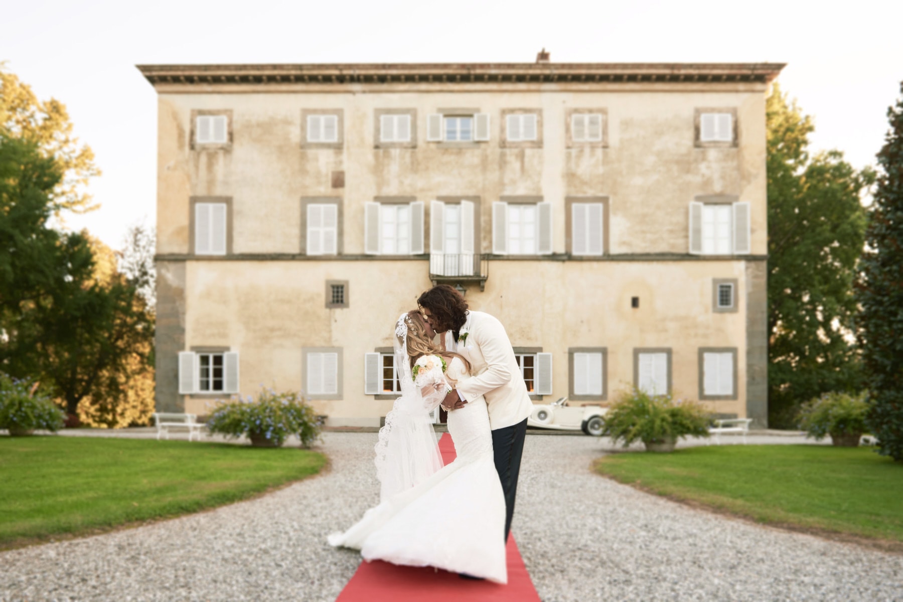 After quick getting ready, the beautiful bride Celine got her vintage car to reach the garden just back of the charming building with the soft green Tuscan hills and valleys all around us. After the emotional ceremony, guests enjoyed the warm Tuscan sun for the cocktail while the couple just married walk away to enjoy the portraiture session.