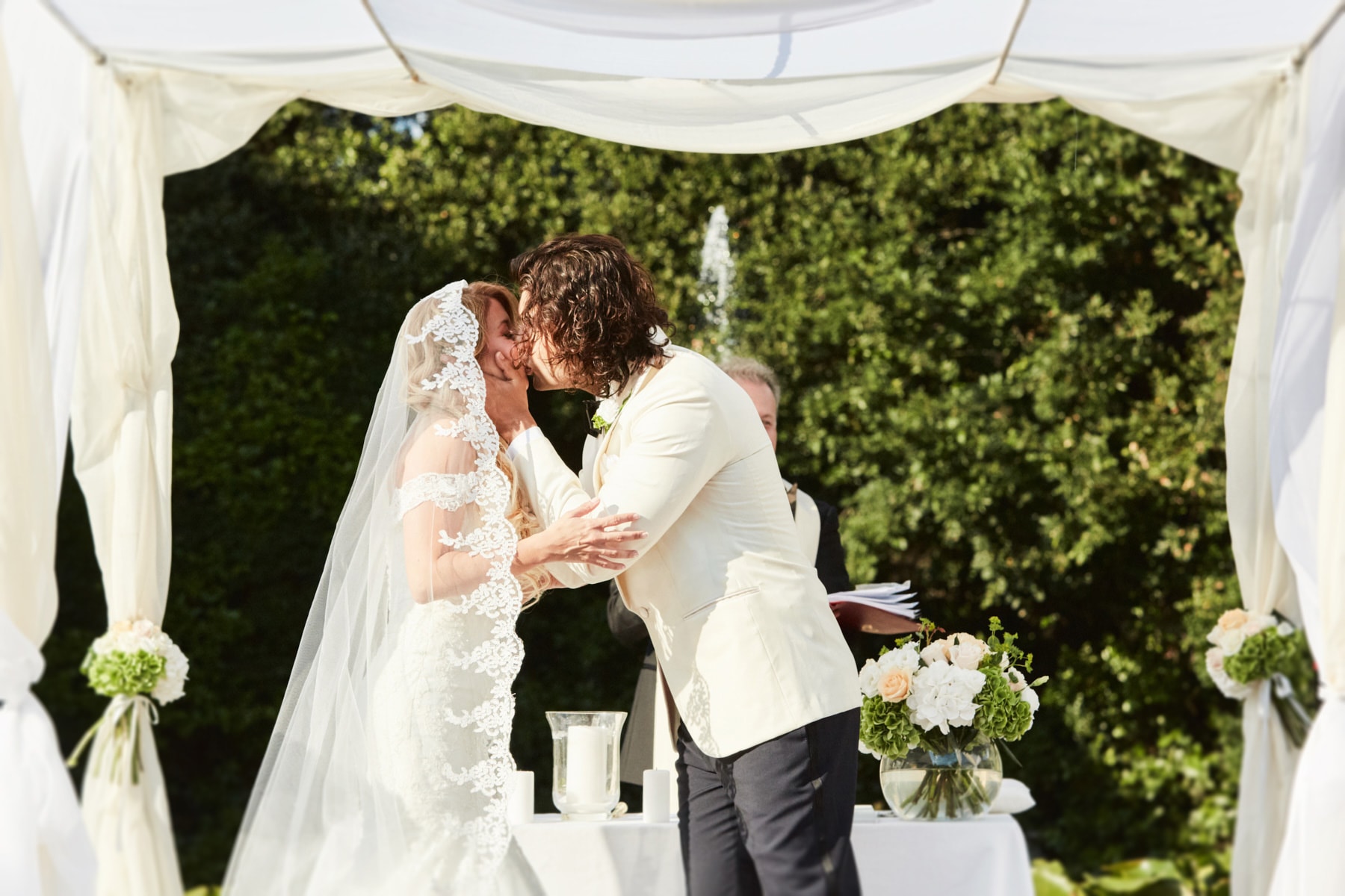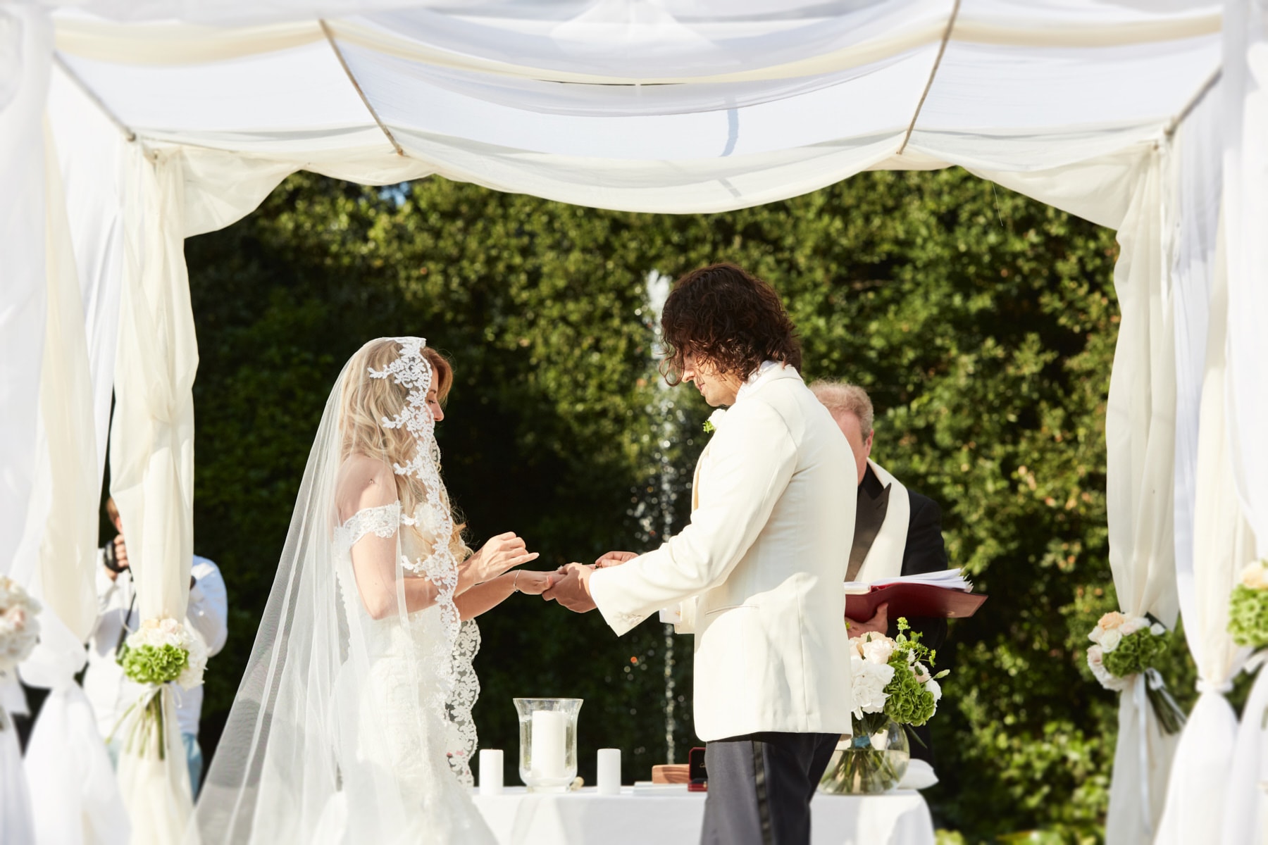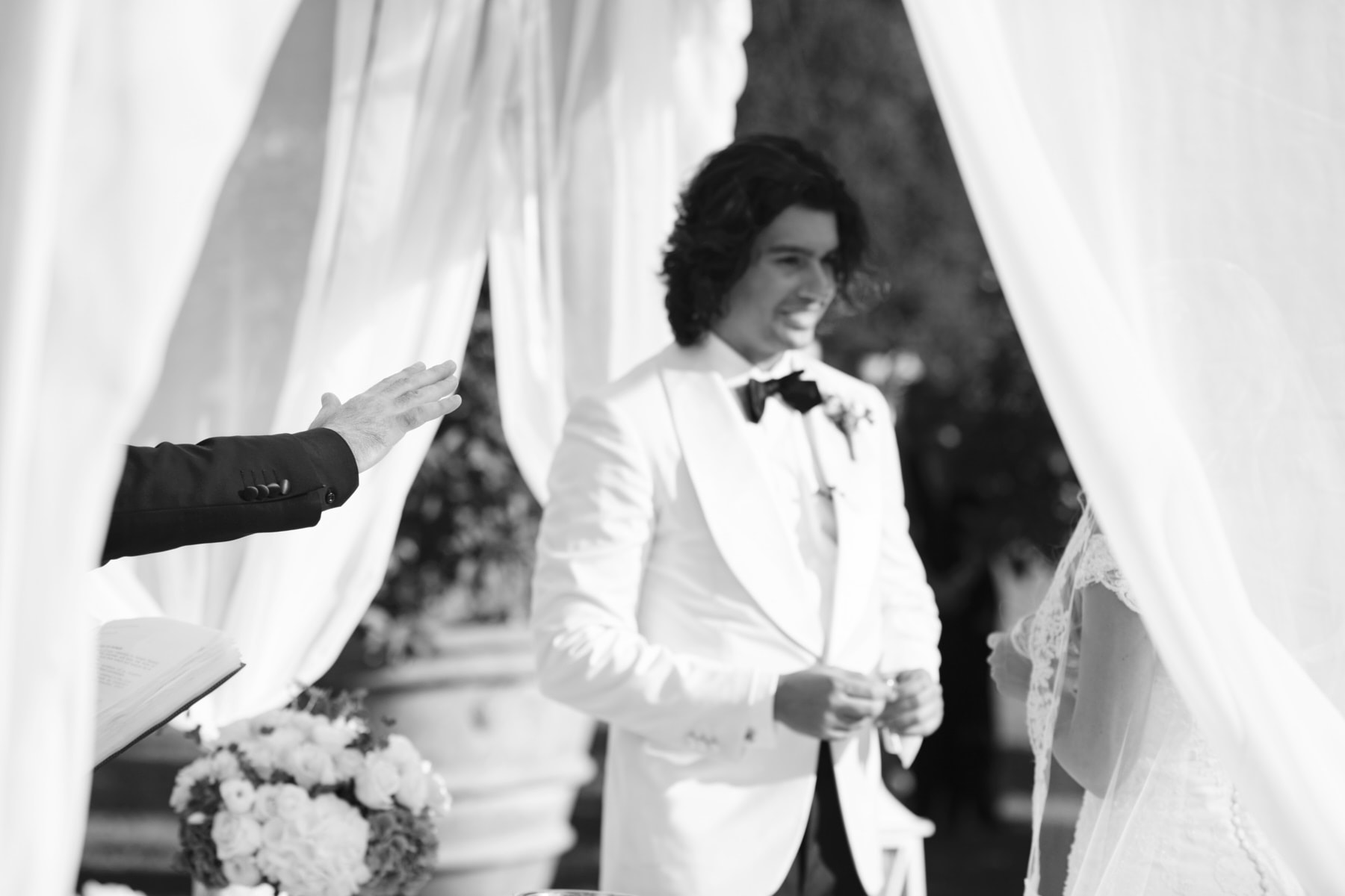 After quick getting ready, the beautiful bride Celine got her vintage car to reach the garden just back of the charming building with the soft green Tuscan hills and valleys all around us. After the emotional ceremony, guests enjoyed the warm Tuscan sun for the cocktail while the couple just married walk away to enjoy the portraiture session.