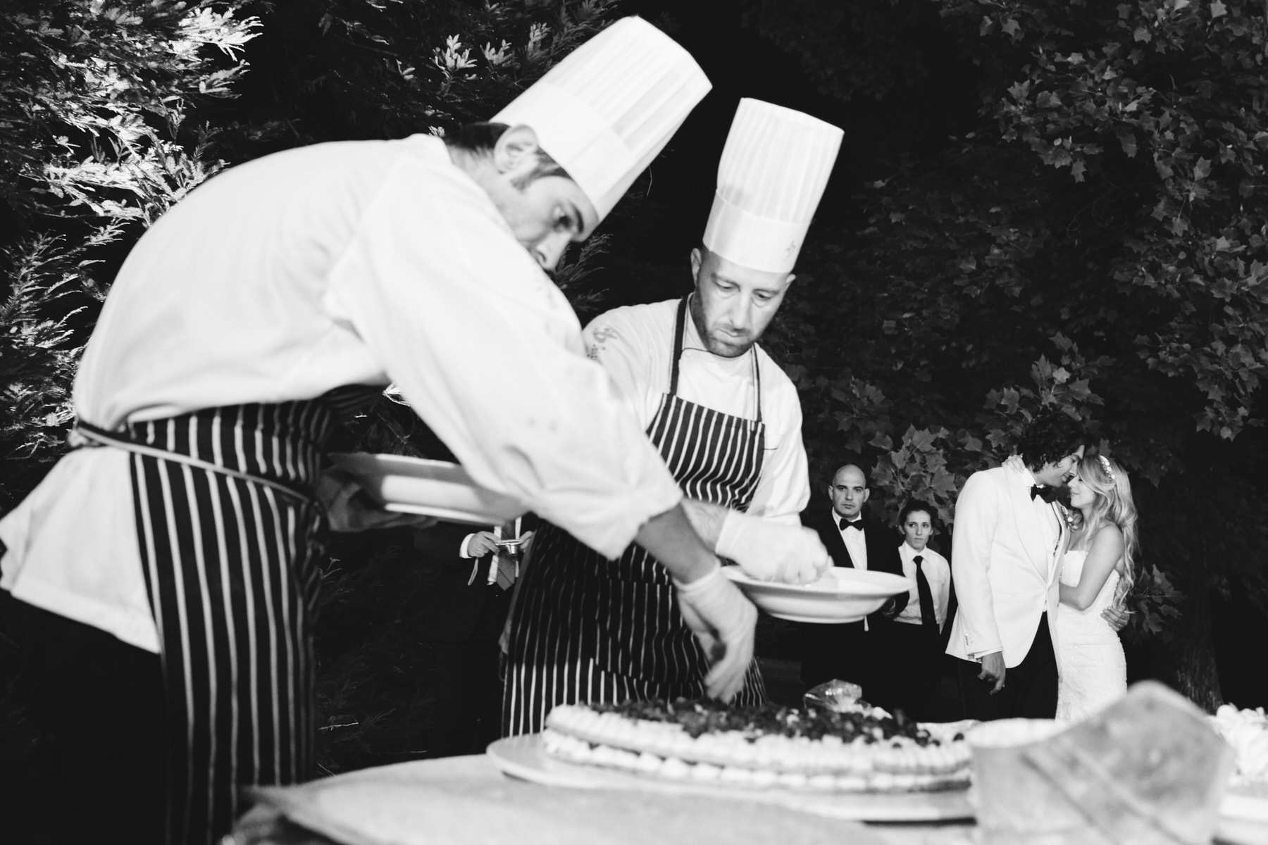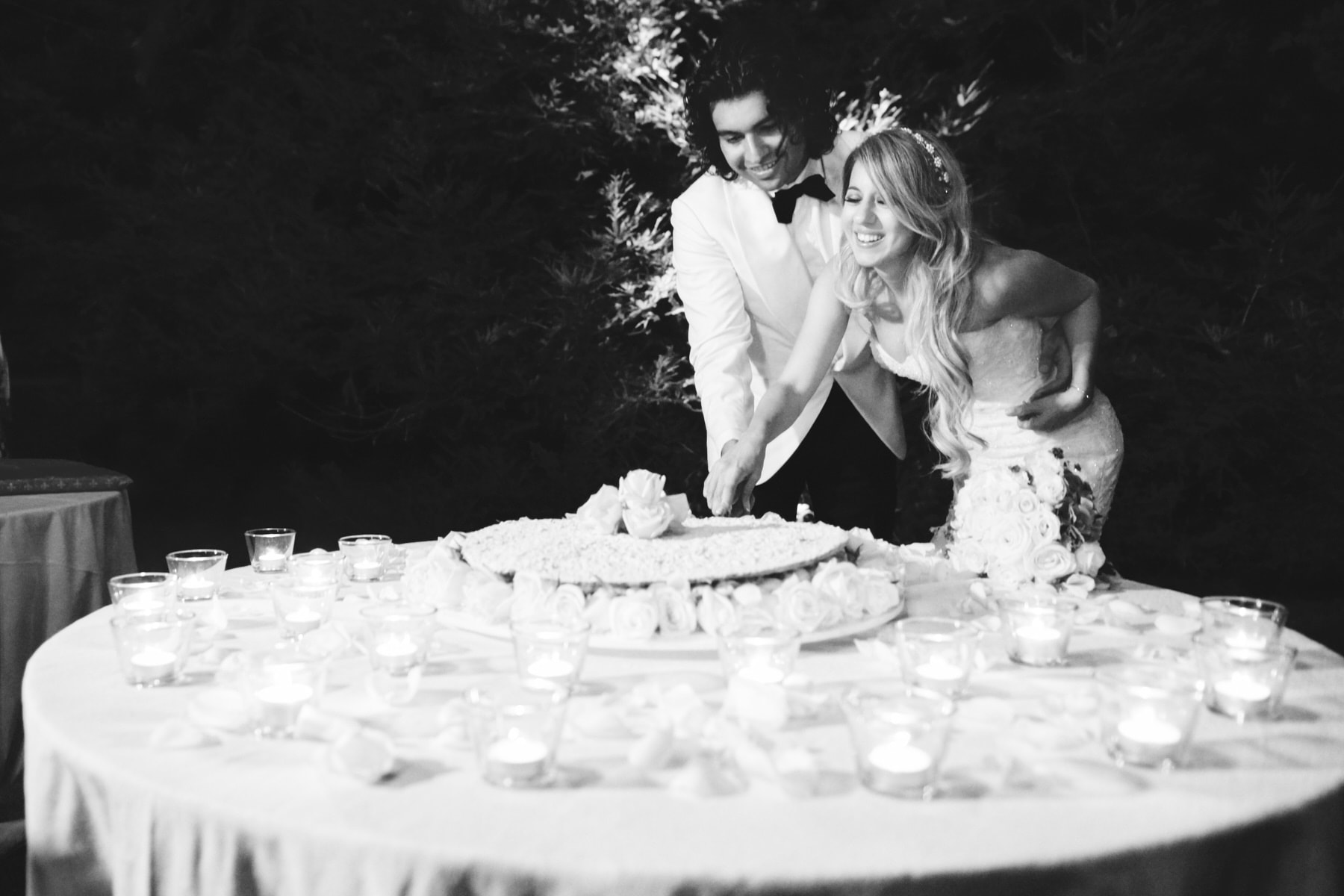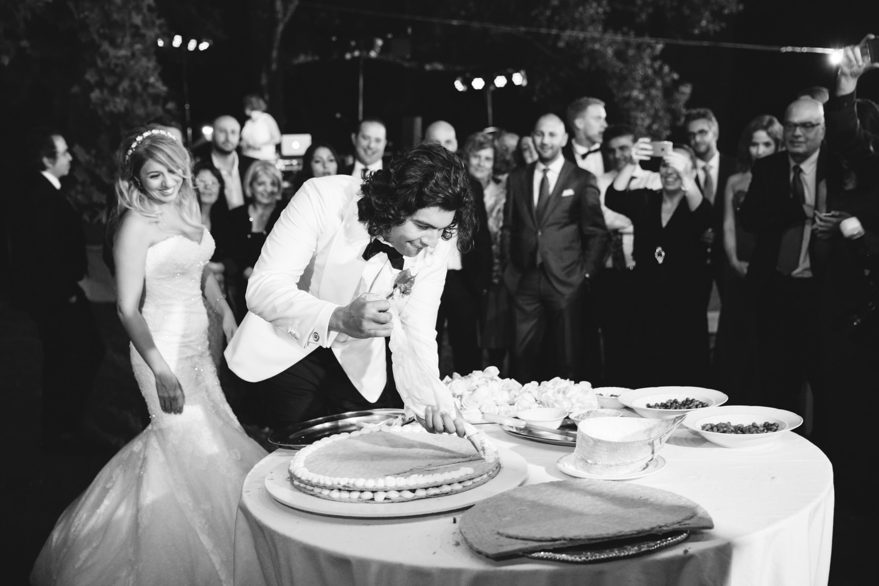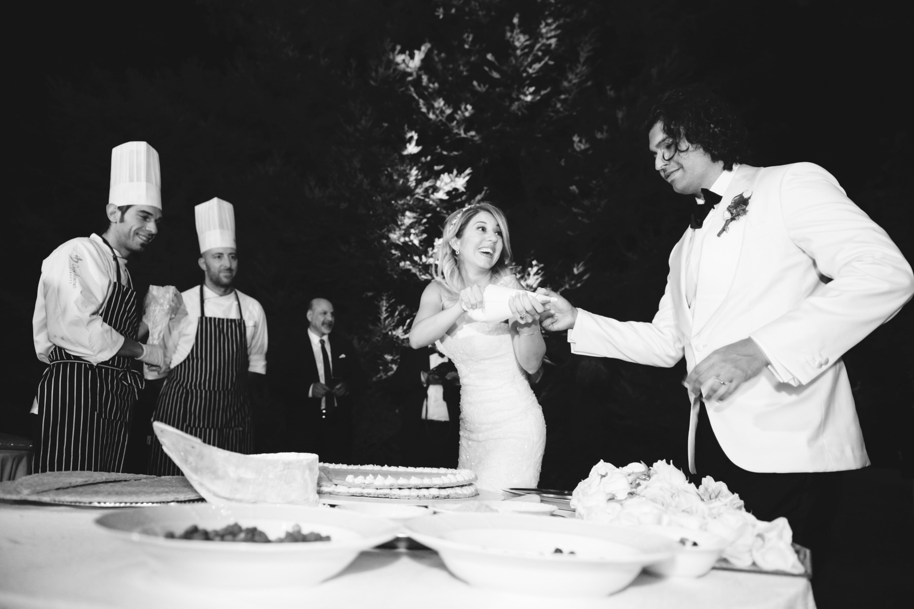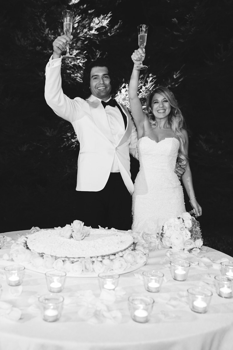 The dinner was organized in front of the villa in a beautiful and romantic atmosphere followed by emotional speeches, dancing and the cut of the cake made live.