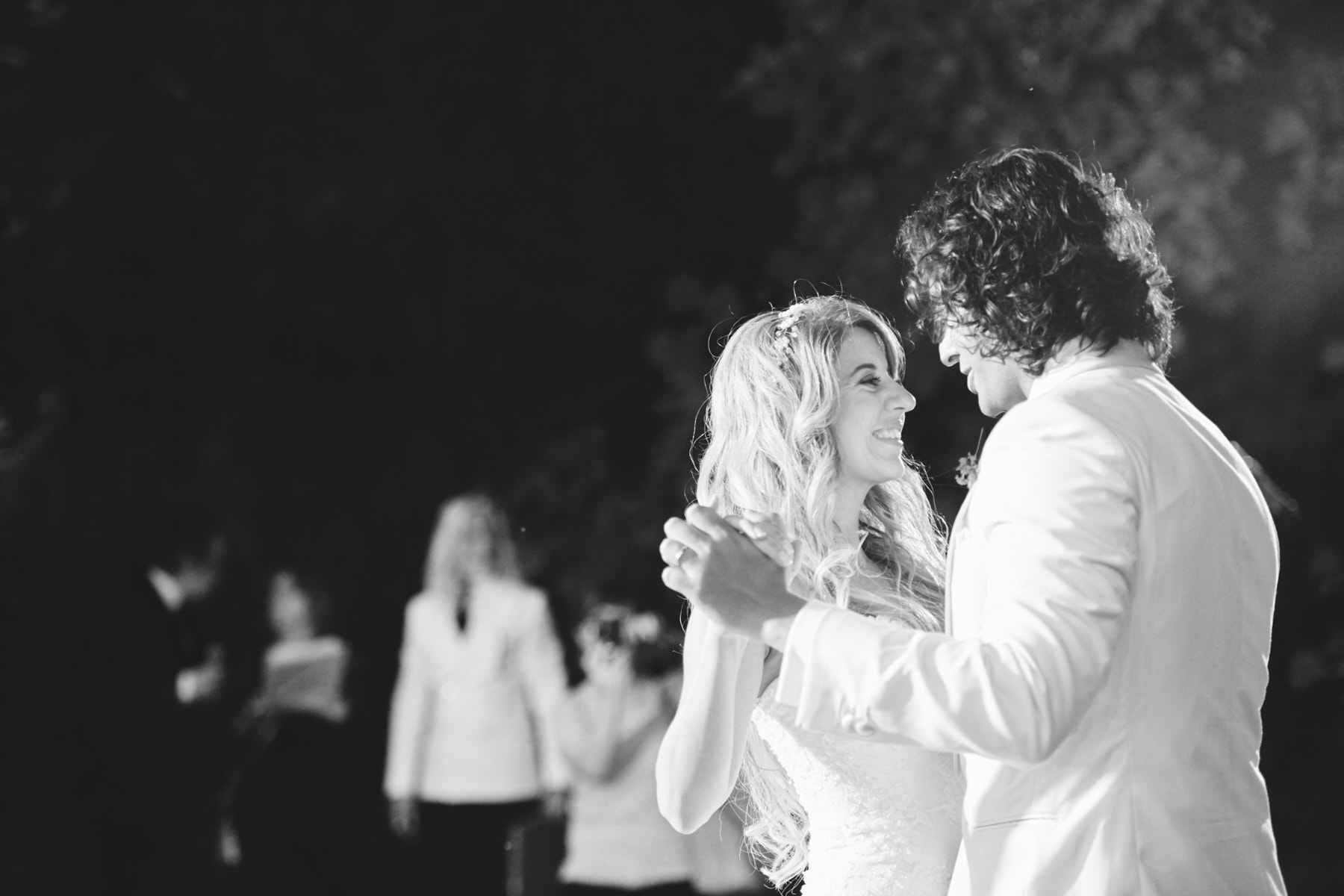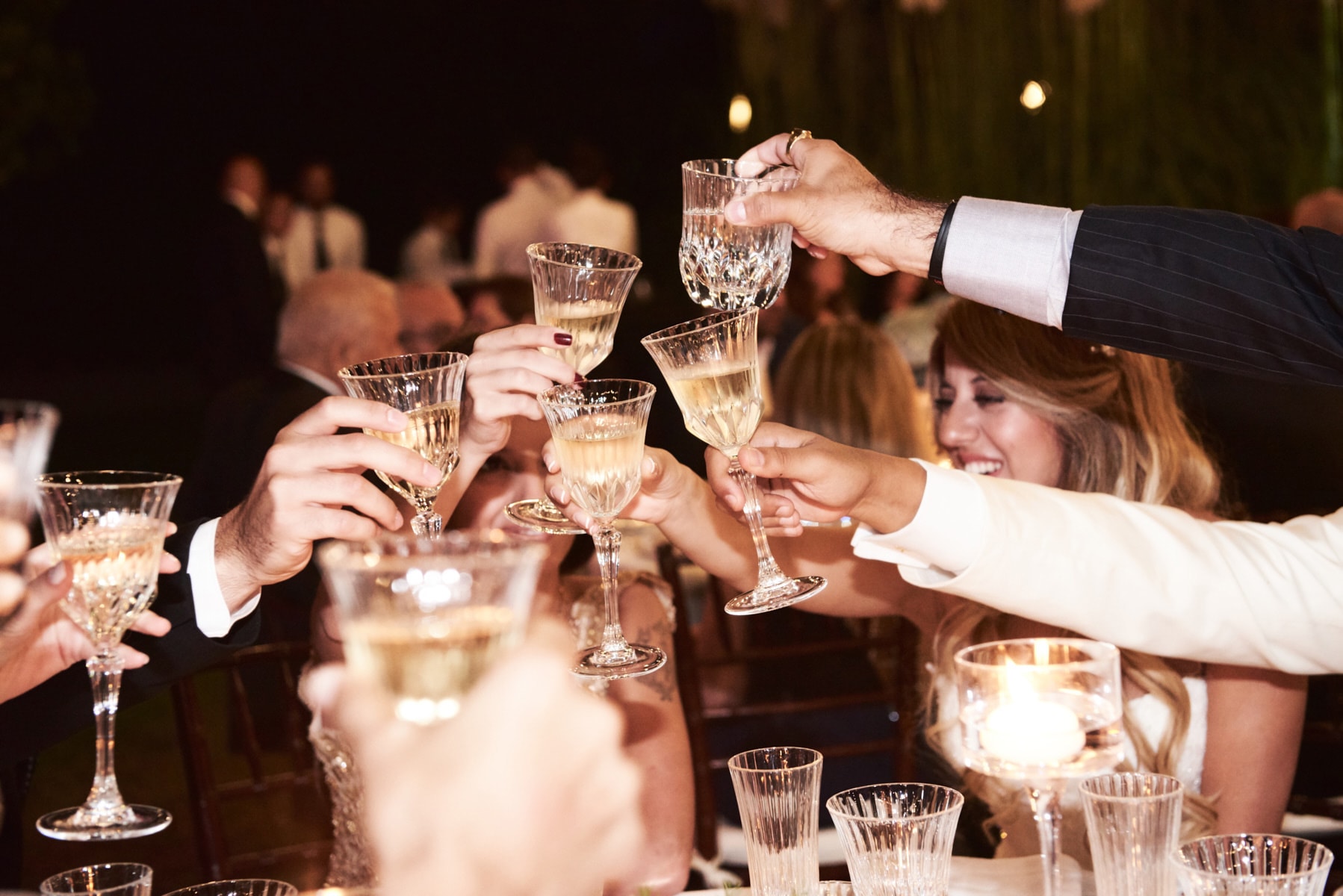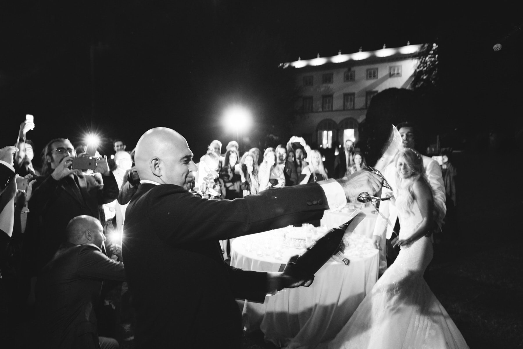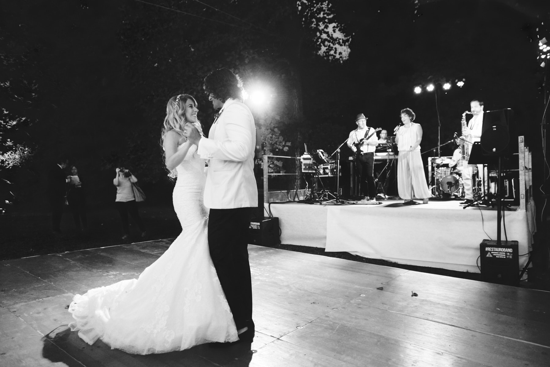 The dinner was organized in front of the villa in a beautiful and romantic atmosphere followed by emotional speeches, dancing and the cut of the cake made live.