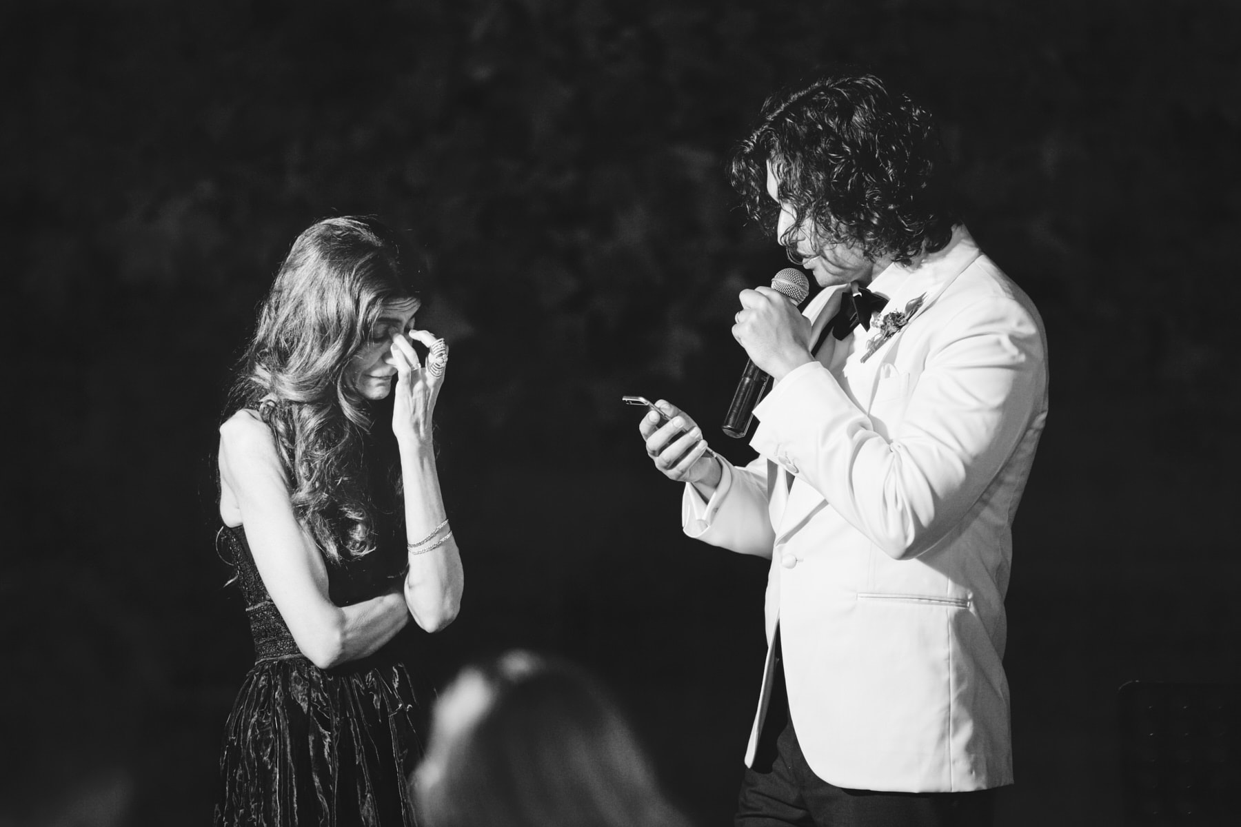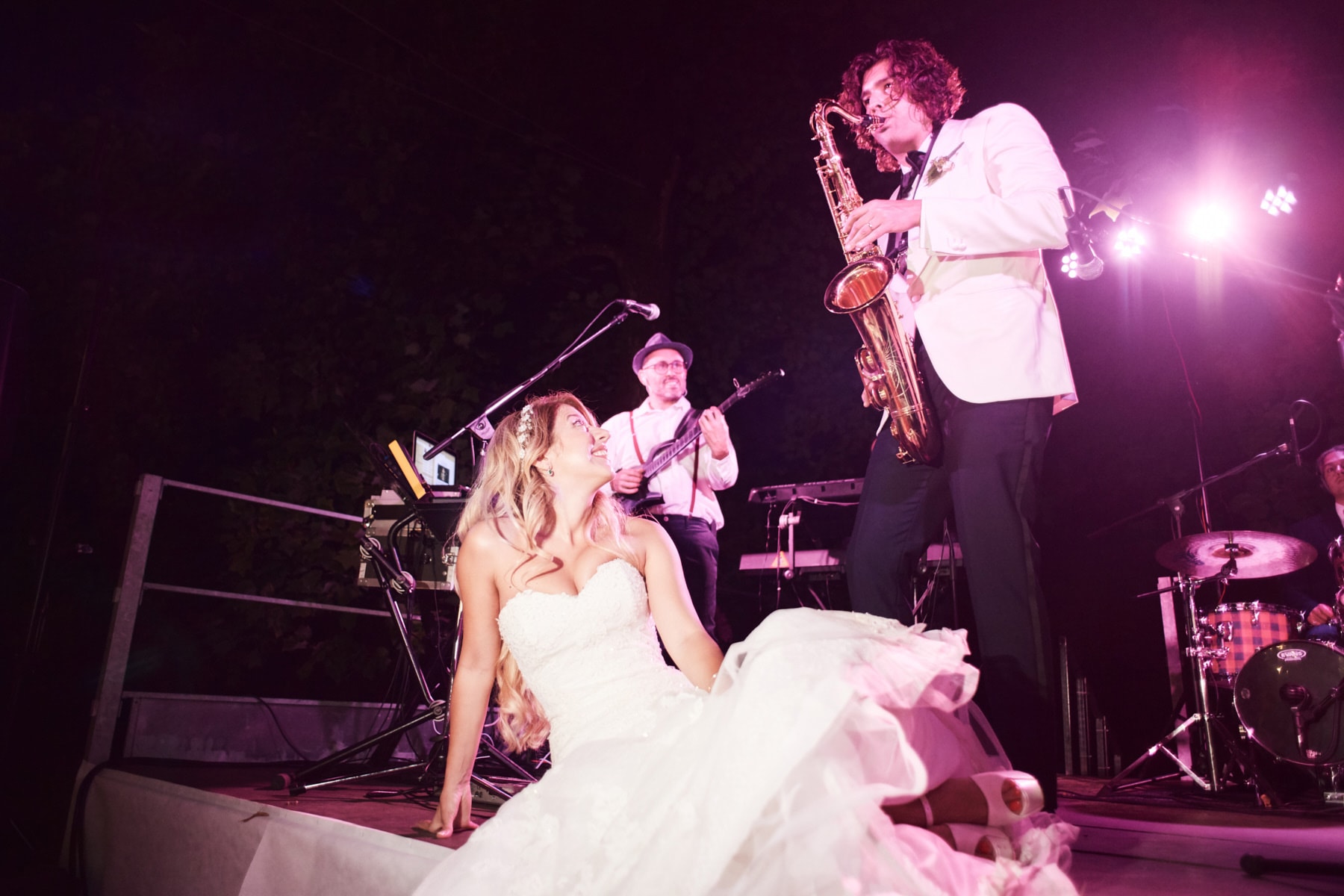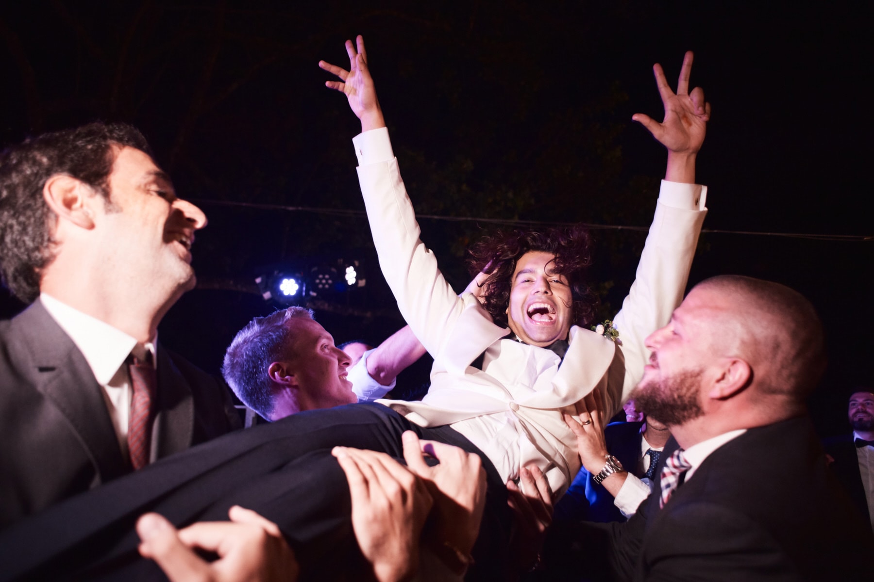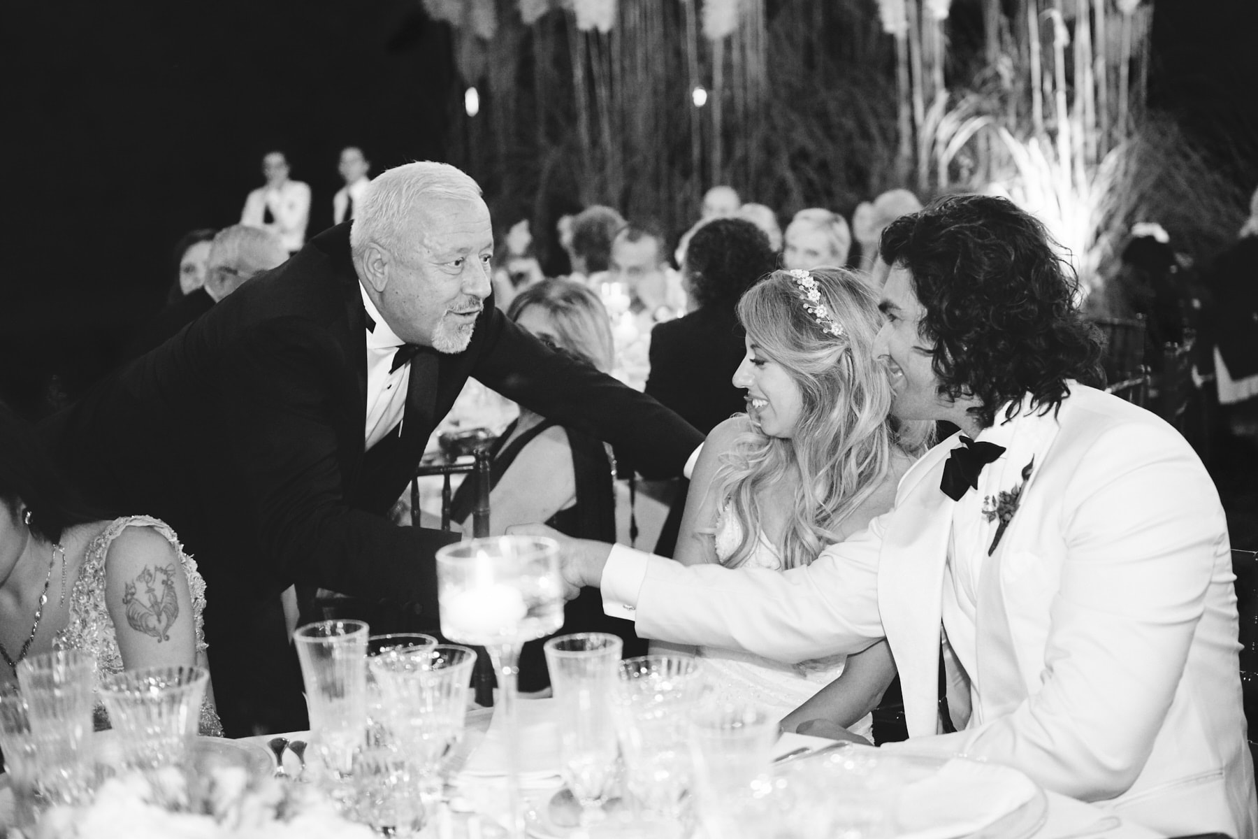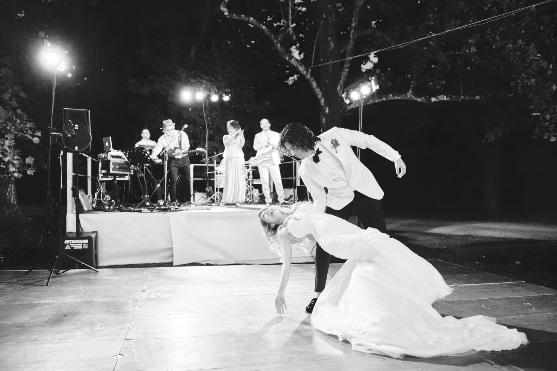 The dinner was organized in front of the villa in a beautiful and romantic atmosphere followed by emotional speeches, dancing and the cut of the cake made live.