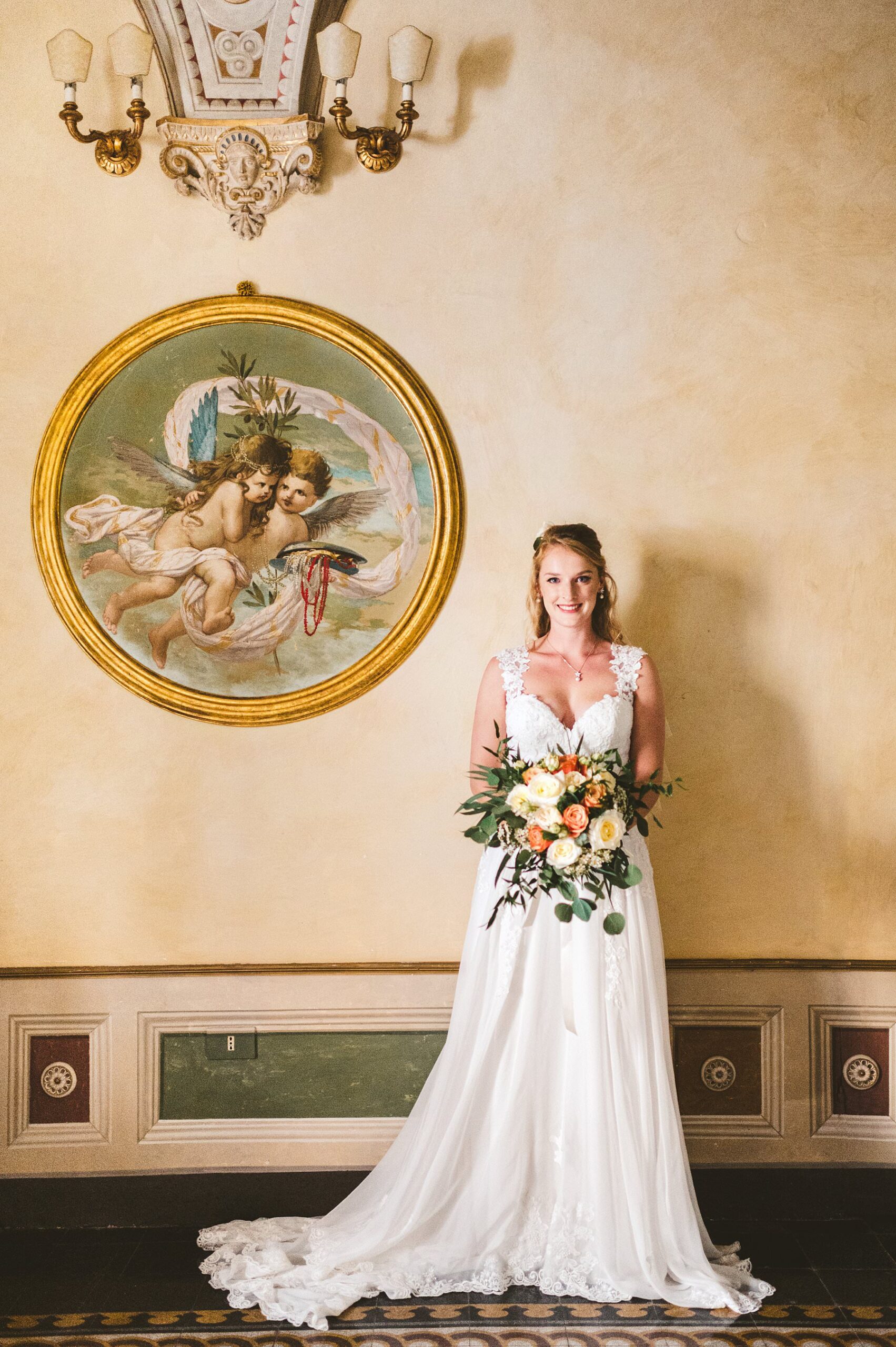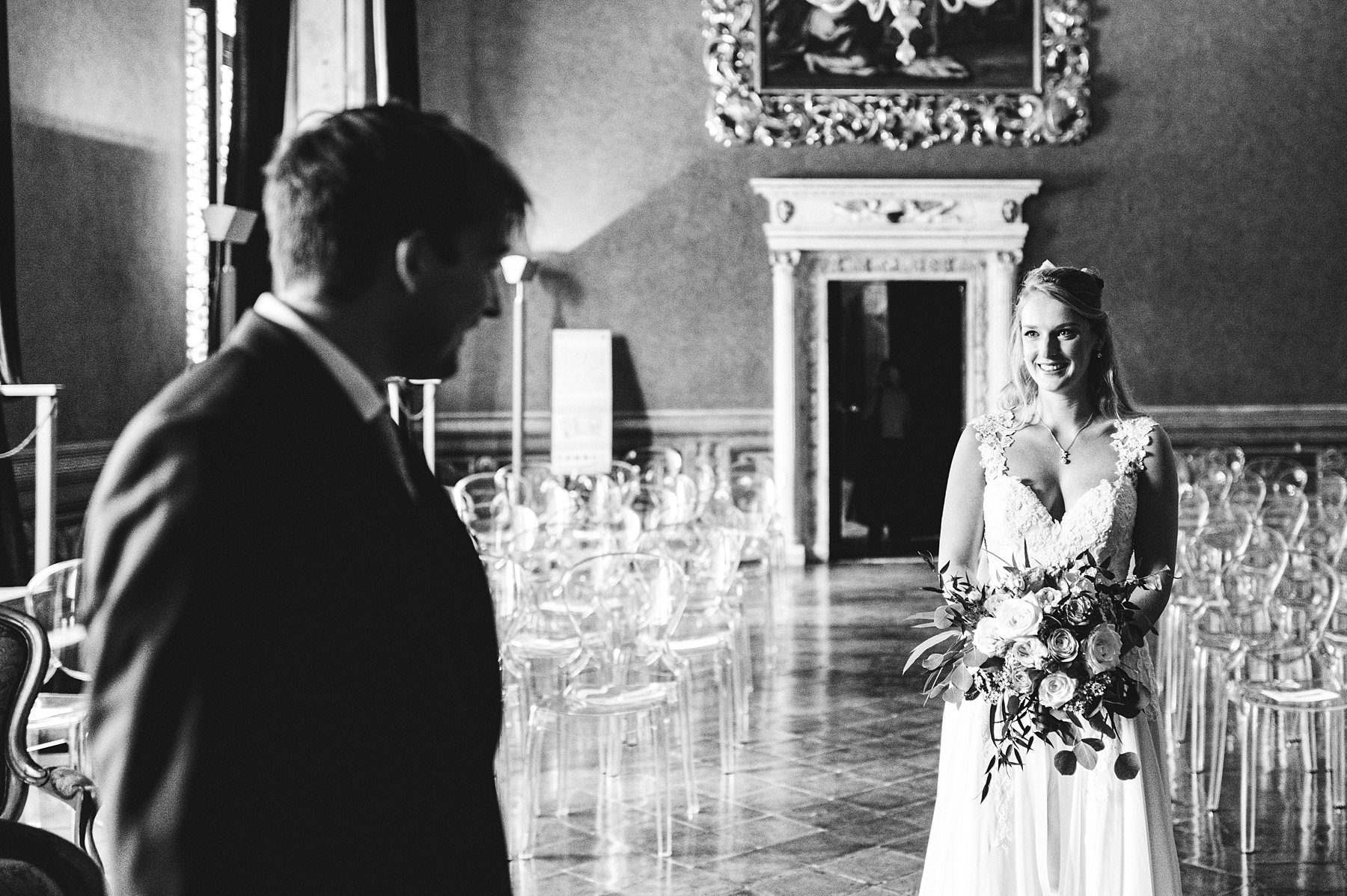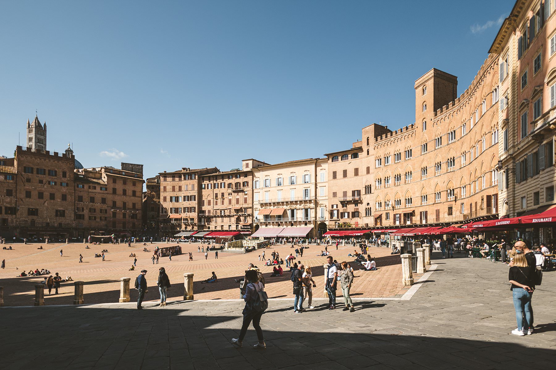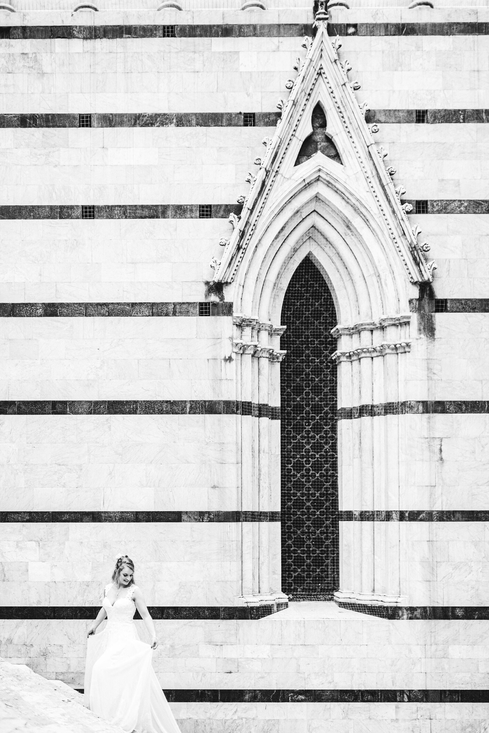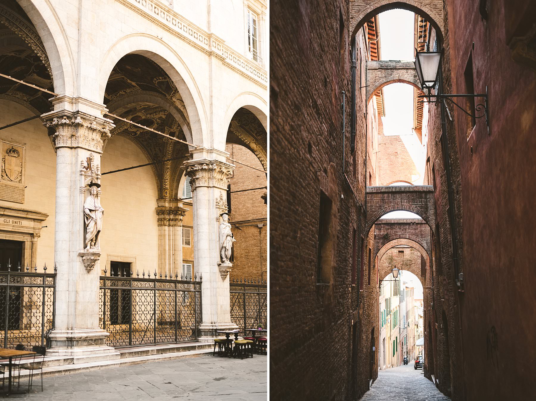 We started at Palazzo Coli Bizzarrini – a historic residence whose architecture and incredible frescoes take you back to the Renaissance – where the bride and groom got ready in two different rooms. Chris then reached the Town Hall and waited for Poppy in the Concistoro Hall – where I captured the emotional first look. After the ceremony, we took photos in all the most iconic places in Siena, including Piazza del Campo and the Duomo.