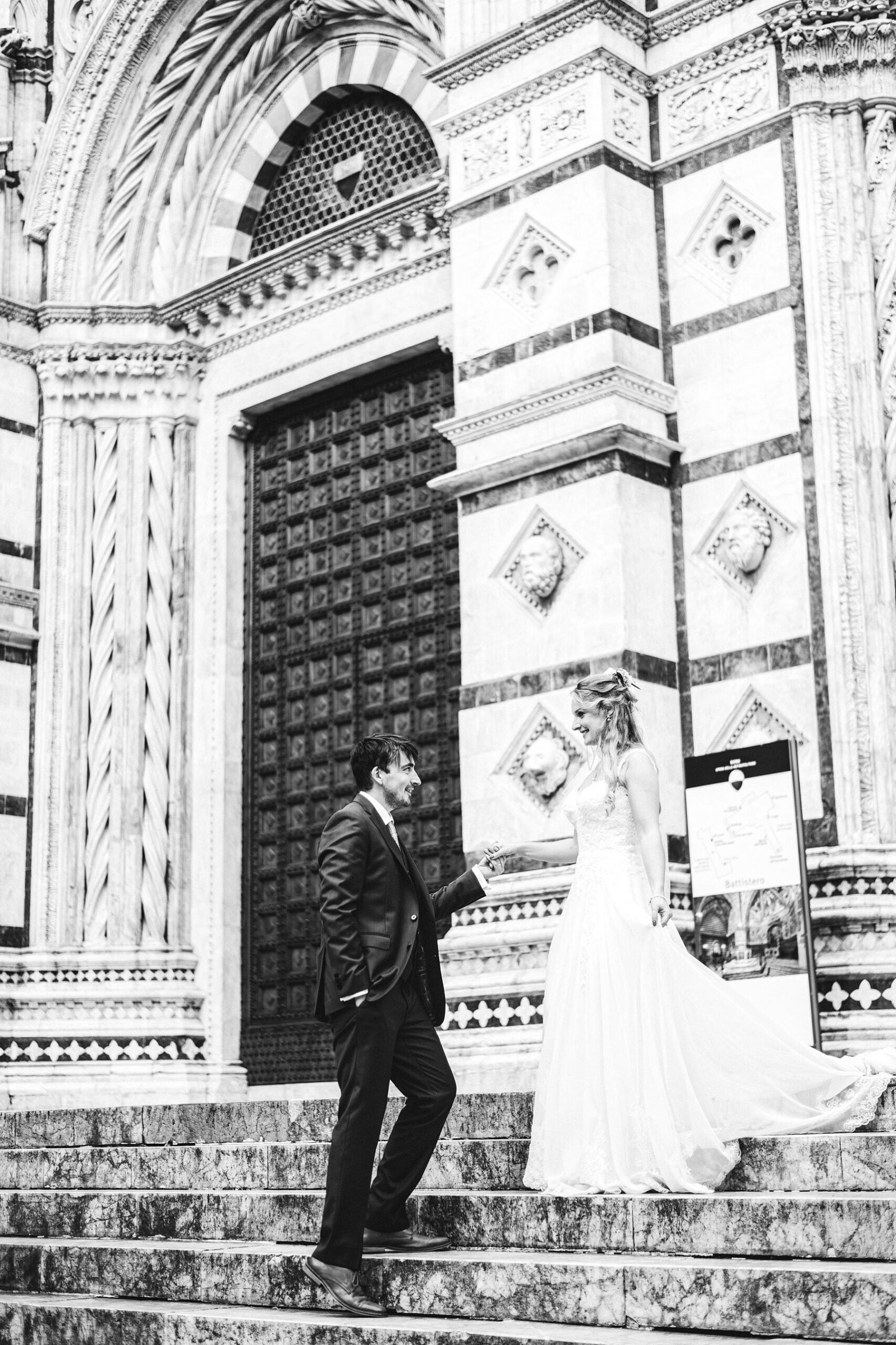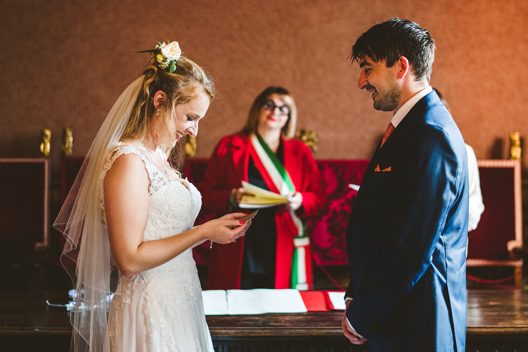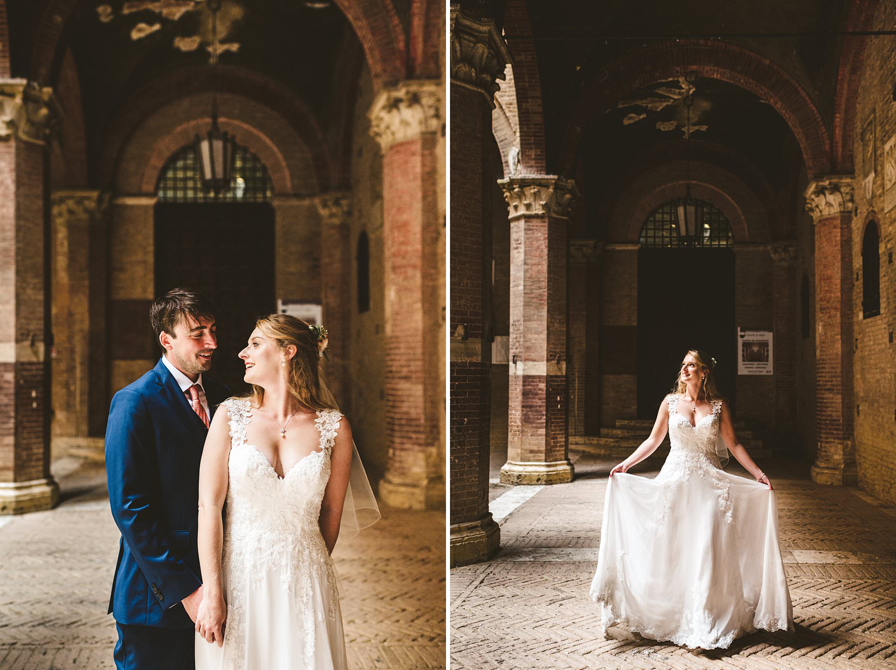 They chose to get married with an elopement, the most intimate form of celebration. At the Town Hall of Siena there were just the two of them, the celebrants and me as their wedding photographer. That gave Poppy and Chris the chance to focus only on their vows and feelings, and the possibility to play in front of my camera in many different settings.