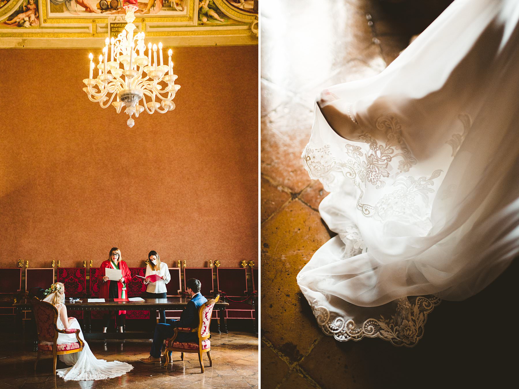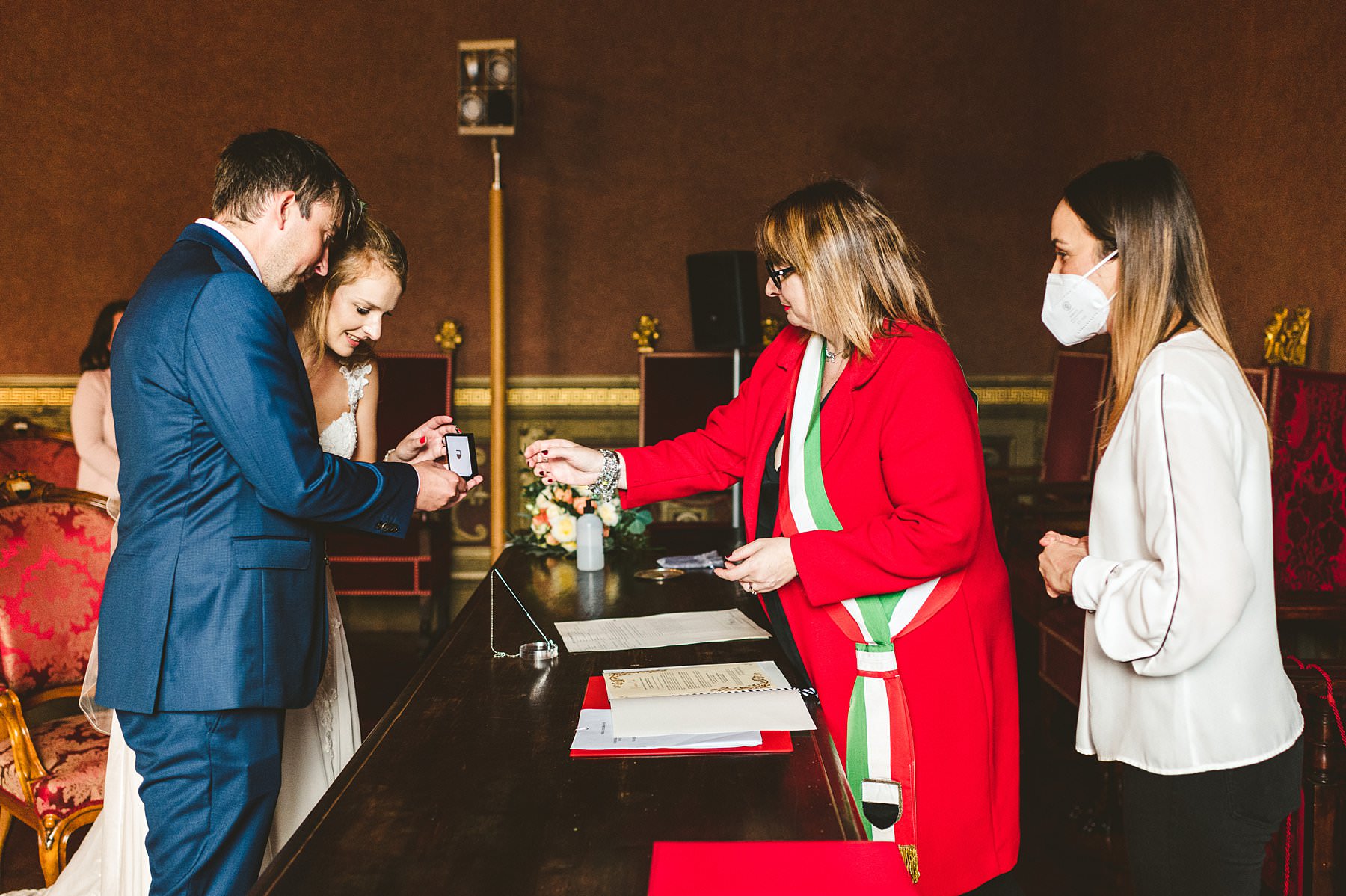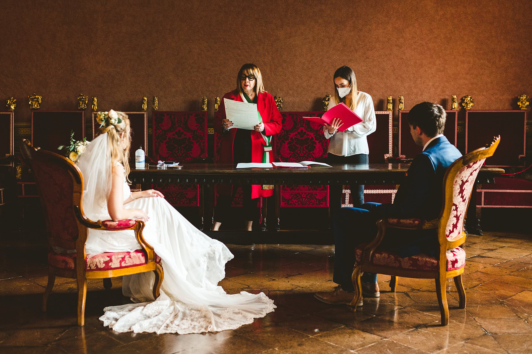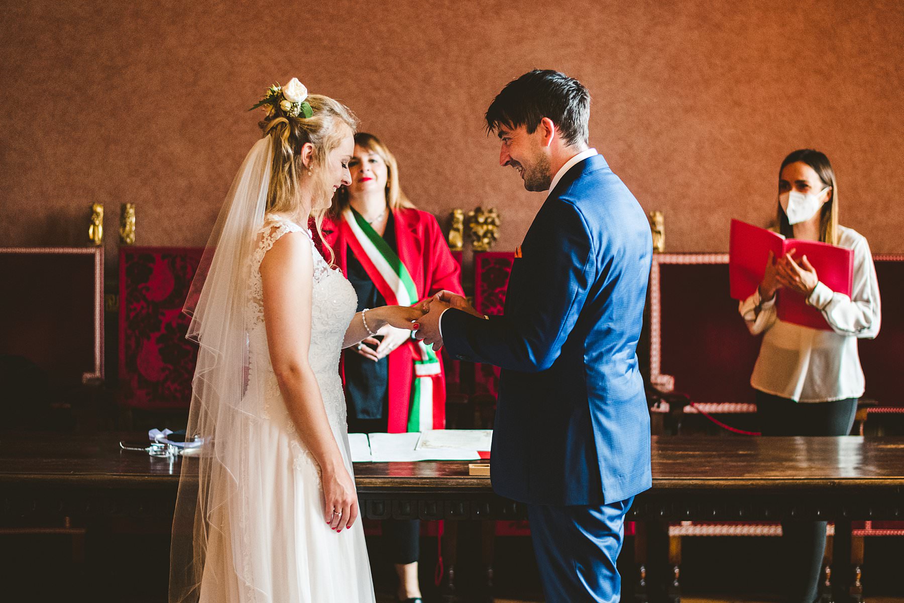 They chose to get married with an elopement, the most intimate form of celebration. At the Town Hall of Siena there were just the two of them, the celebrants and me as their wedding photographer. That gave Poppy and Chris the chance to focus only on their vows and feelings, and the possibility to play in front of my camera in many different settings.