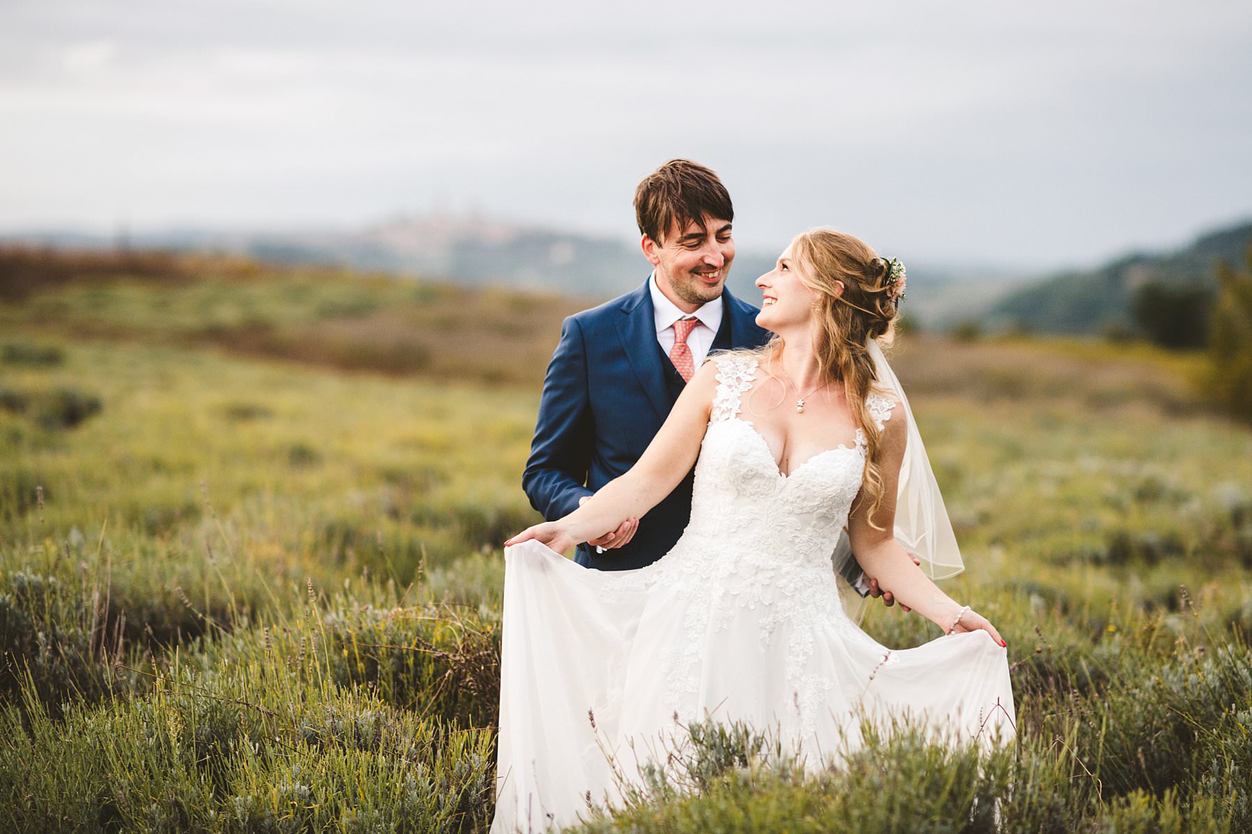 But Poppy’s deepest desire was to be portrayed surrounded by the stunning countryside views. After an accurate site inspection, I took the newlyweds to the most picturesque spots and captured dreamy pictures of them in the warm sunset light.