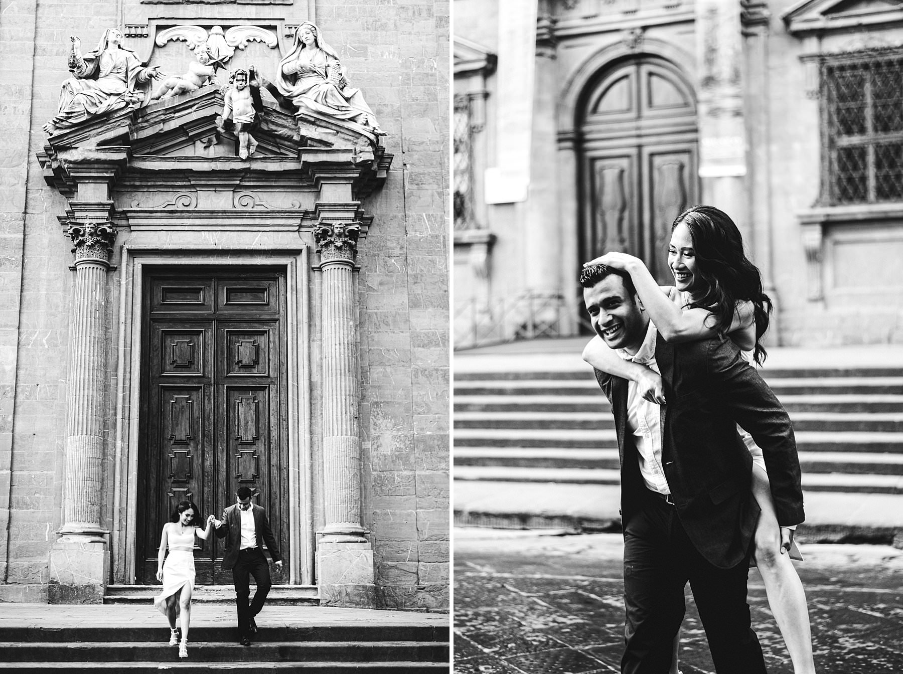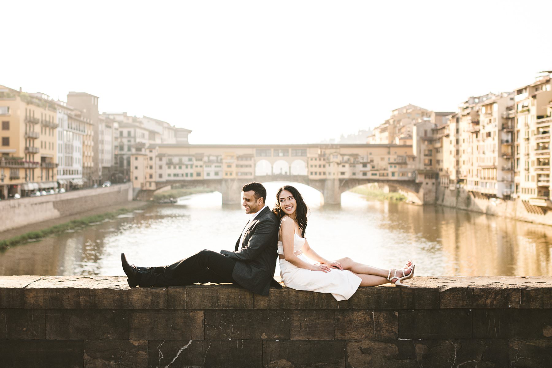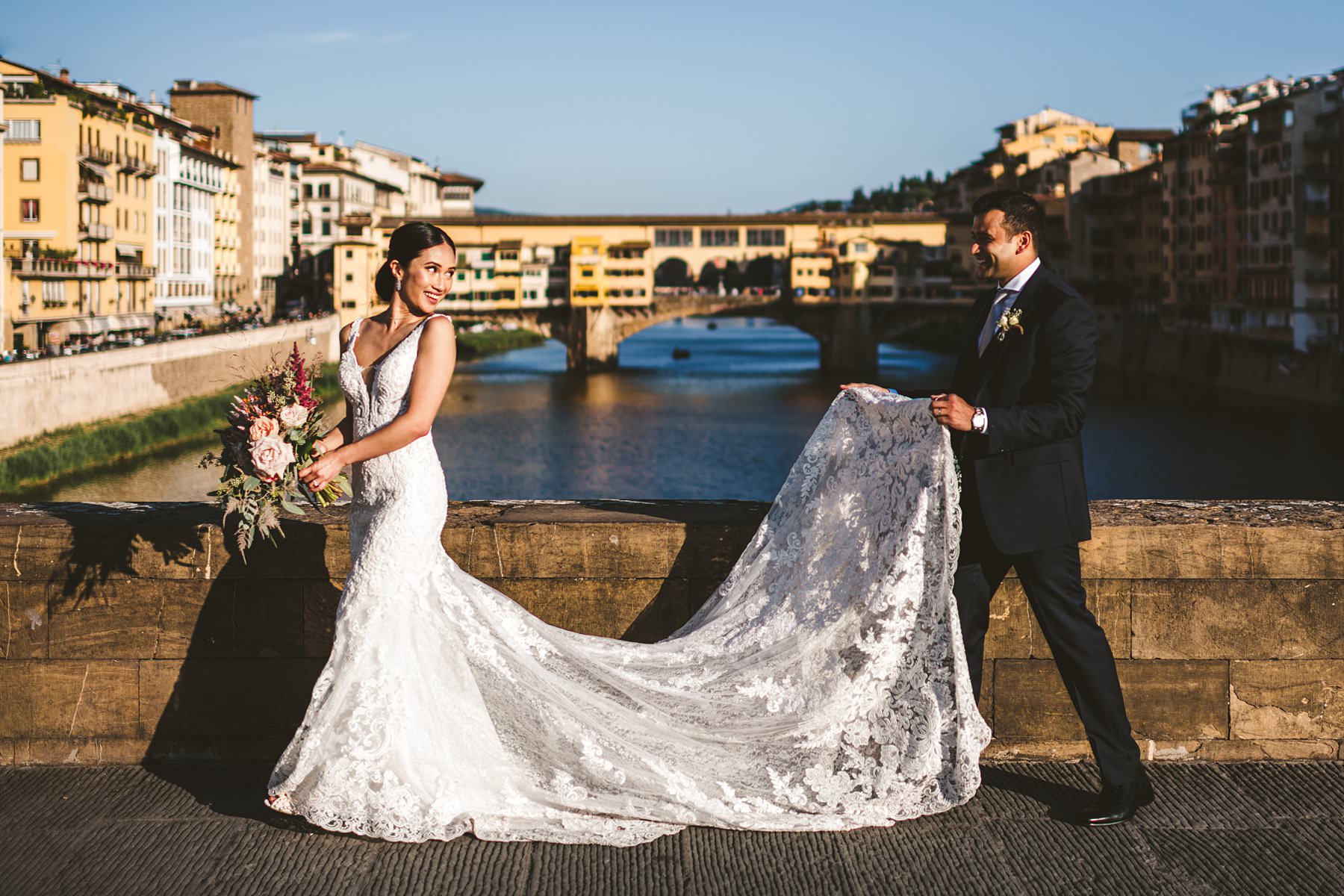 If you’ve always wondered how it would feel to roam the streets of Florence with your loved one and no one else around, try taking sunrise photos there for your prewedding. Liza and Justin opted for this choice and, one month before their intimate wedding in Italy, they made their wish come true.
