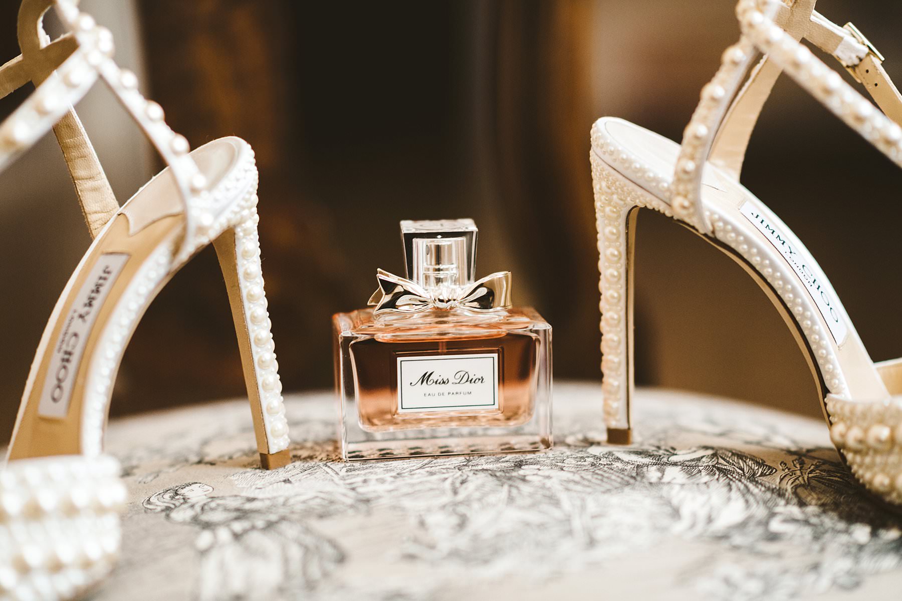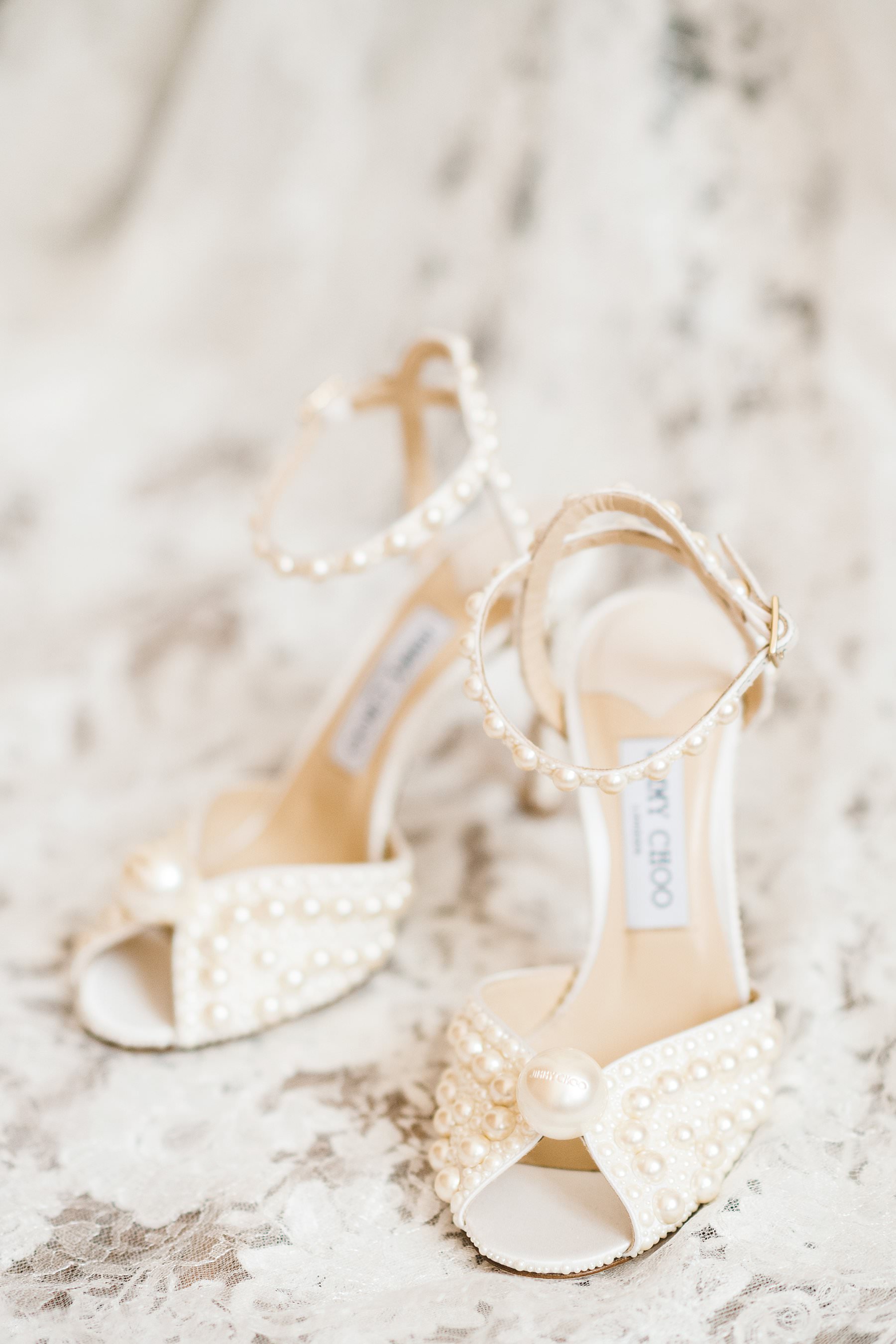 Beautiful and luxury wedding shoes by Jimmy Choo. Liza and Justin’s intimate wedding at Belmond Villa San Michele. Photo by the Italian elegant creative and modern destination wedding photographer in Tuscany based Florence Gabriele Fani.